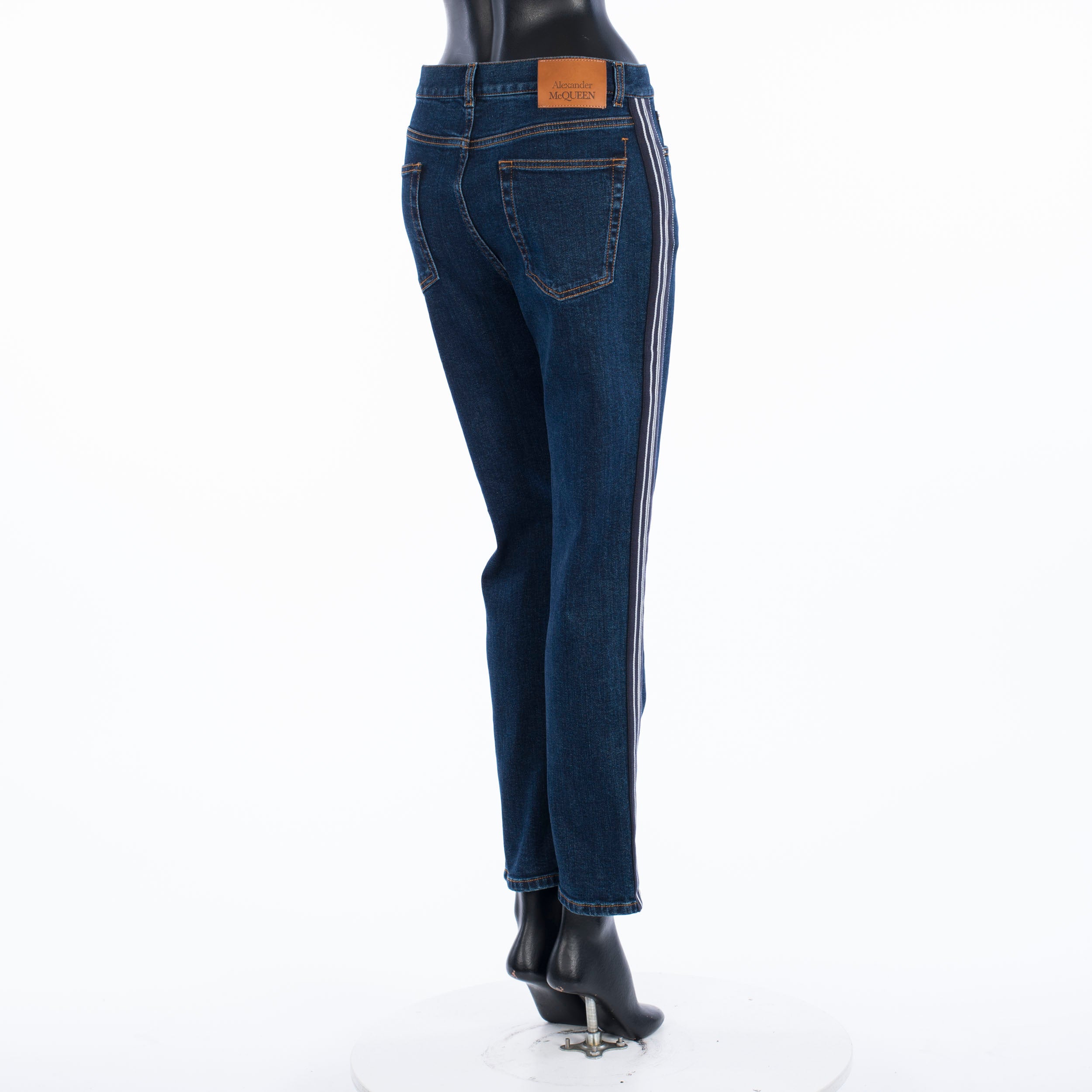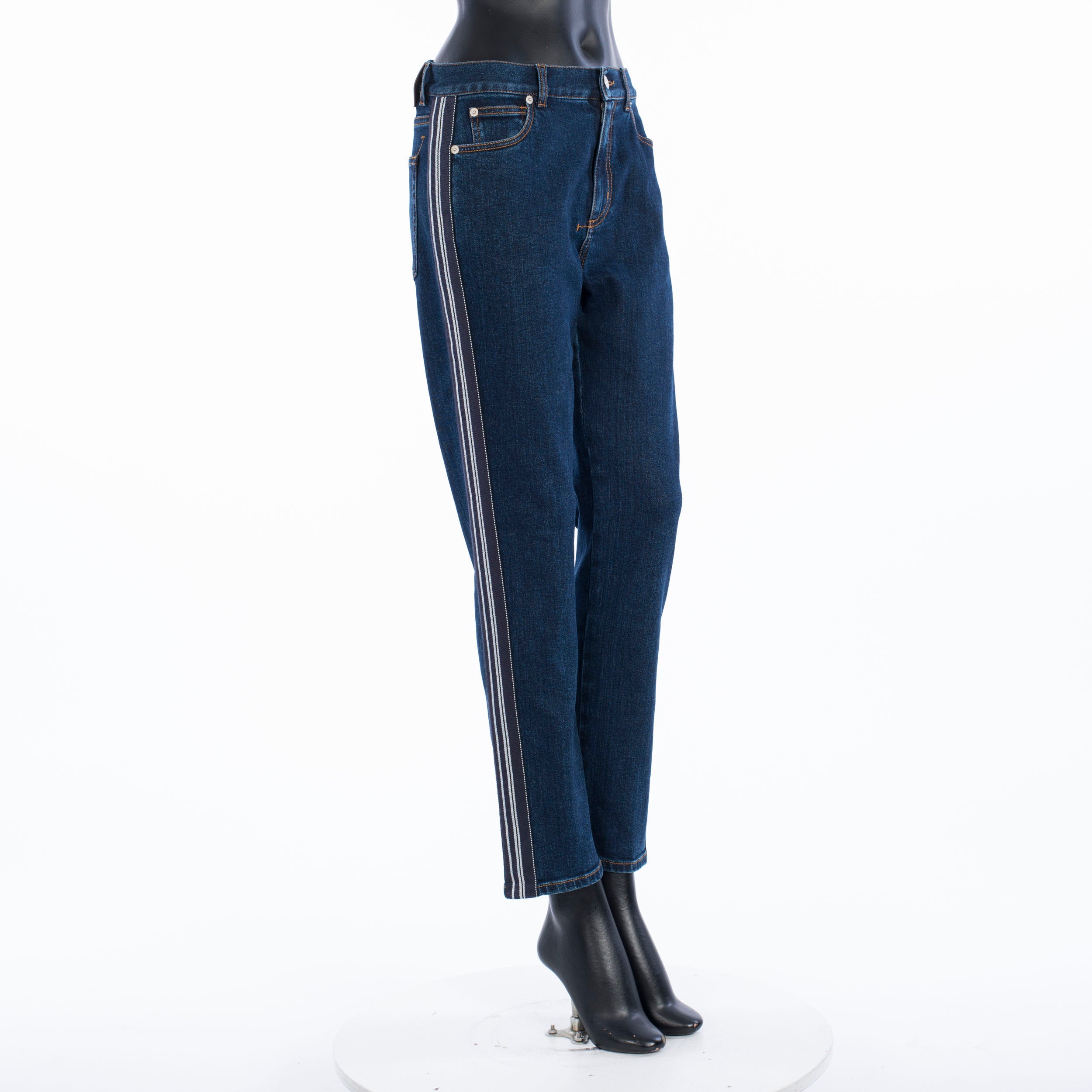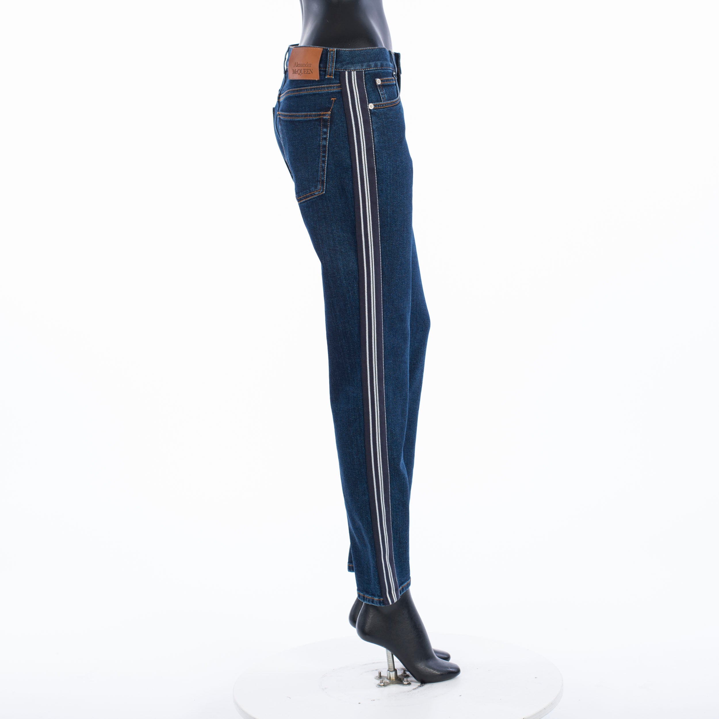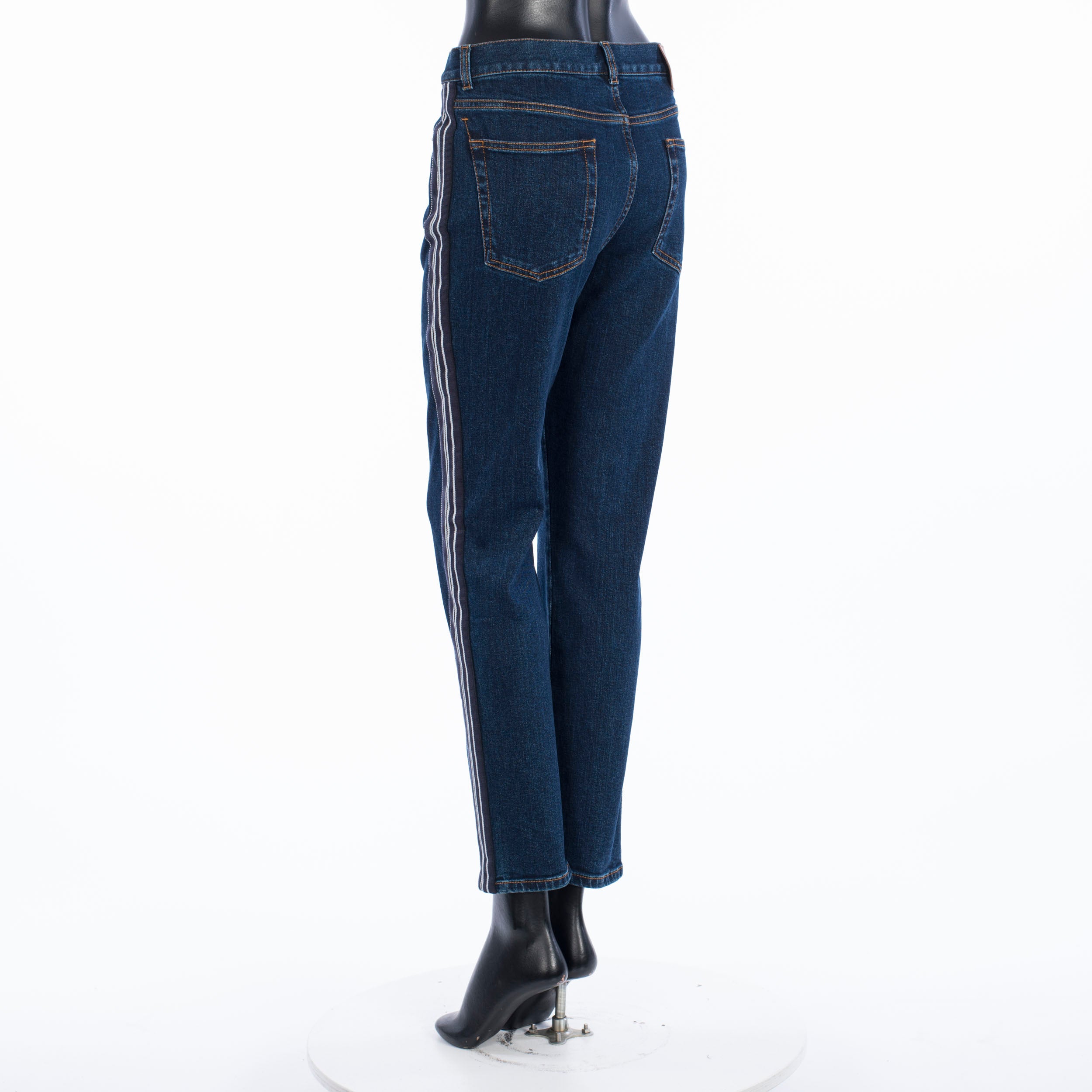Fitted stretch mid-rise skinny jeans with contrast side band detailFabric: 98% Cotton; 2% ElastanMade in: ItalyModel no.: 650649-QMAA8-4089