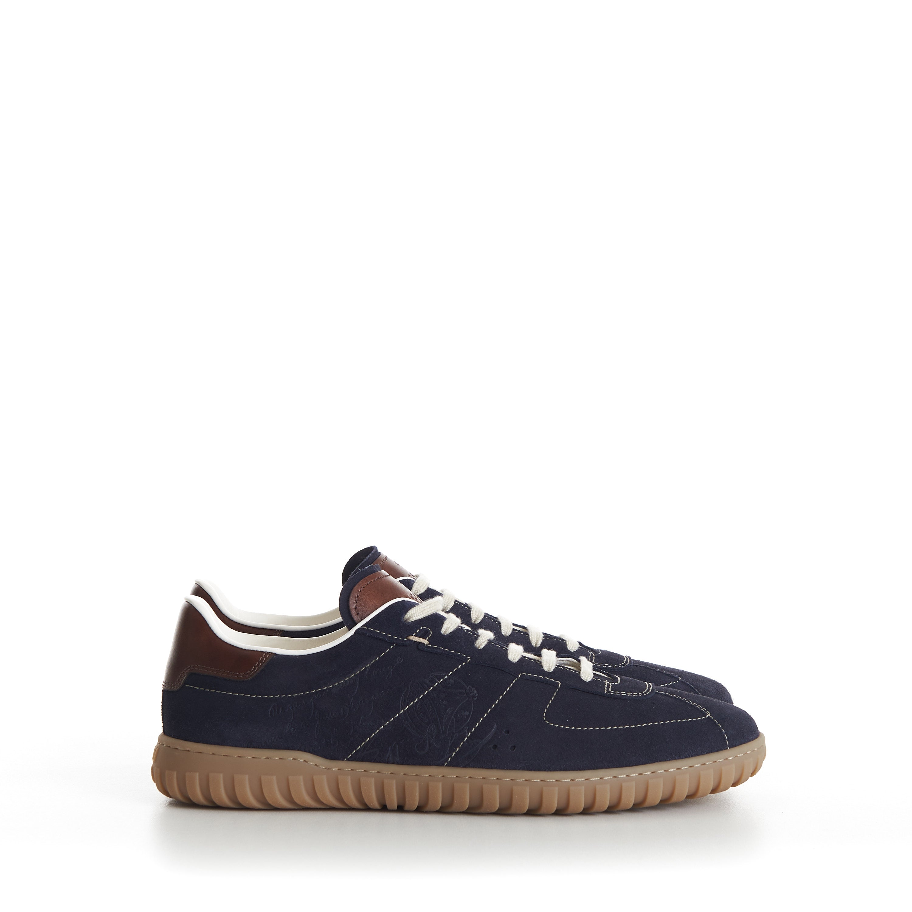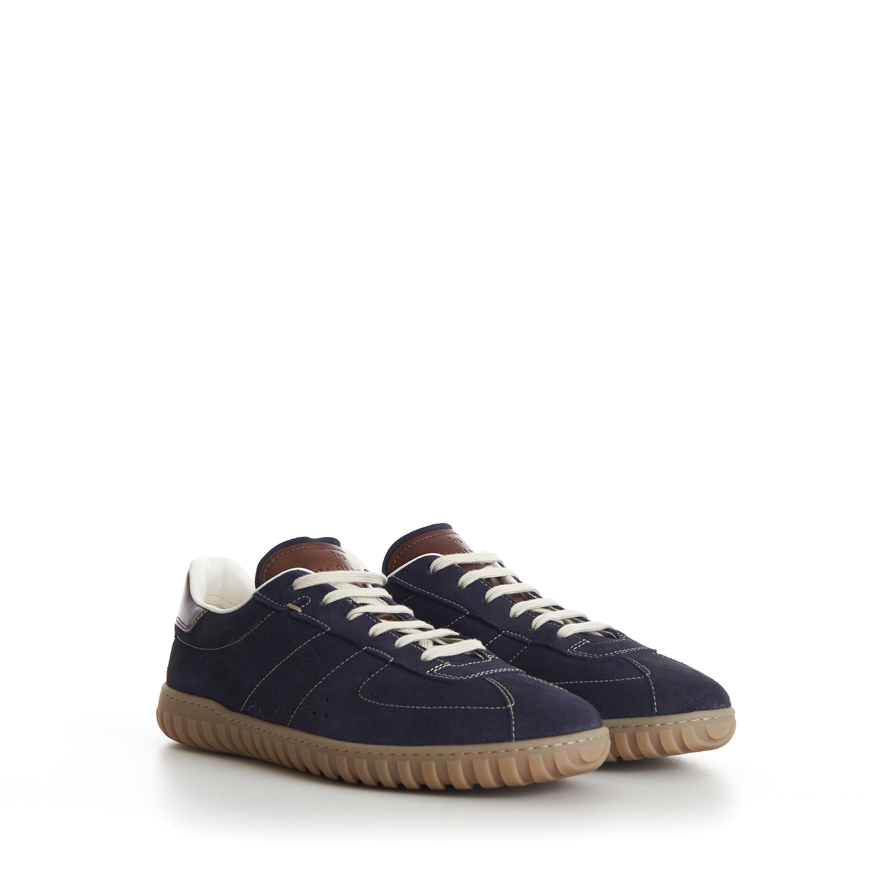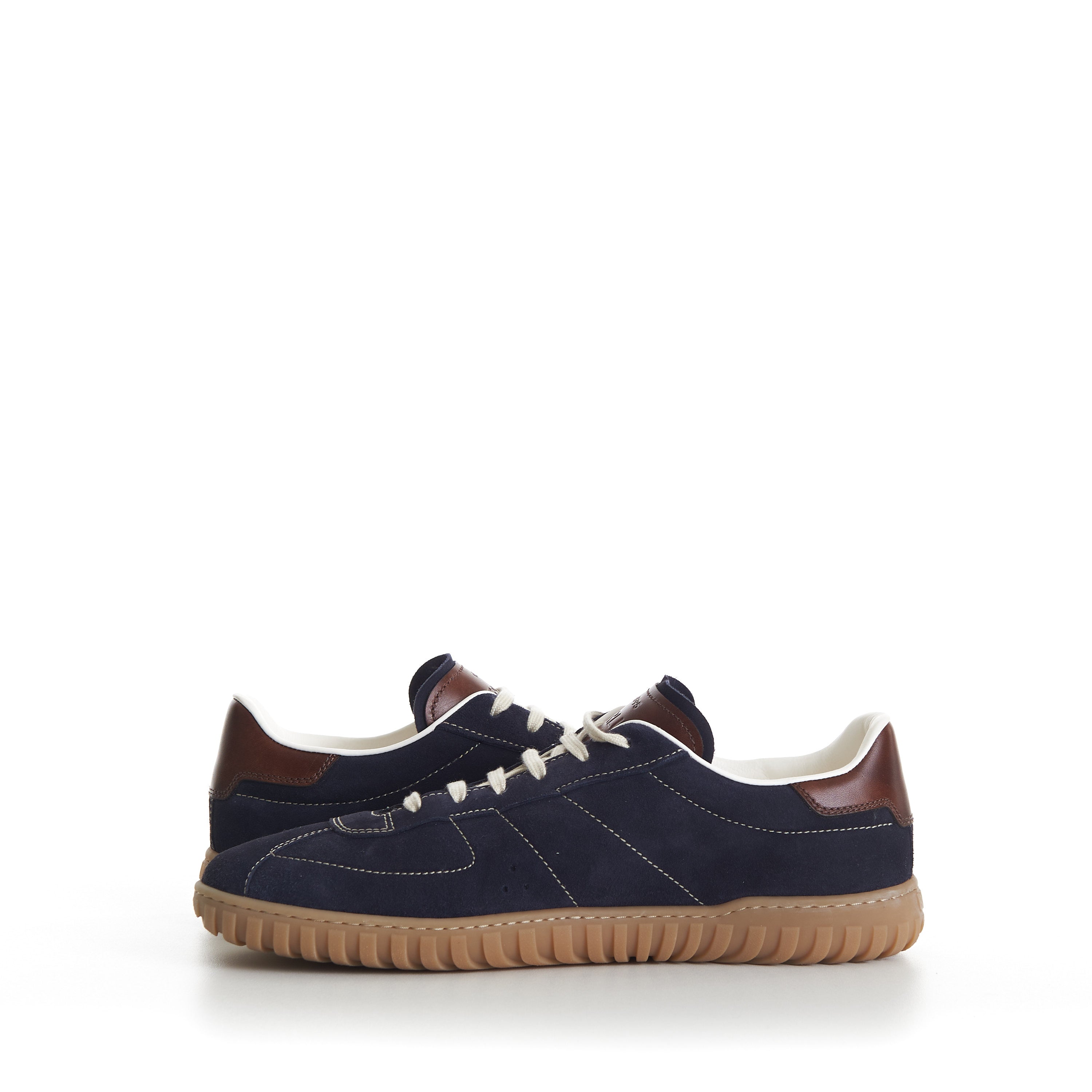 Navy Trainer Suede Sneaker - Scritto, Patina Leather Heel