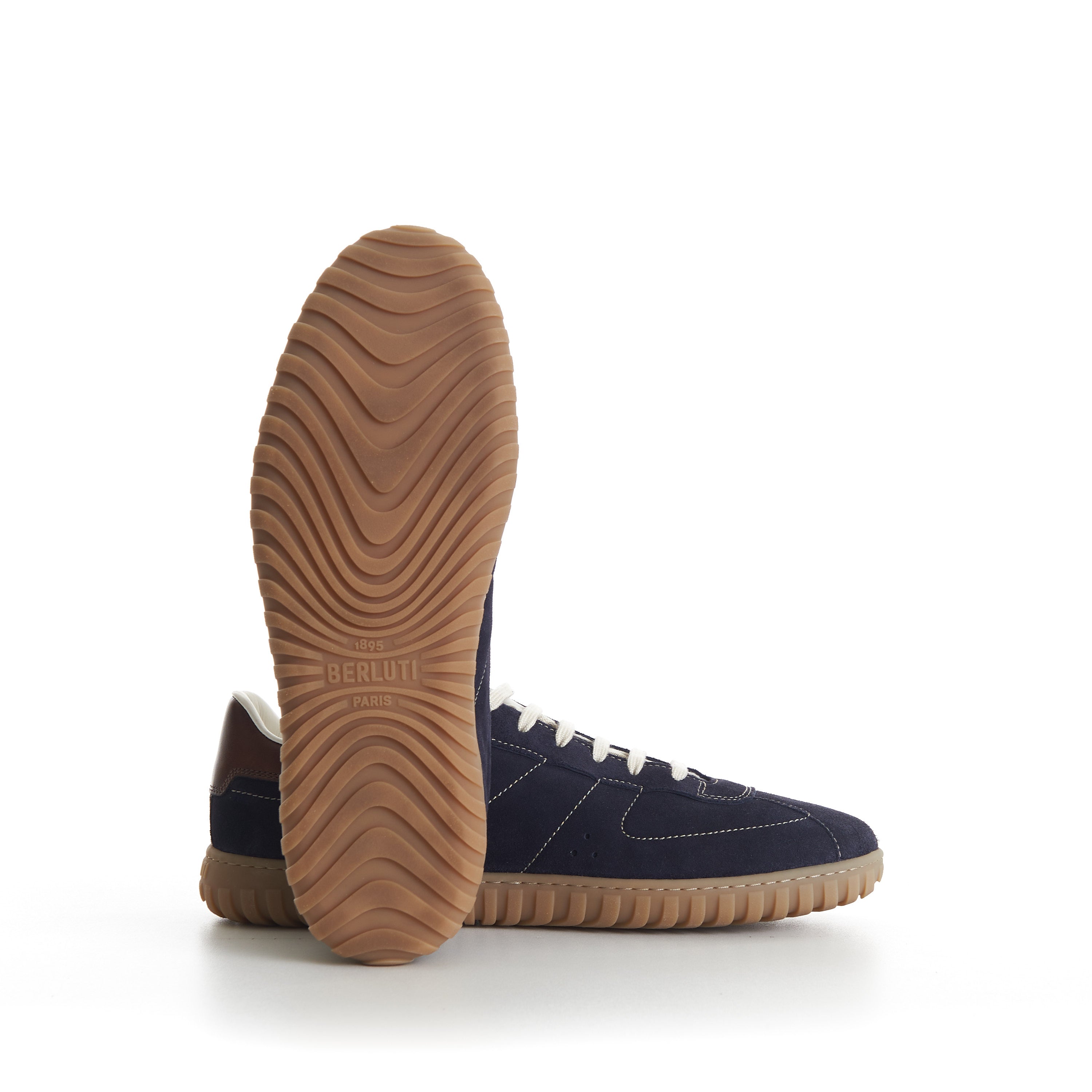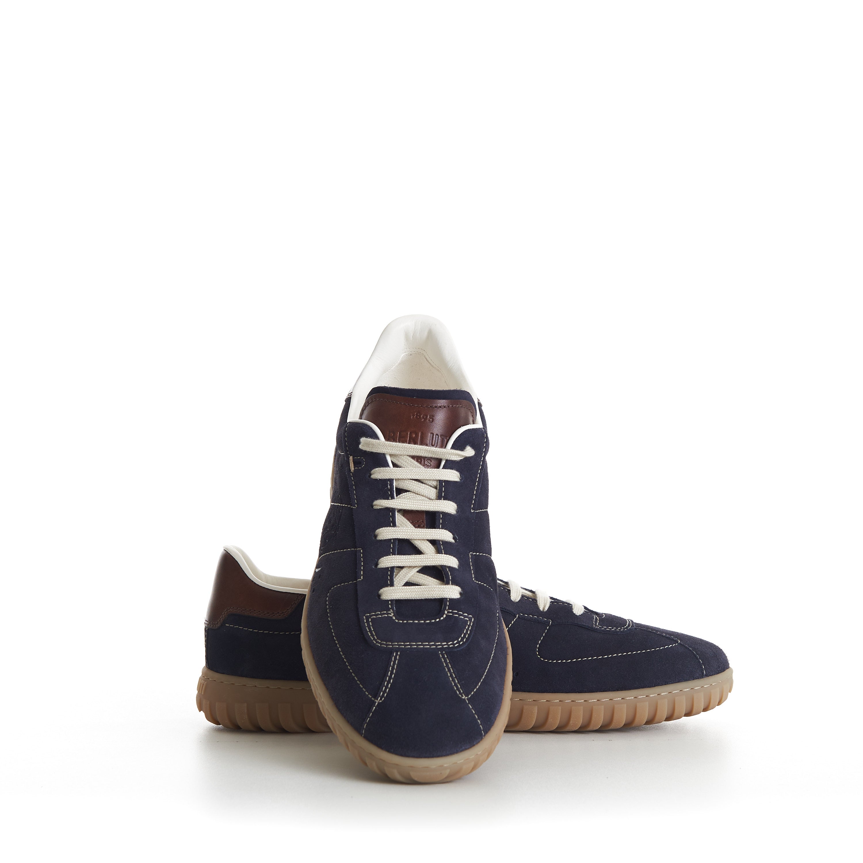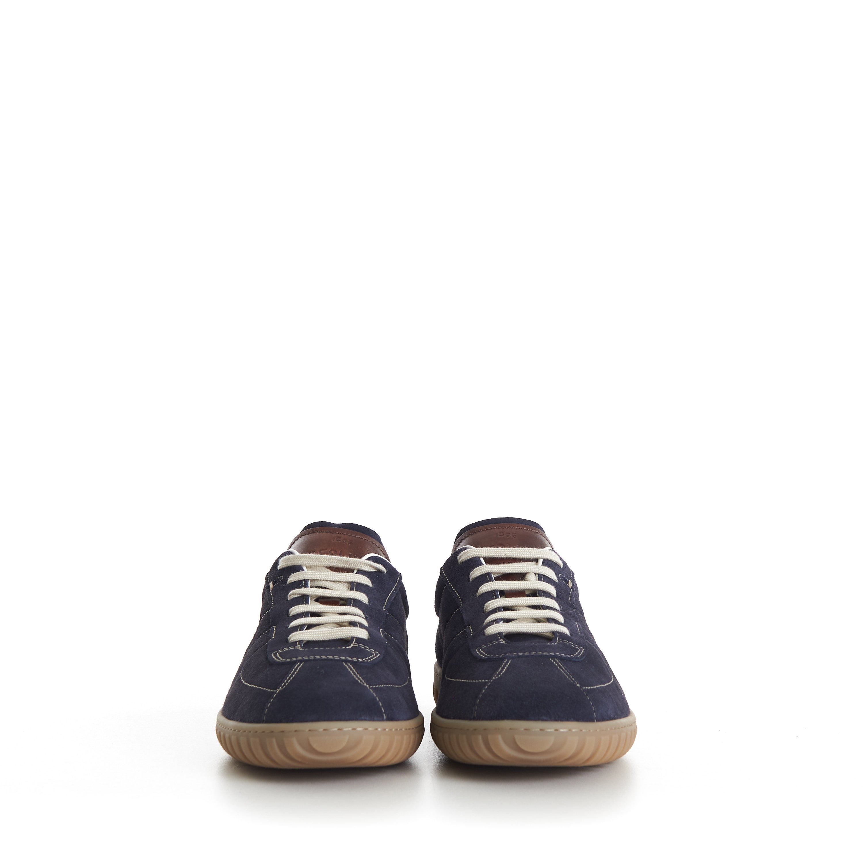 Navy Trainer Suede Sneaker - Scritto, Patina Leather Heel