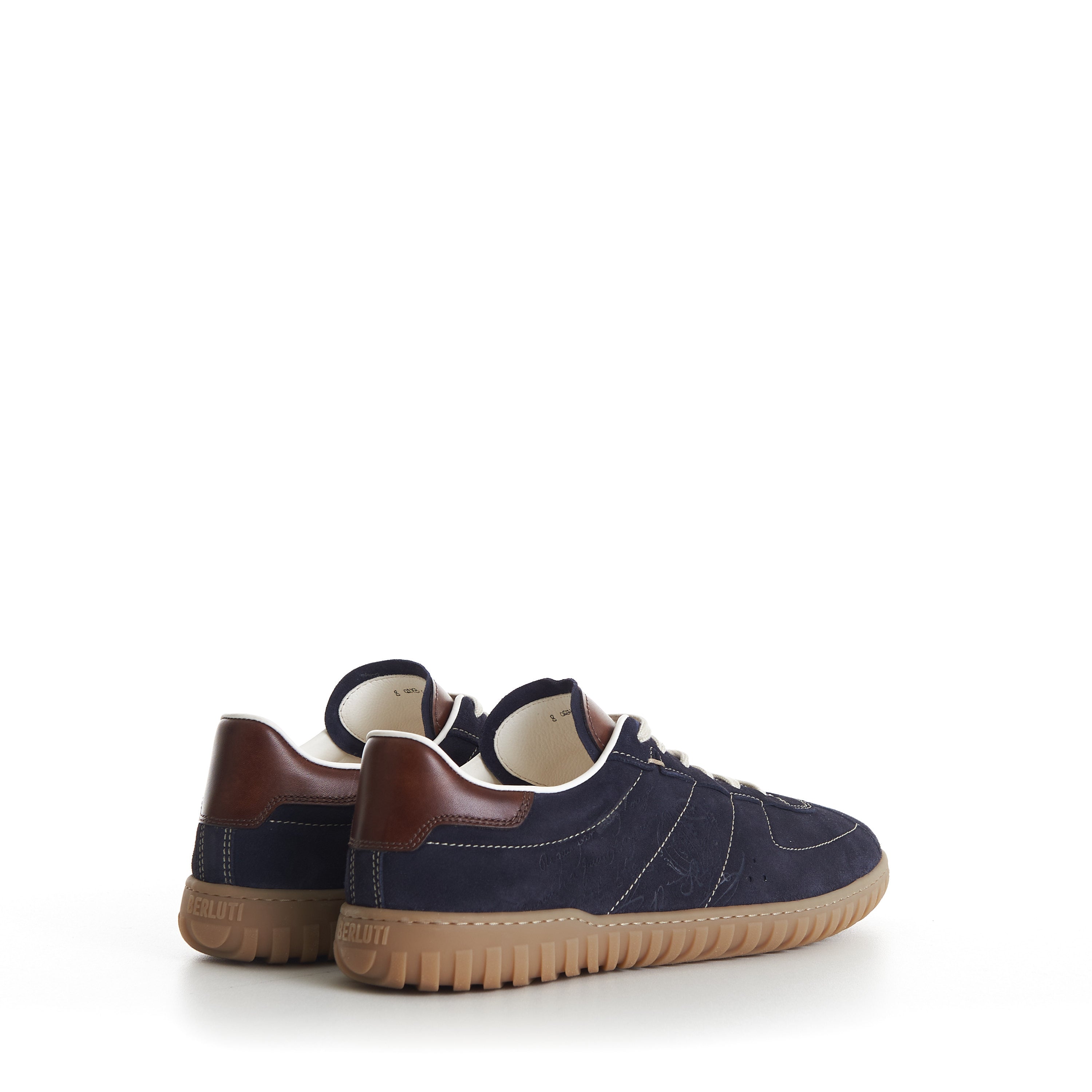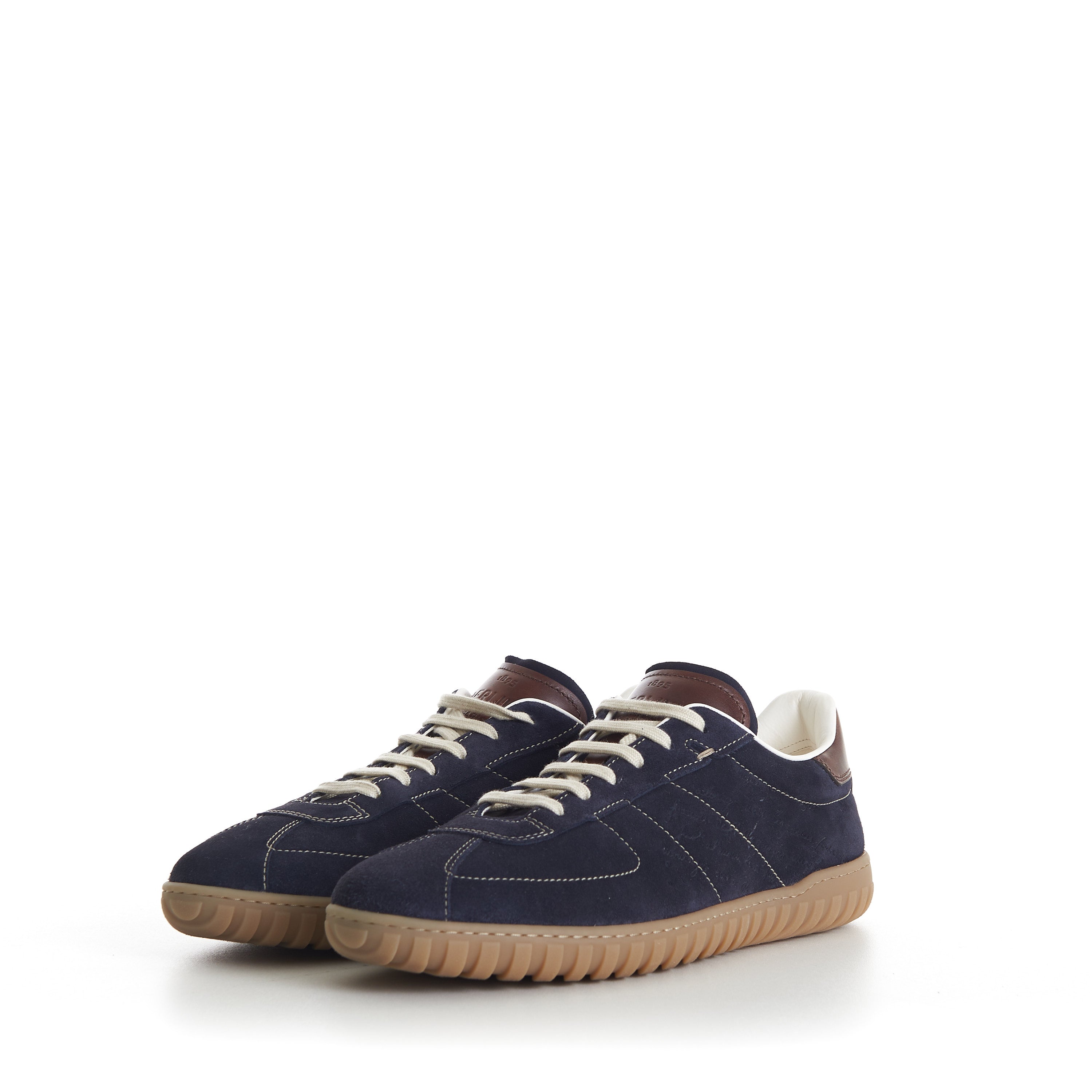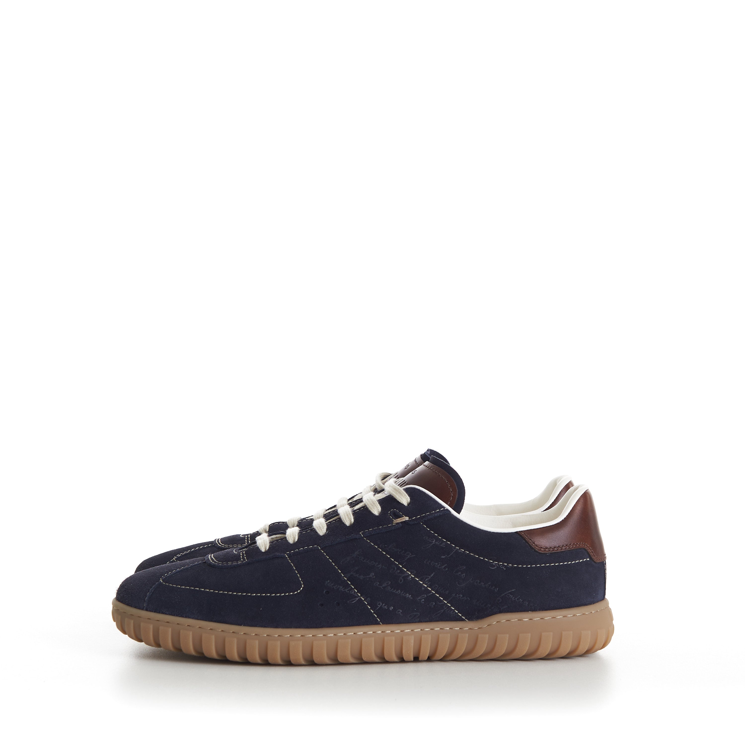 Sneaker low cut Soft suede scritto leather Padded insole for more comfort Handsewn stitch detail White vitellino leather lining Construction : incollato Winter 23 Made in Italy