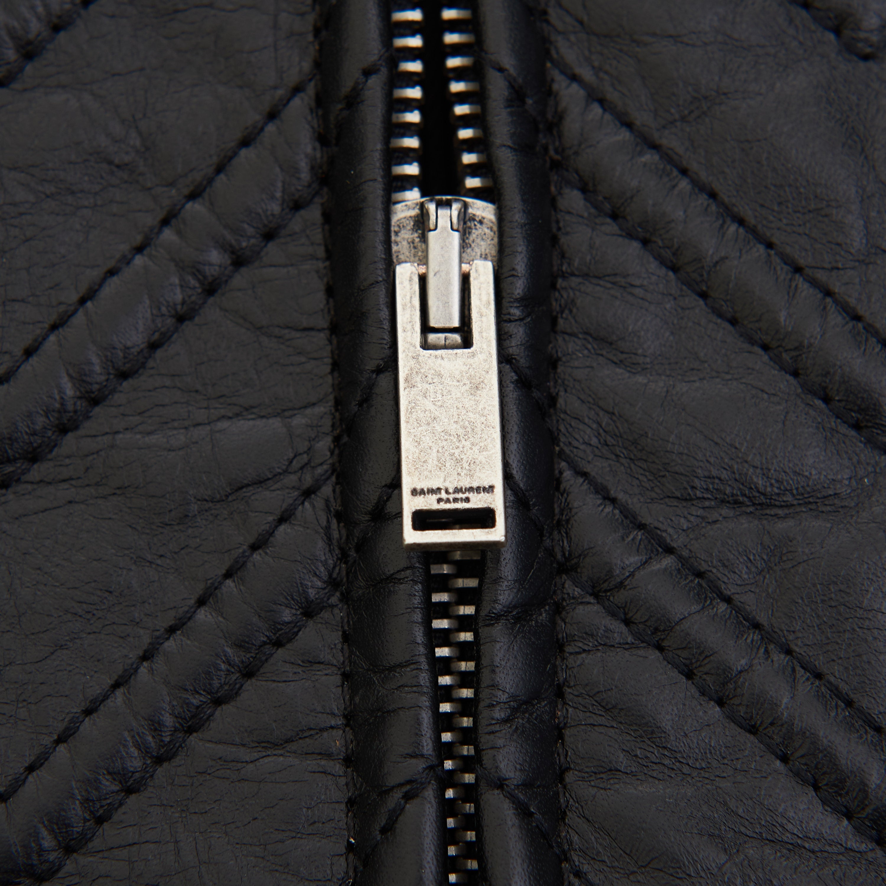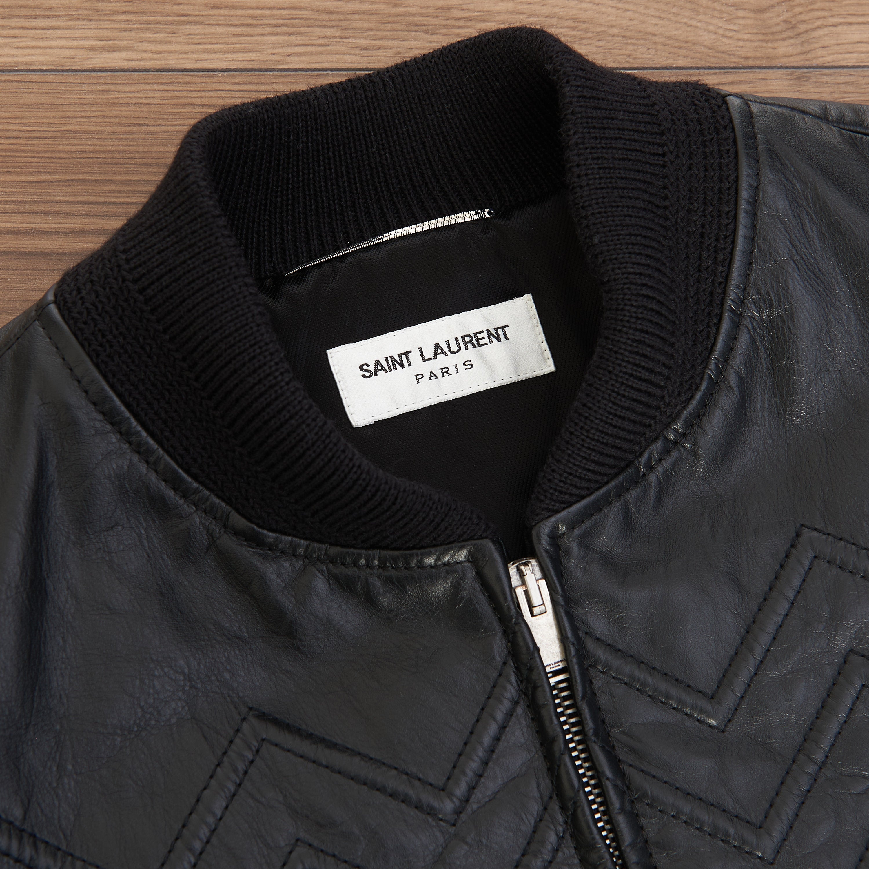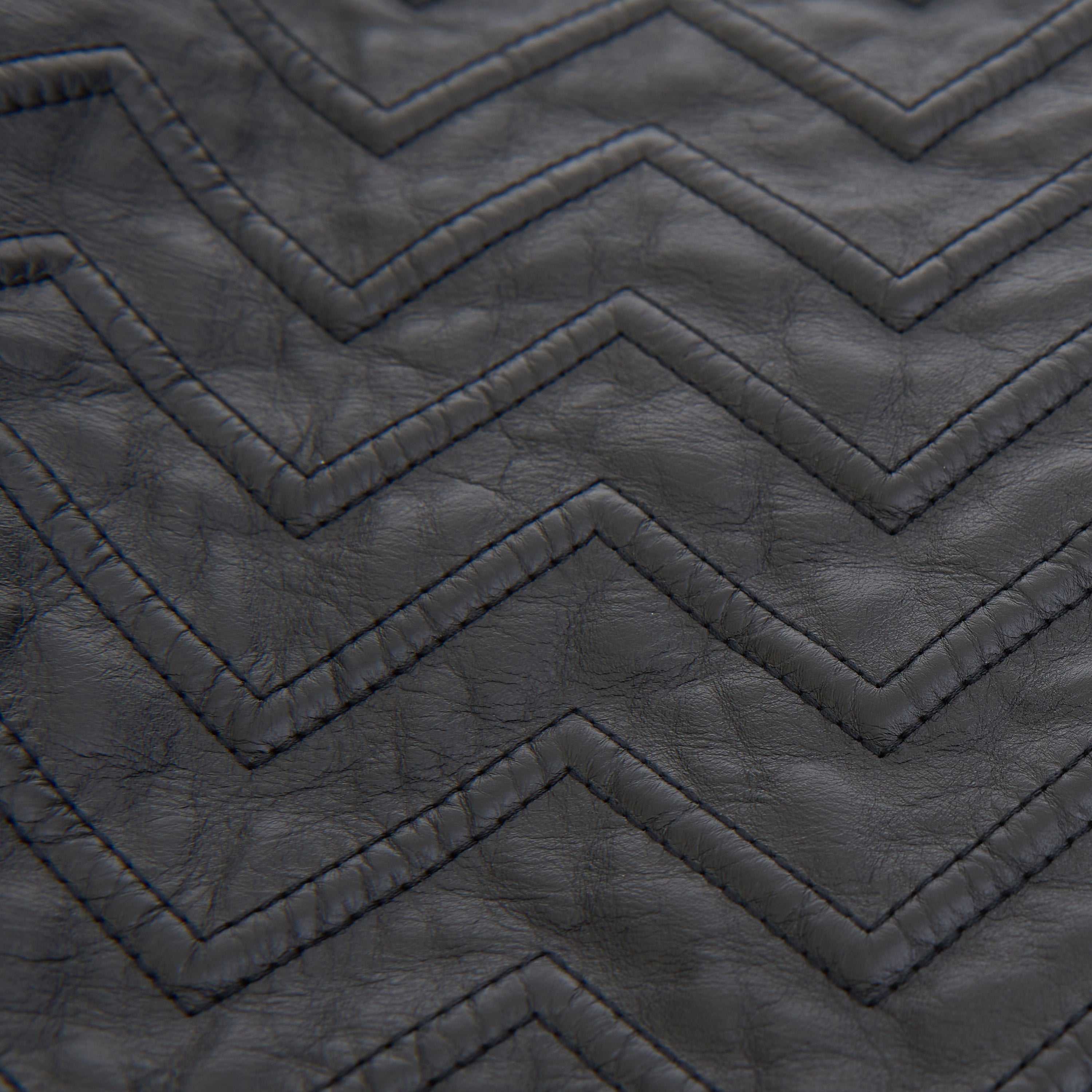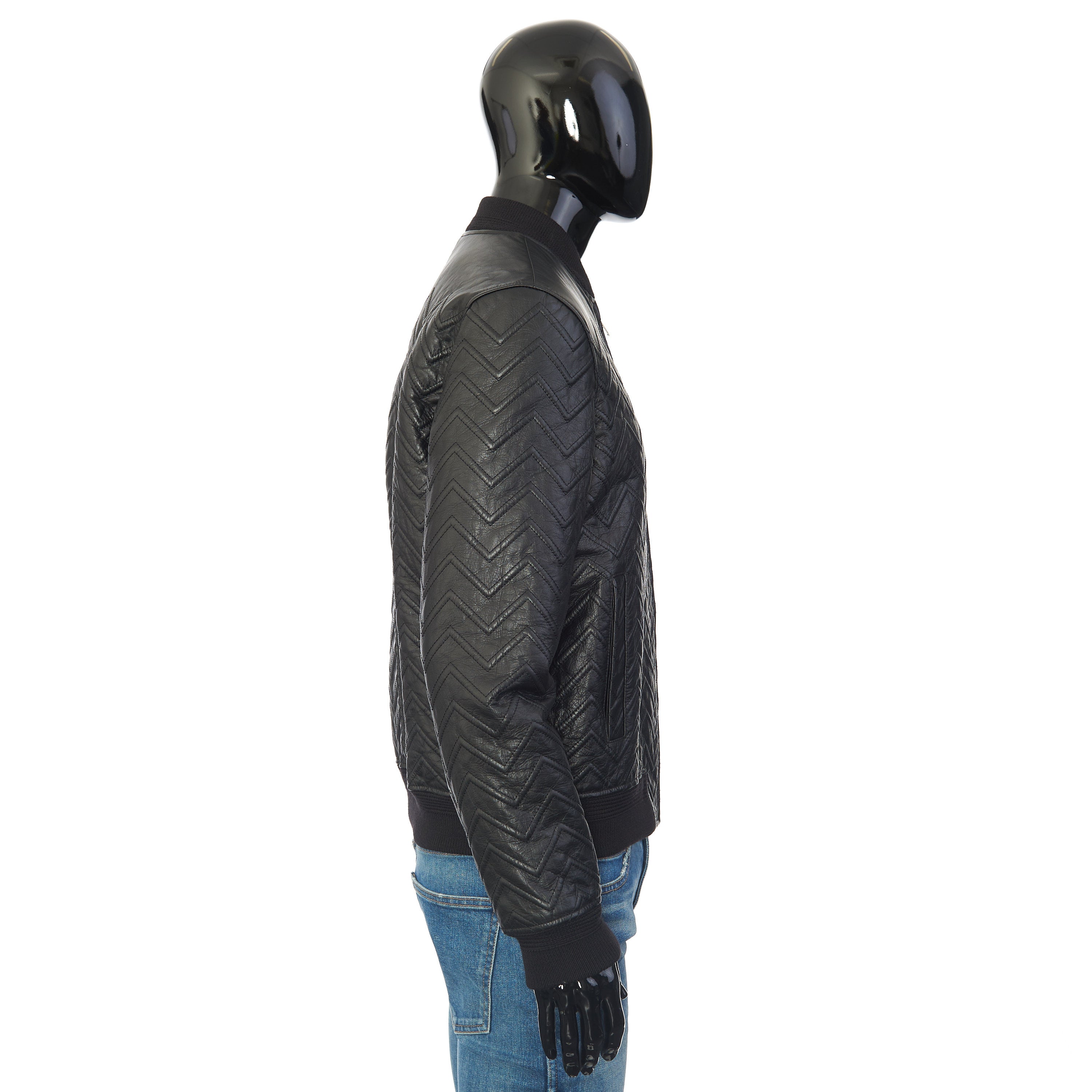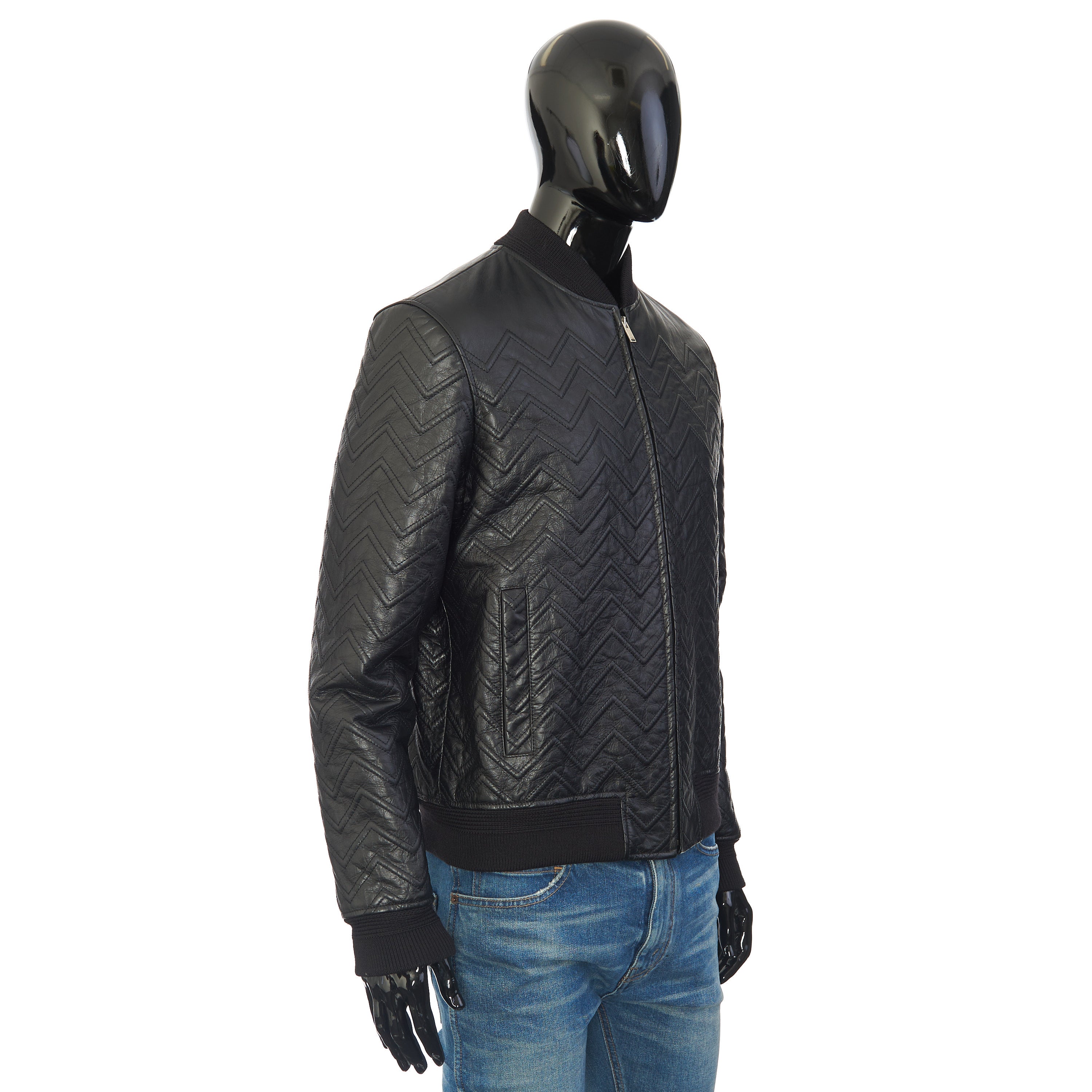 Oversized bomber jacket made with metal-free tanned leather with a zip front closure, decorated in an all-over chevron motif and featuring rib-knit collar, cuffs and waistband.