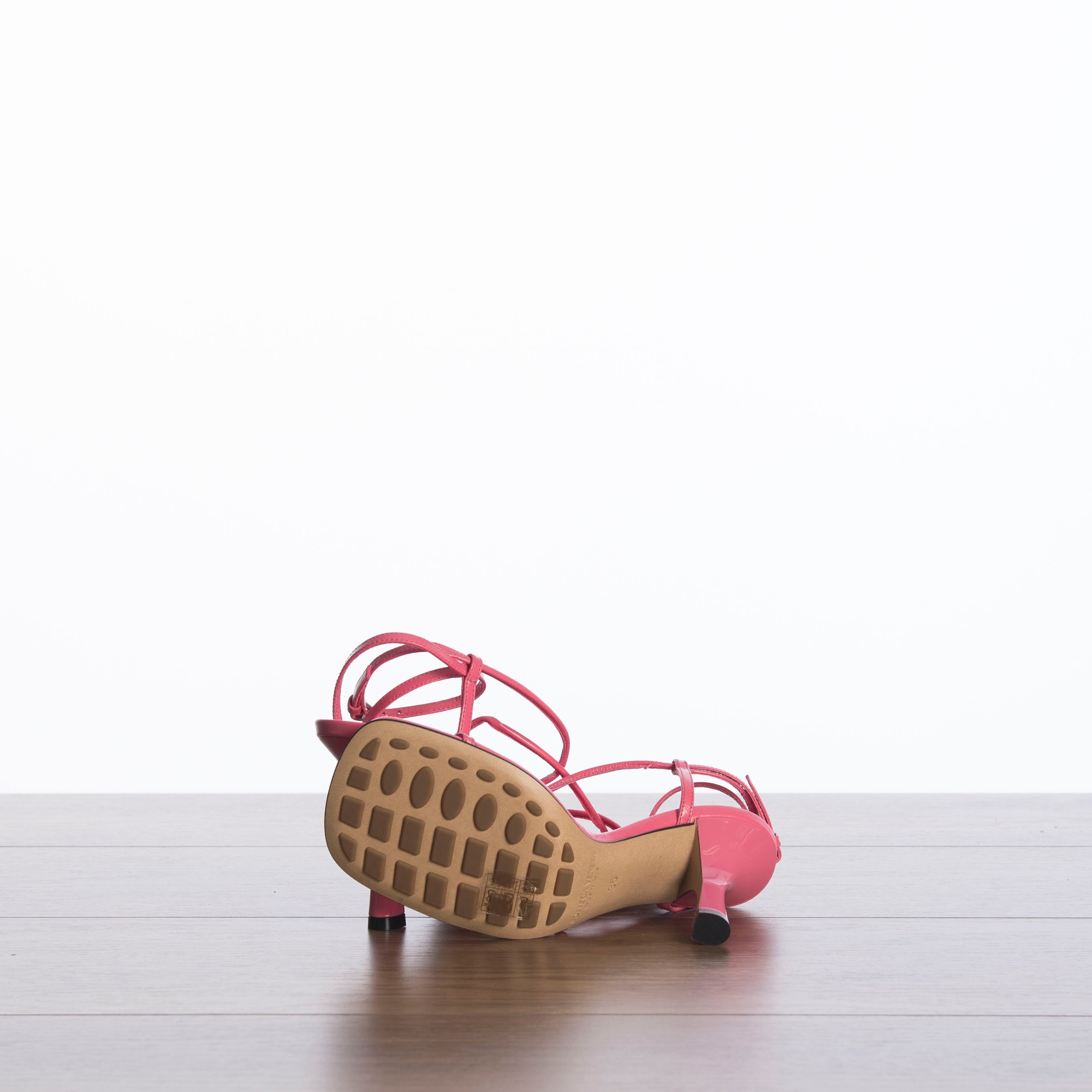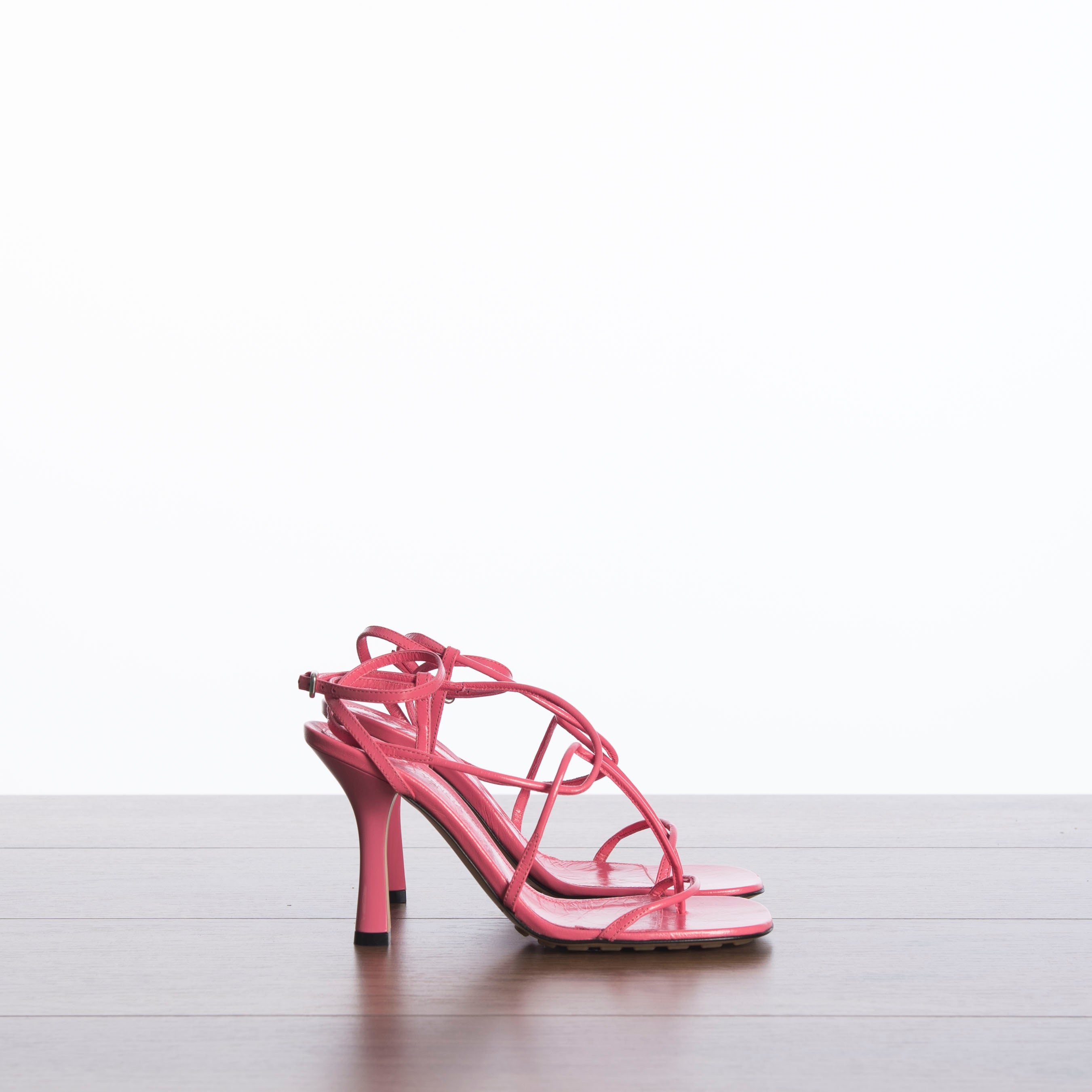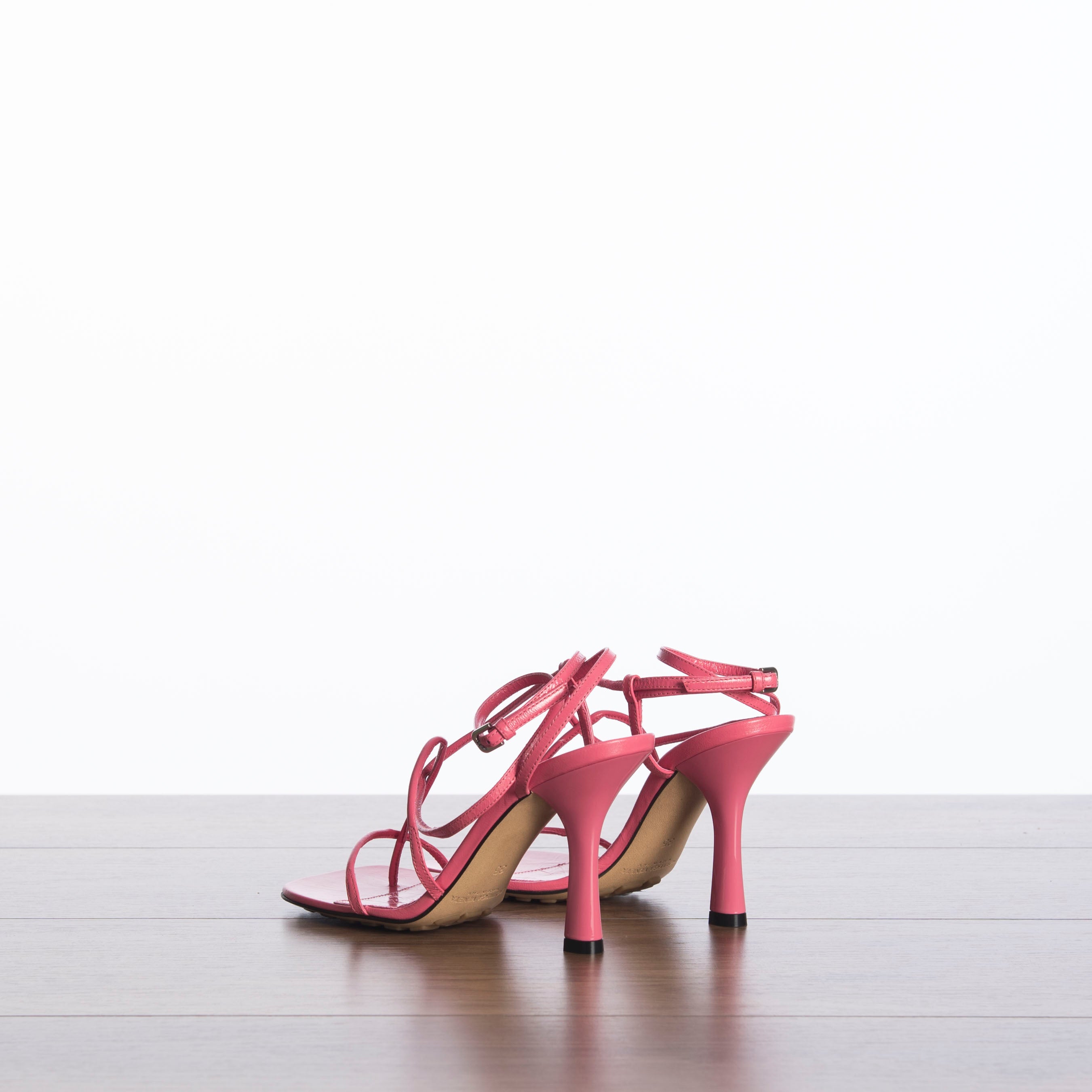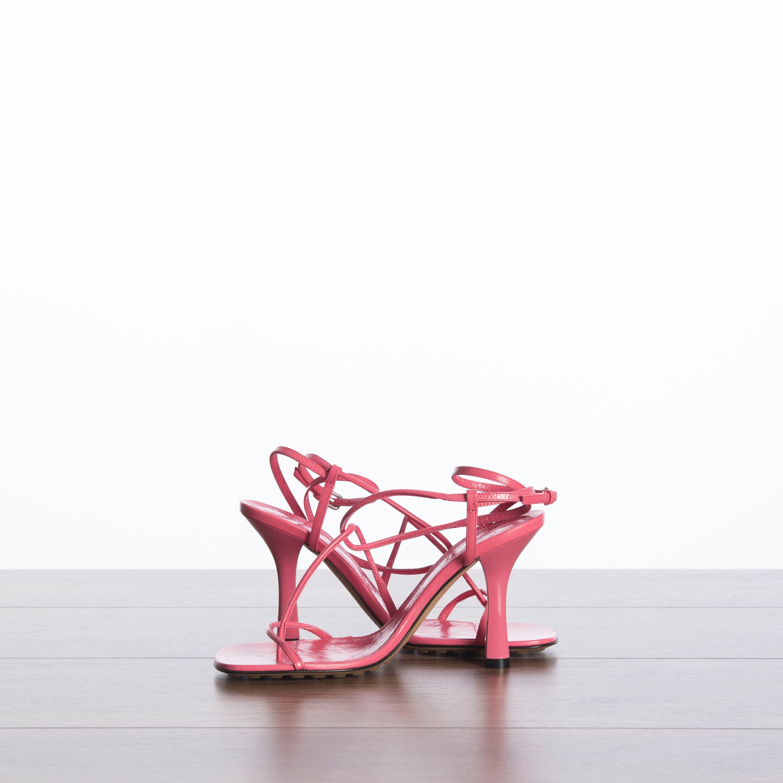 Skinny strap sandals in Calf leather Squared toe with rounded edges Lacquered stiletto heel Buckle fastening Rubber-injected leather outsole Heel: 9 cm / 3.5" Made In Italy
