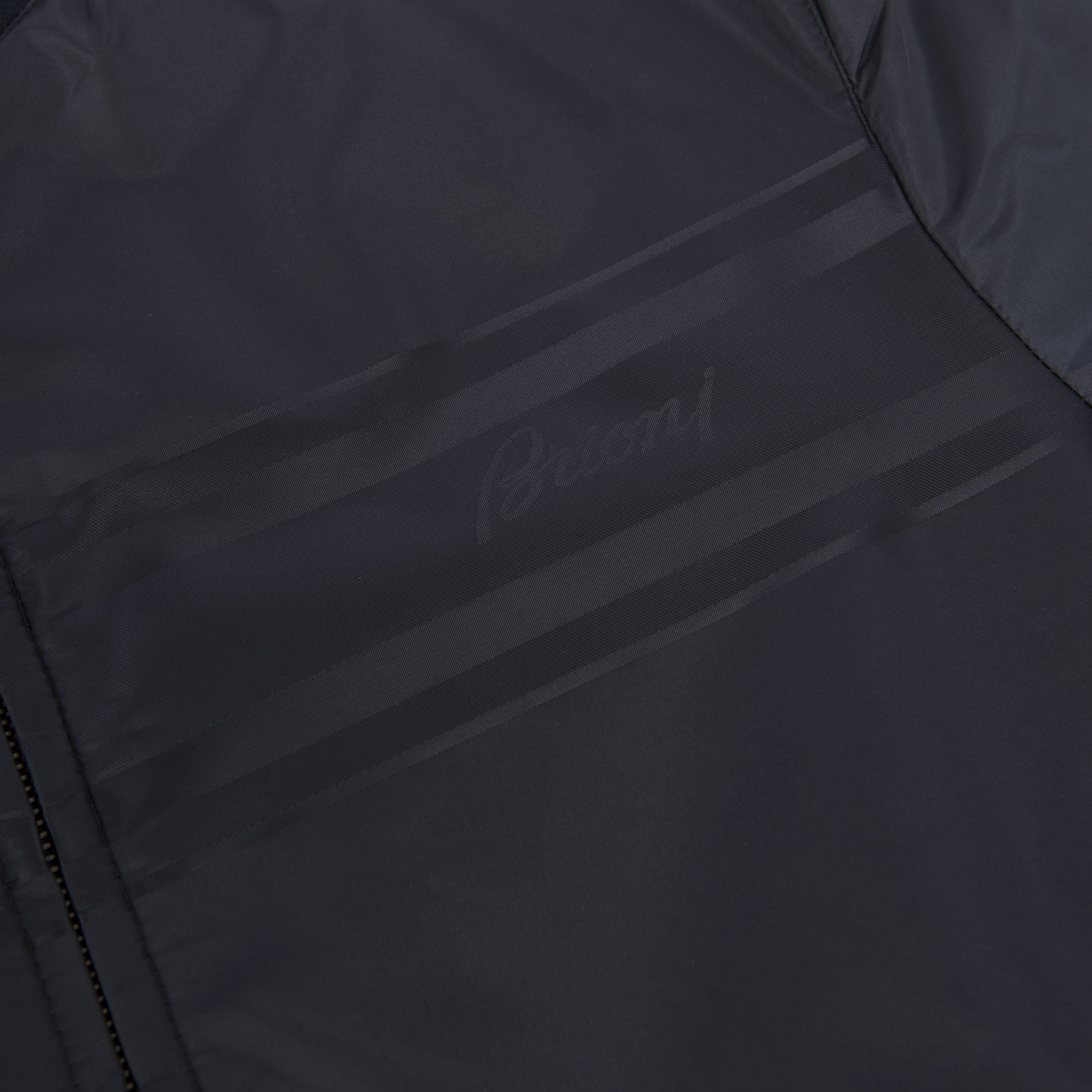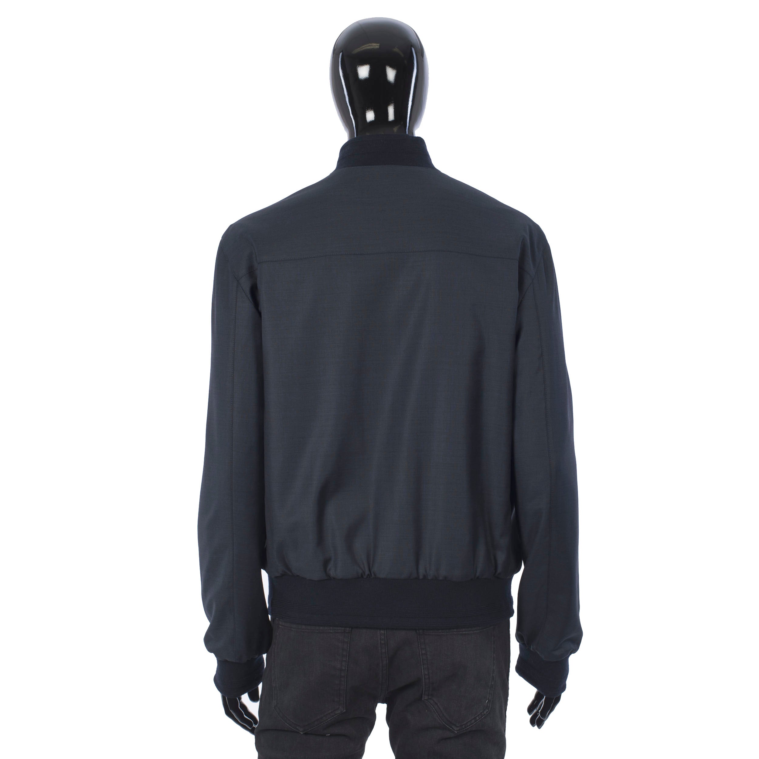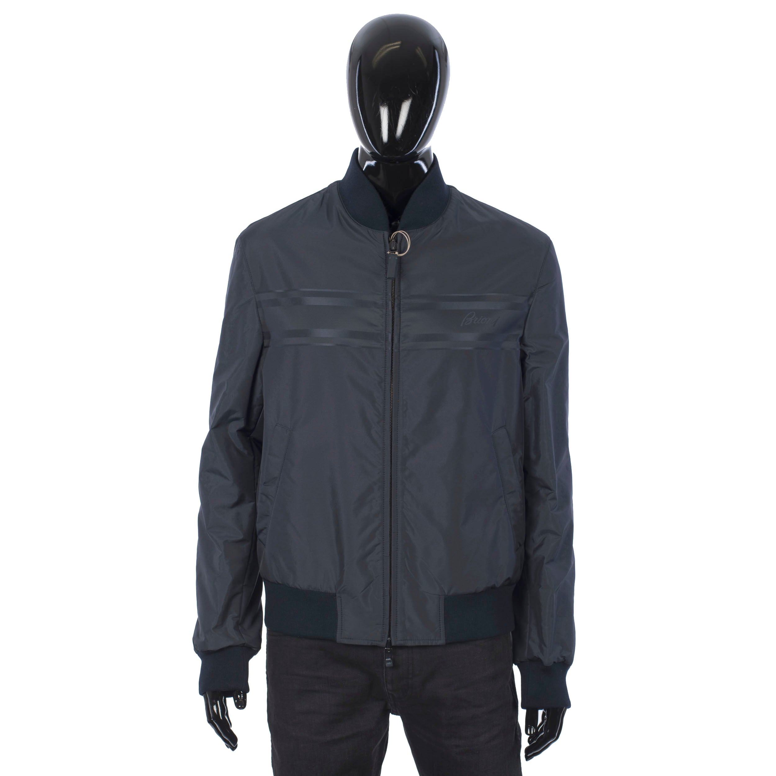 Reversible blouse jacket in navy blue virgin wool on one side and nylon on the other Elastic knitted cuffs, waist & collar Diagonal pockets Brioni logo Made in Italy