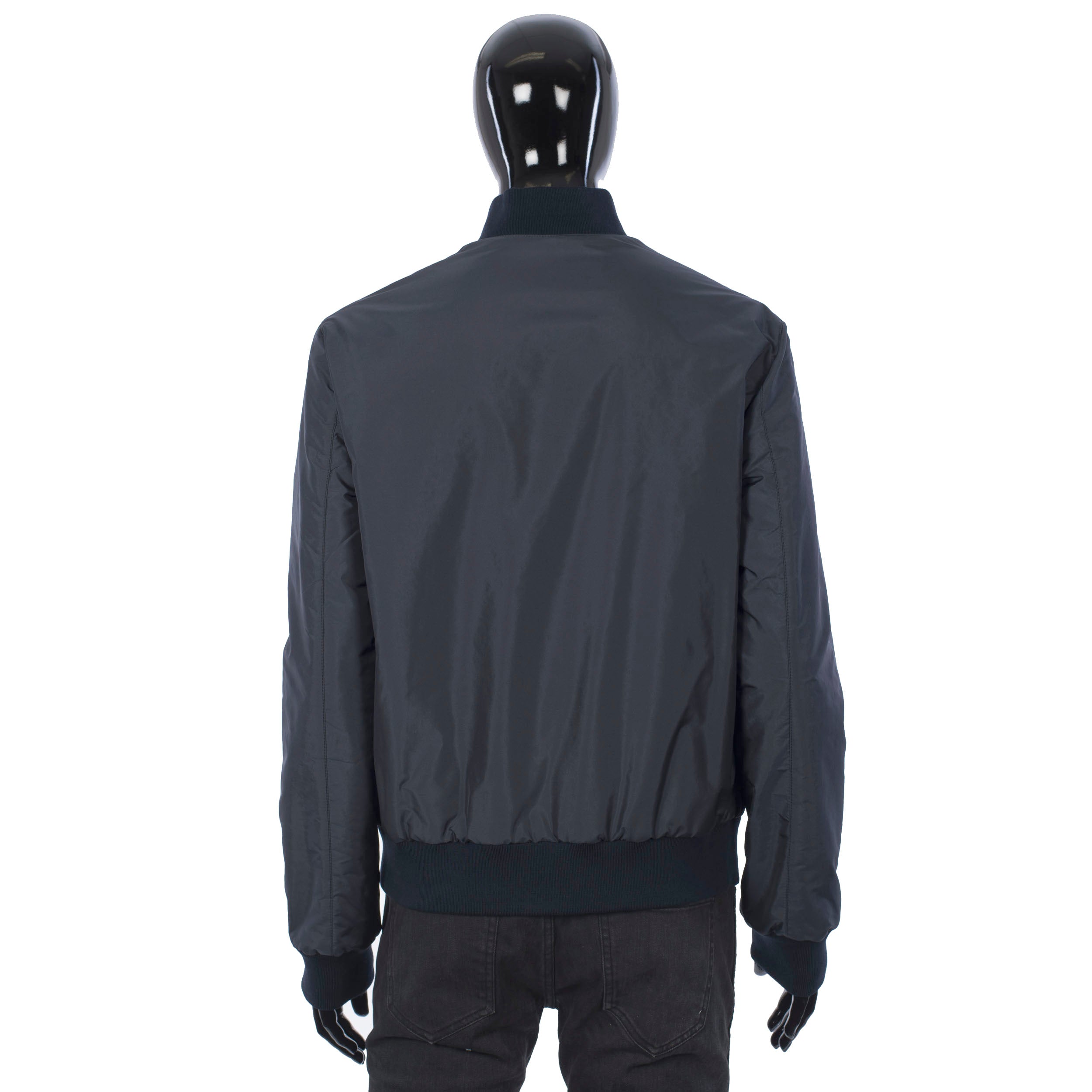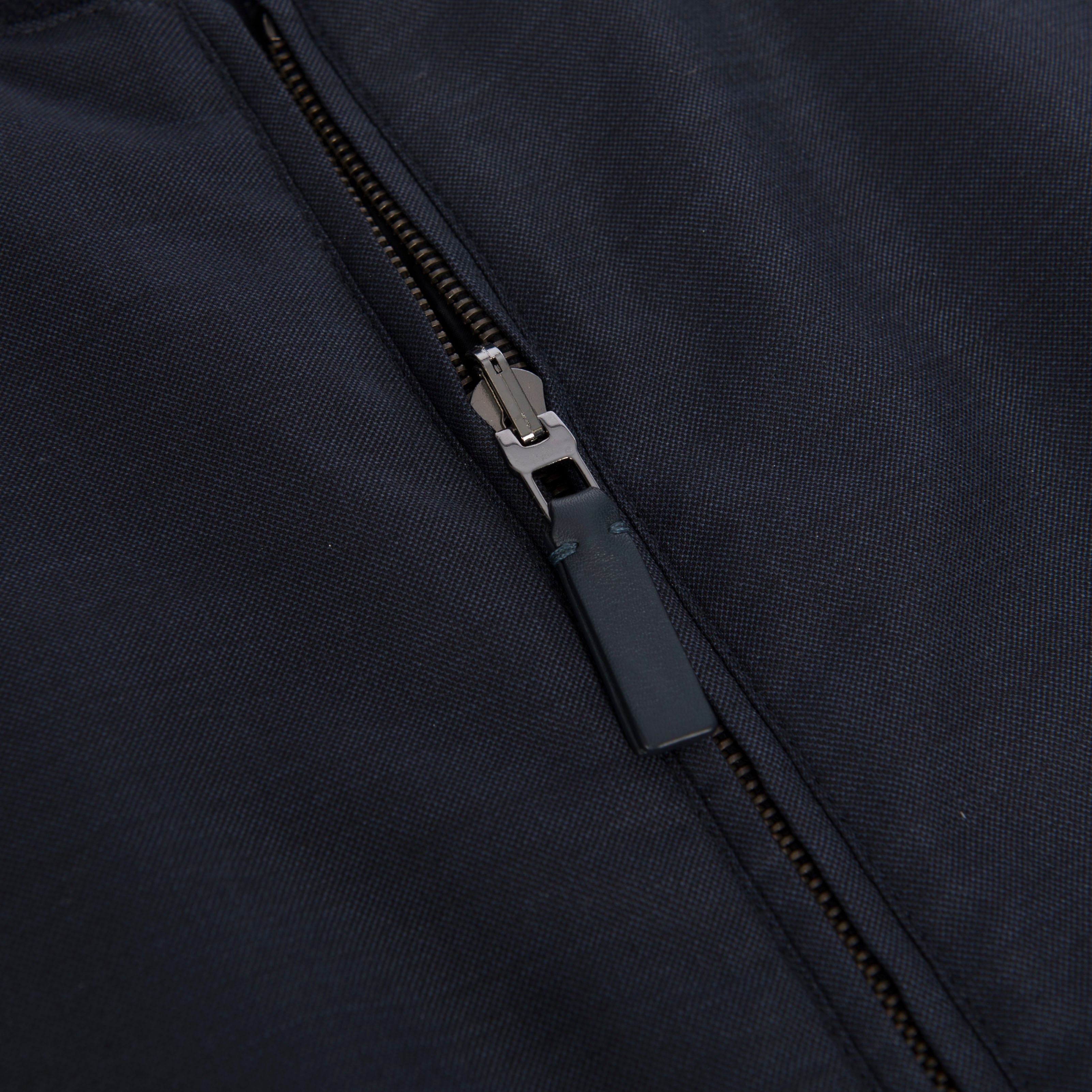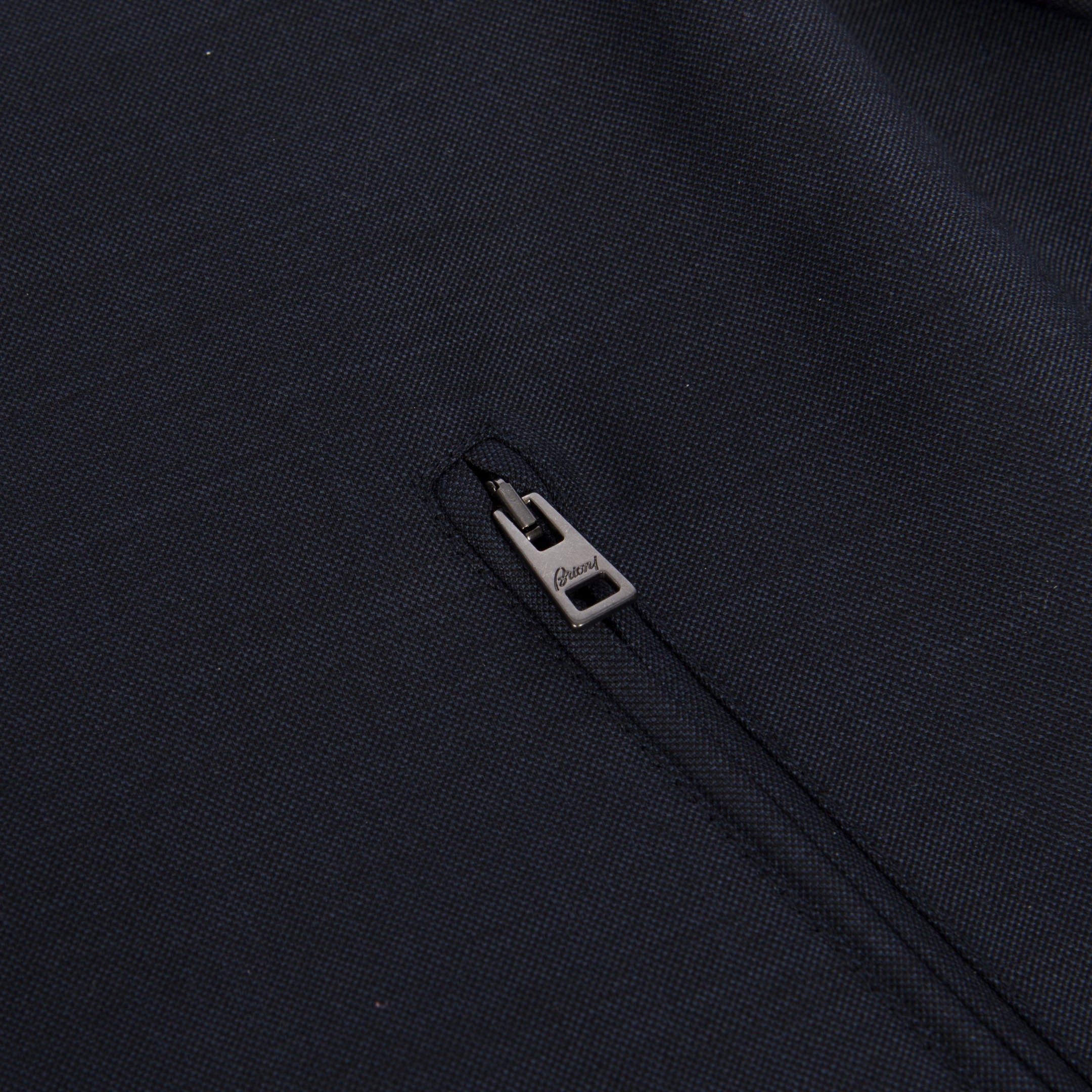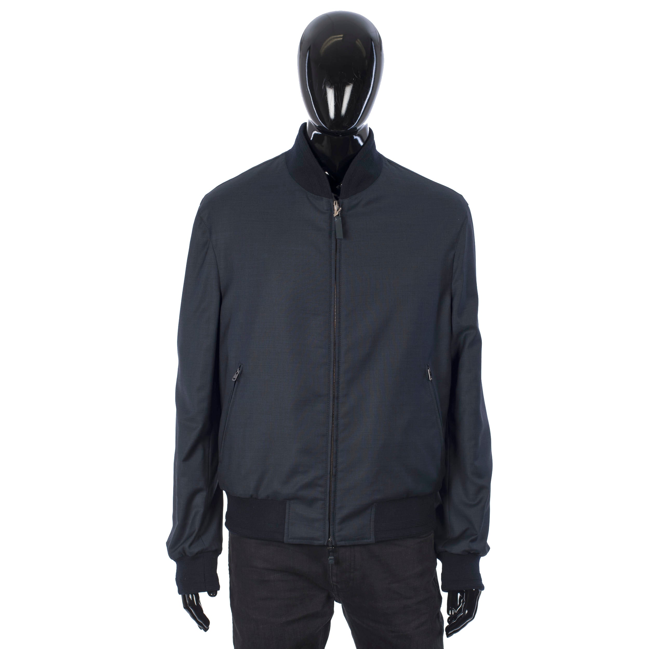 Reversible blouse jacket in navy blue virgin wool on one side and nylon on the other Elastic knitted cuffs, waist & collar Diagonal pockets Brioni logo Made in Italy