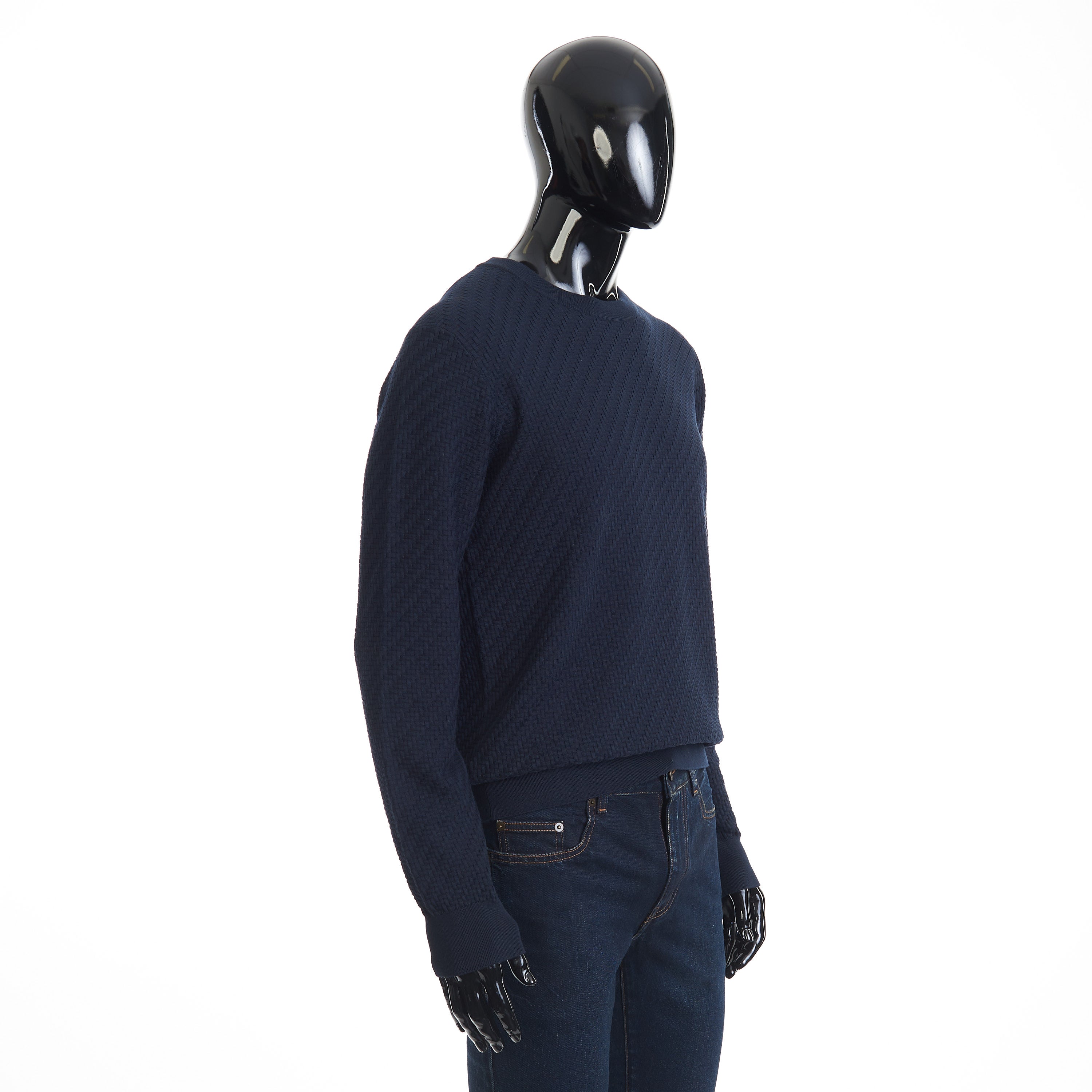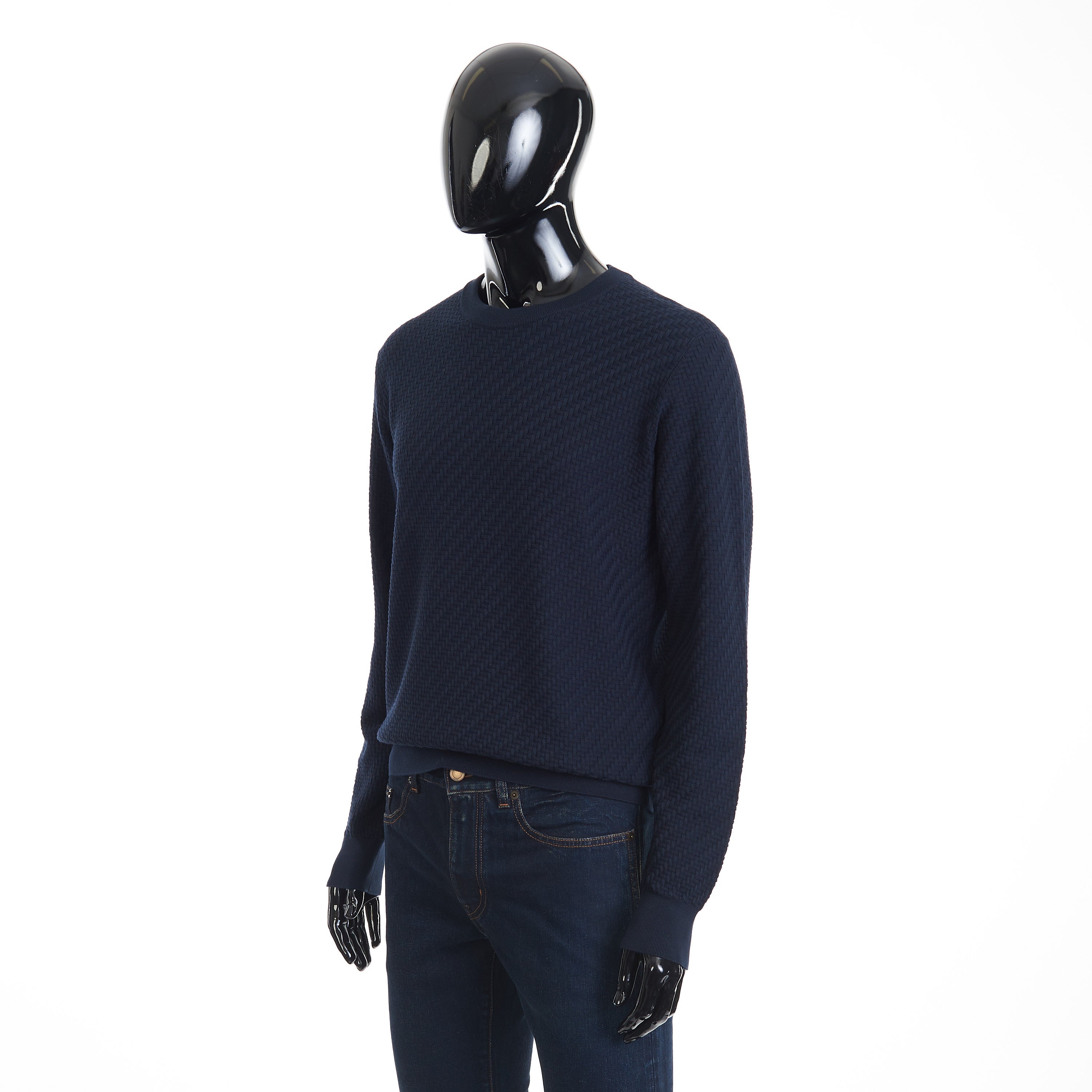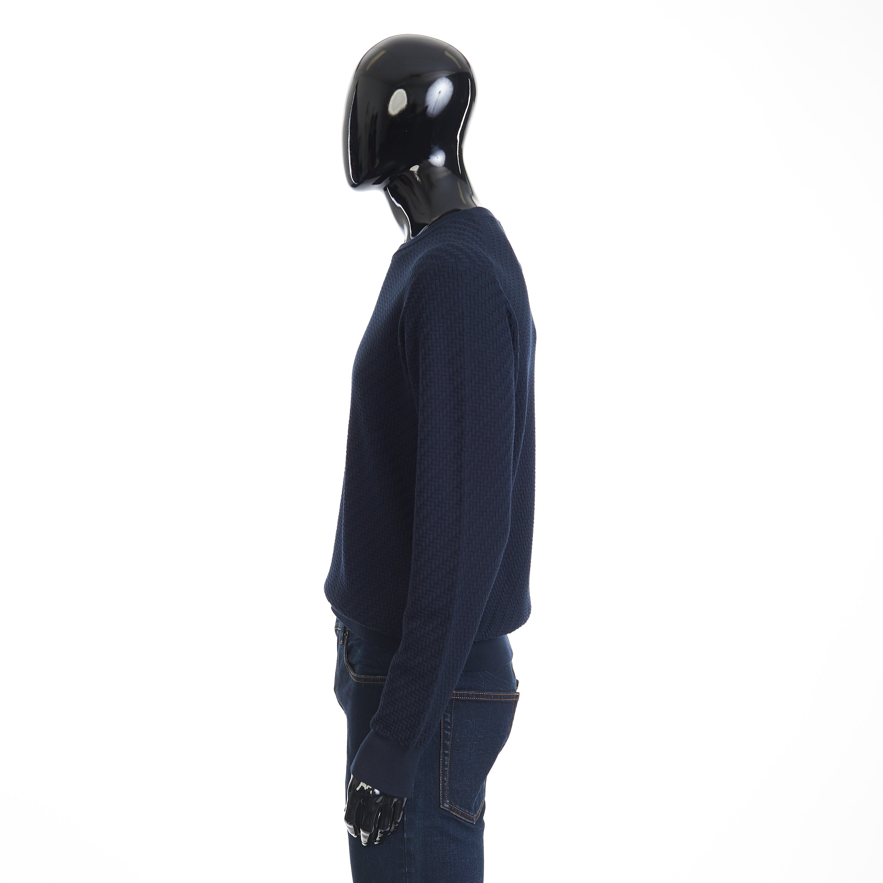 Navy blue crewneck sweater with long sleeves in cotton, silk and cashmere. Its soft hand feel and comfortable fit make it perfect to be worn year-round