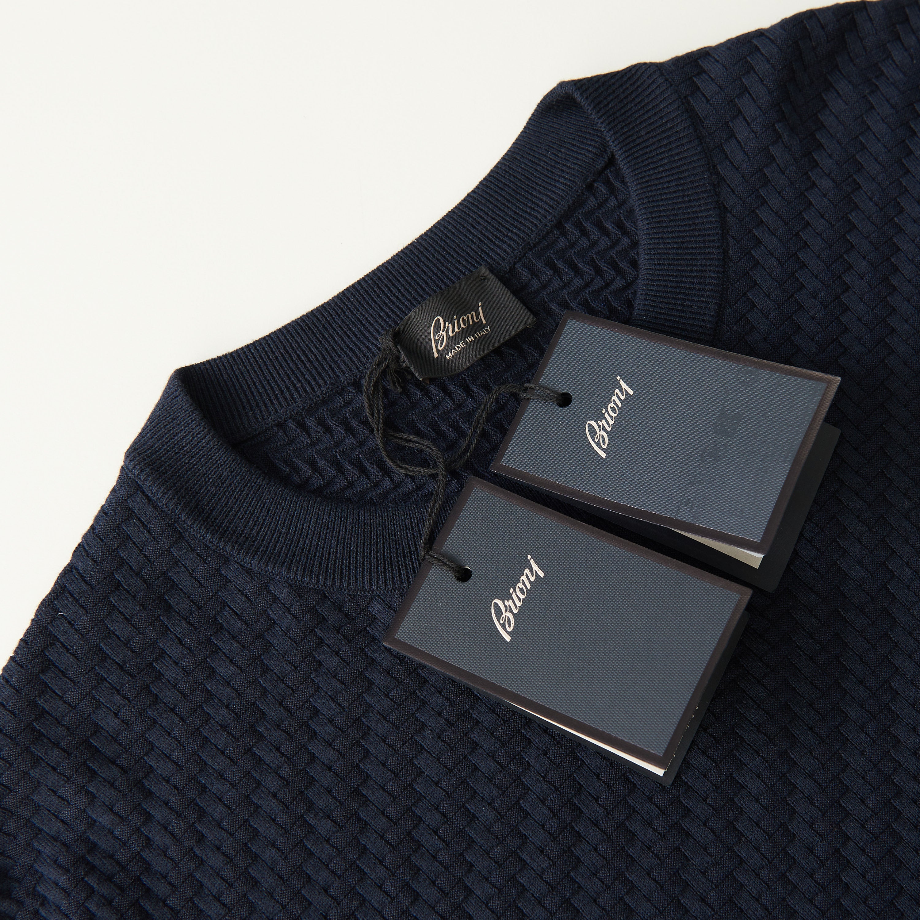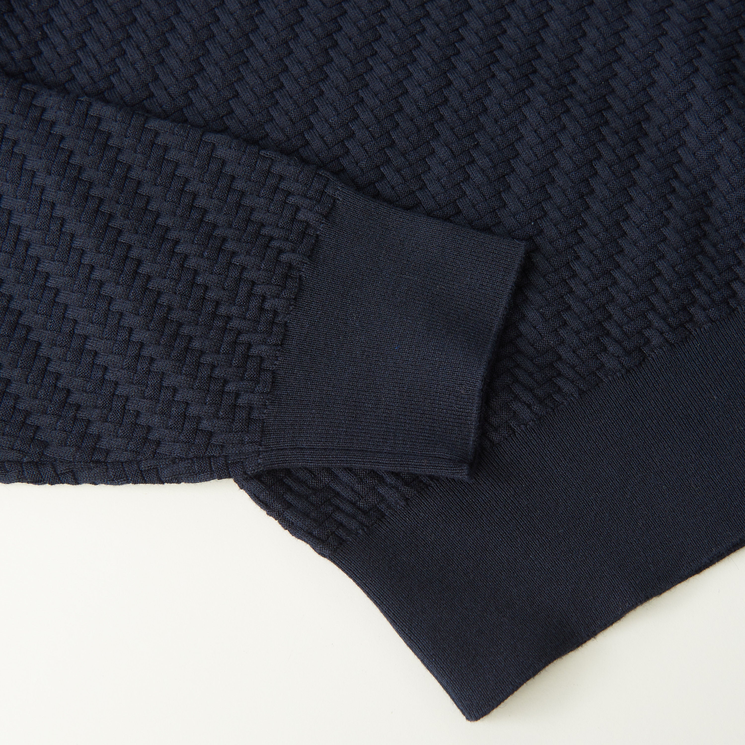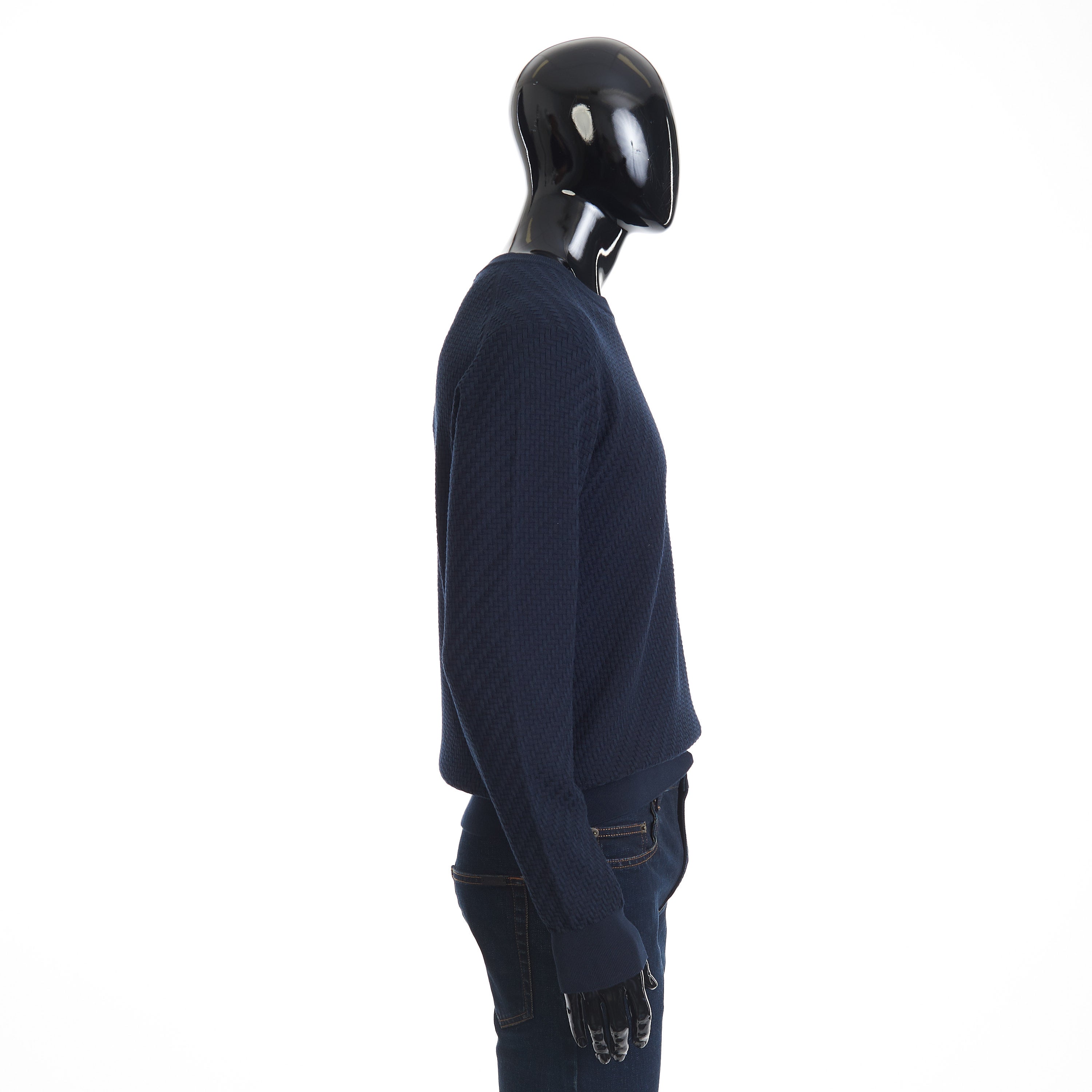 Navy blue crewneck sweater with long sleeves in cotton, silk and cashmere. Its soft hand feel and comfortable fit make it perfect to be worn year-round