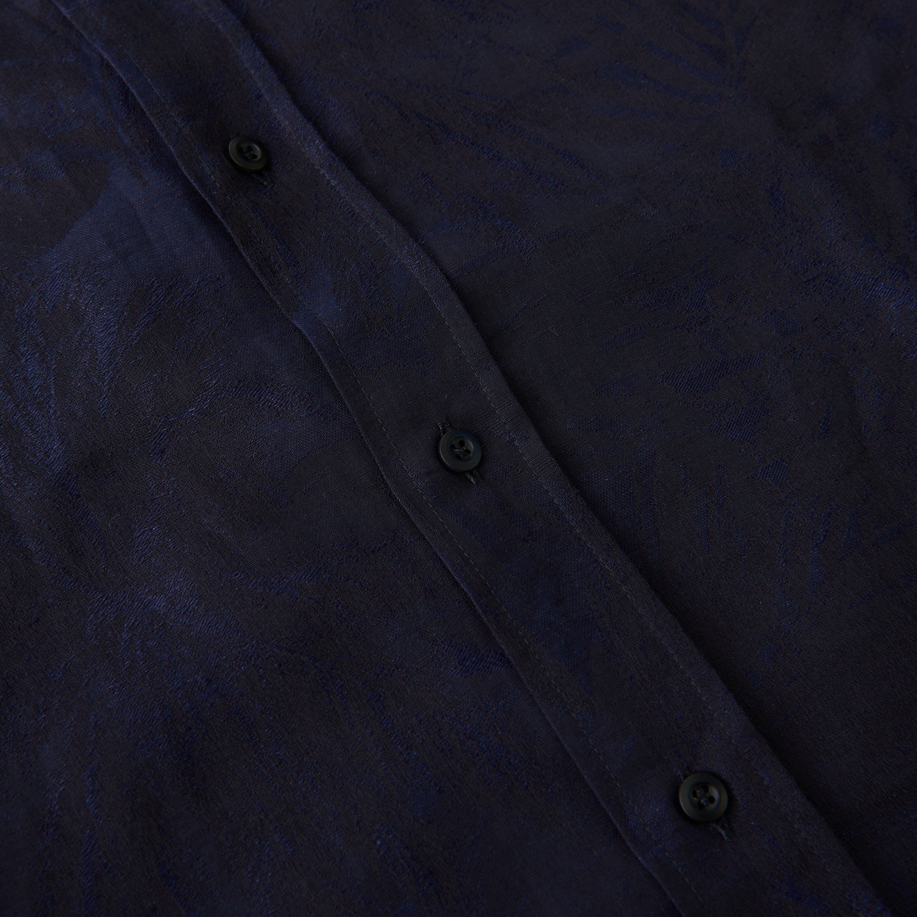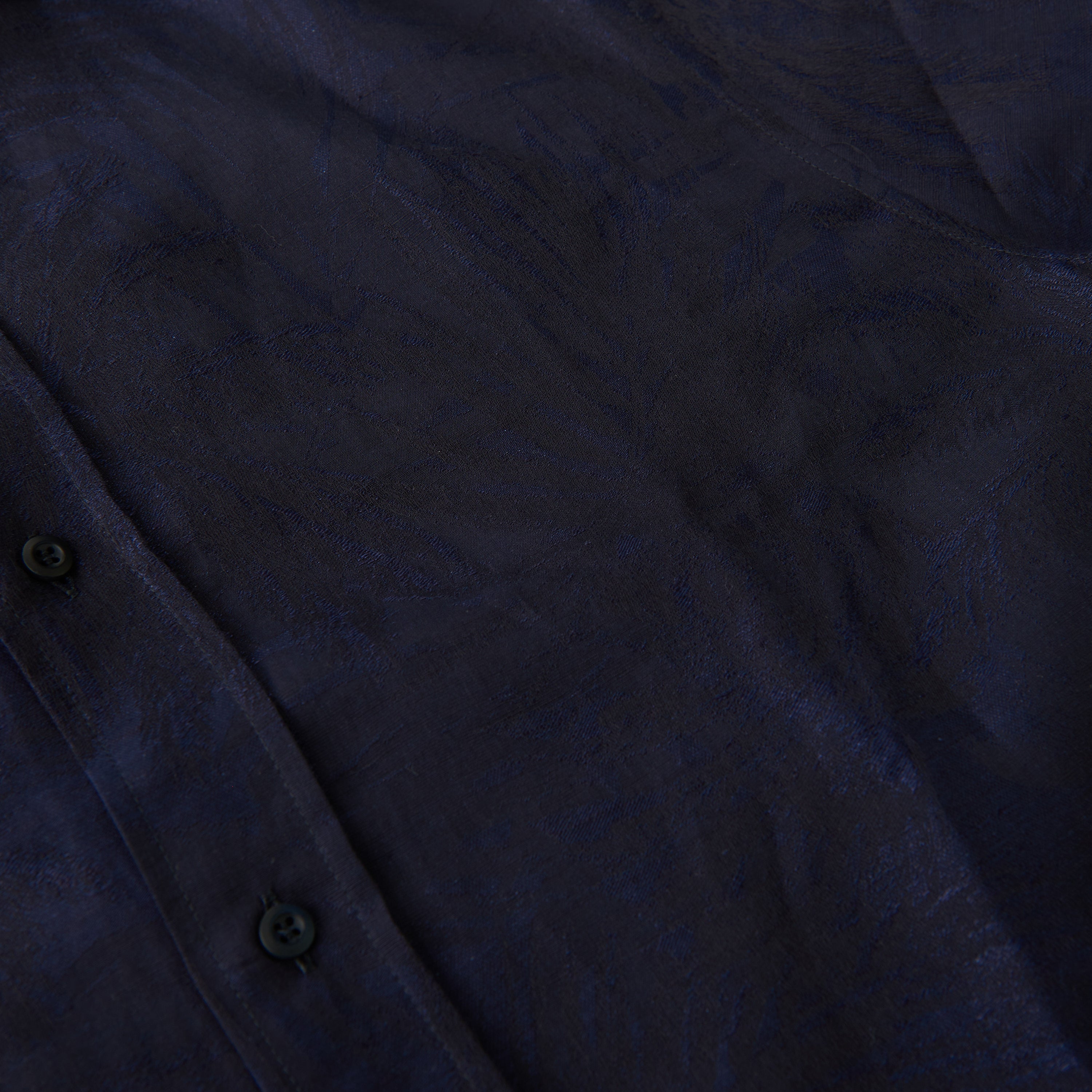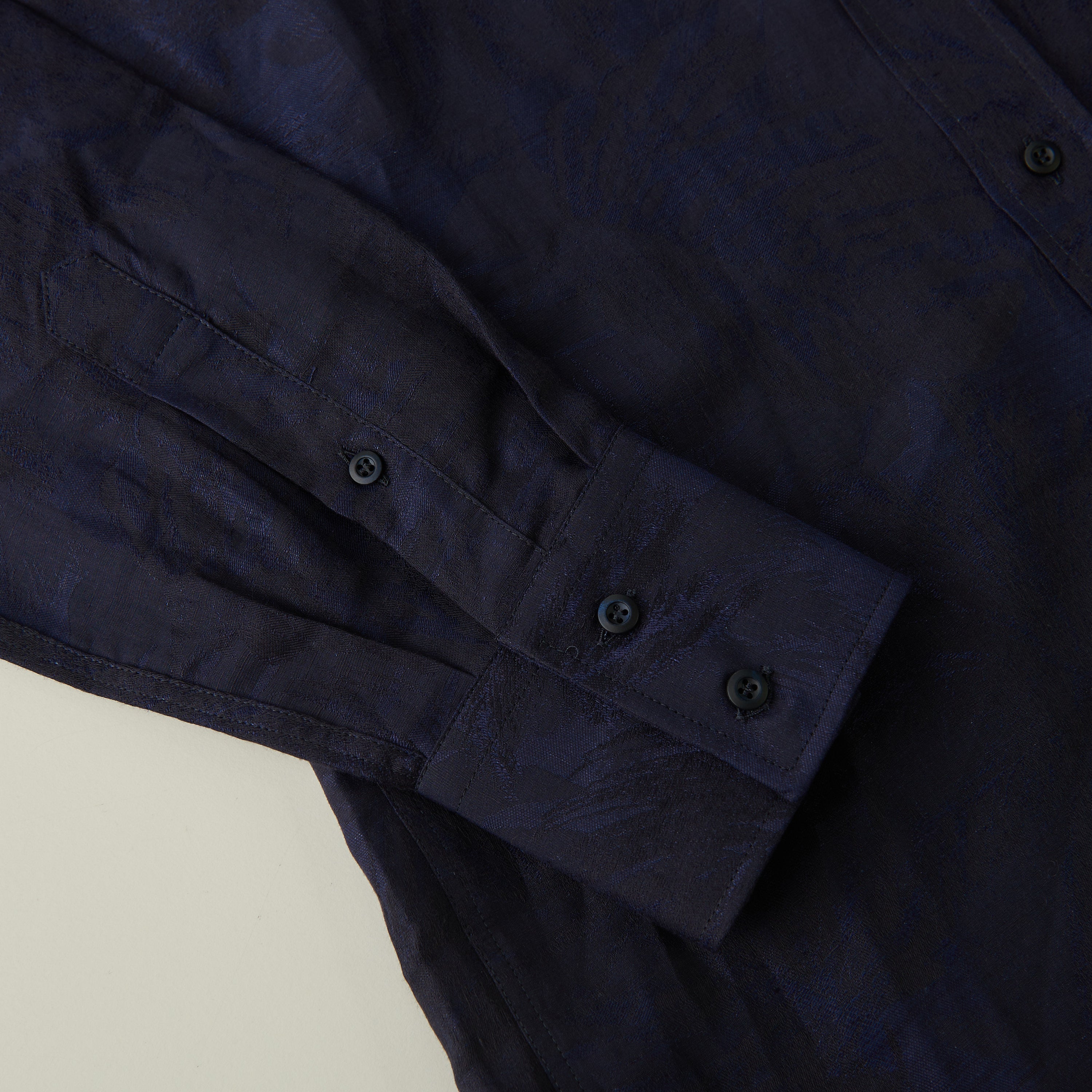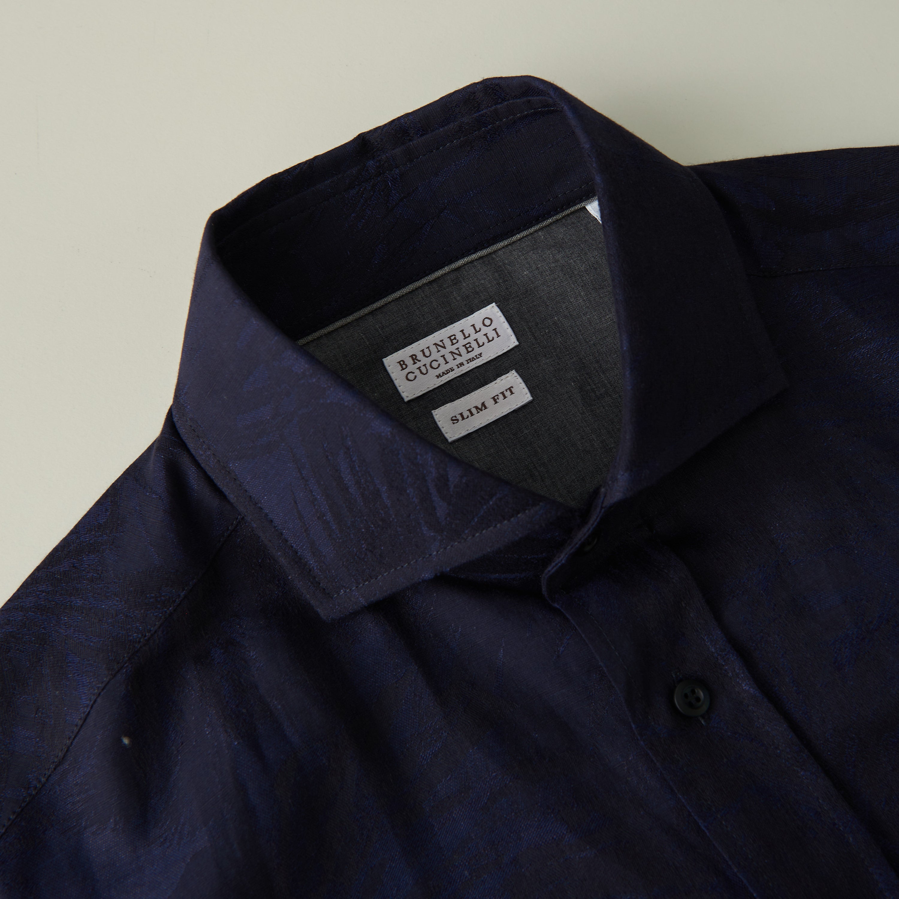 Palm Jacquard Slim Fit Shirt - Cotton & Linen, Spread Collar