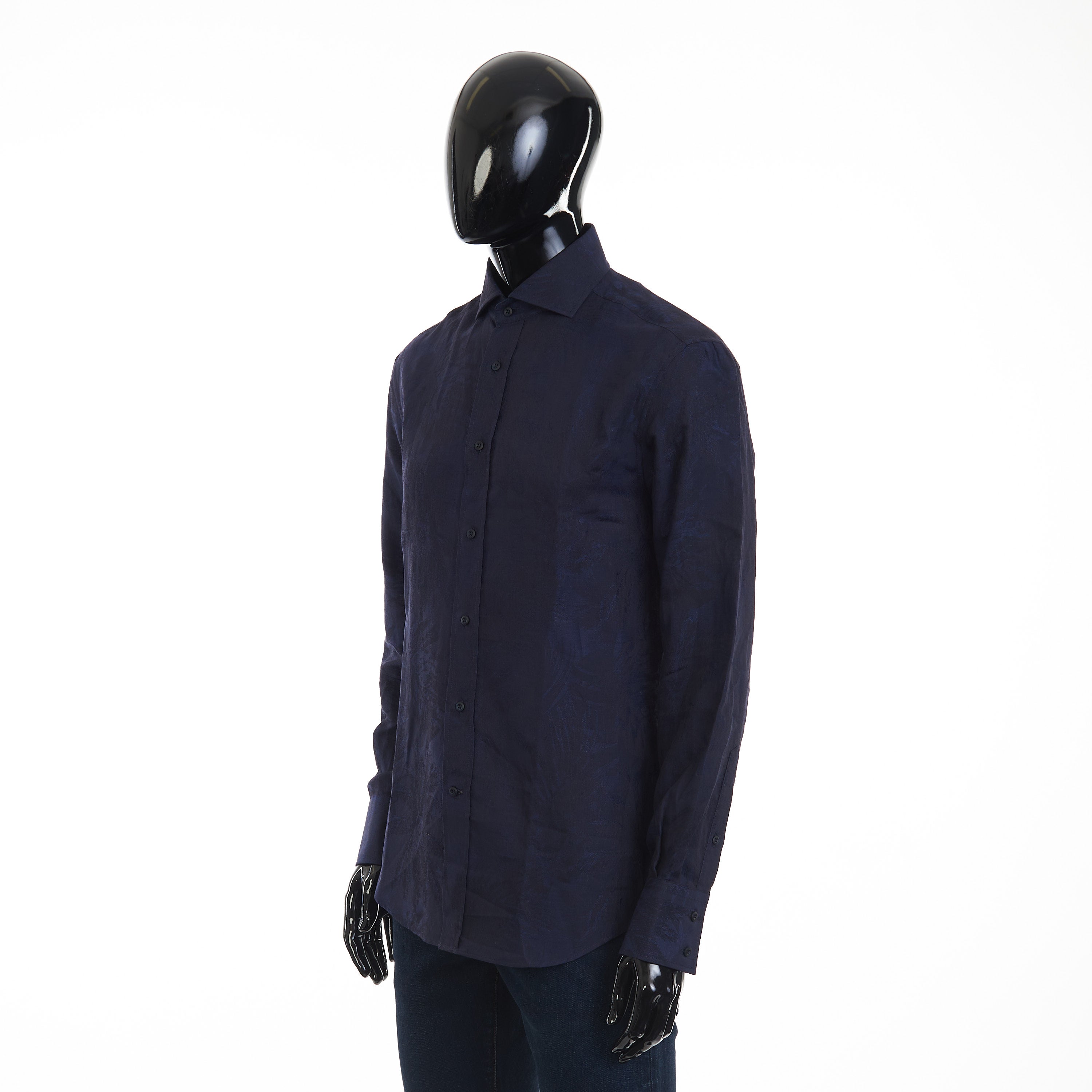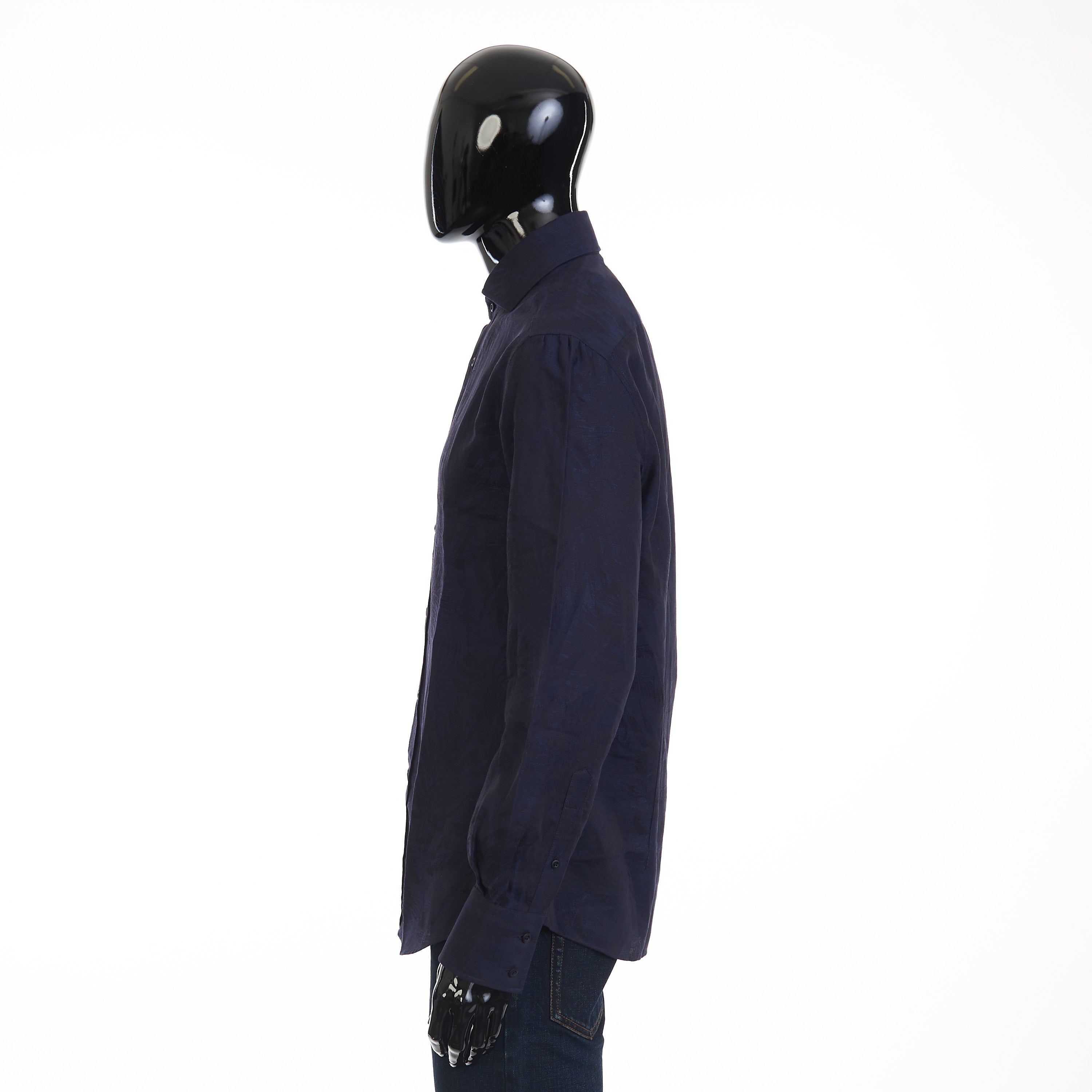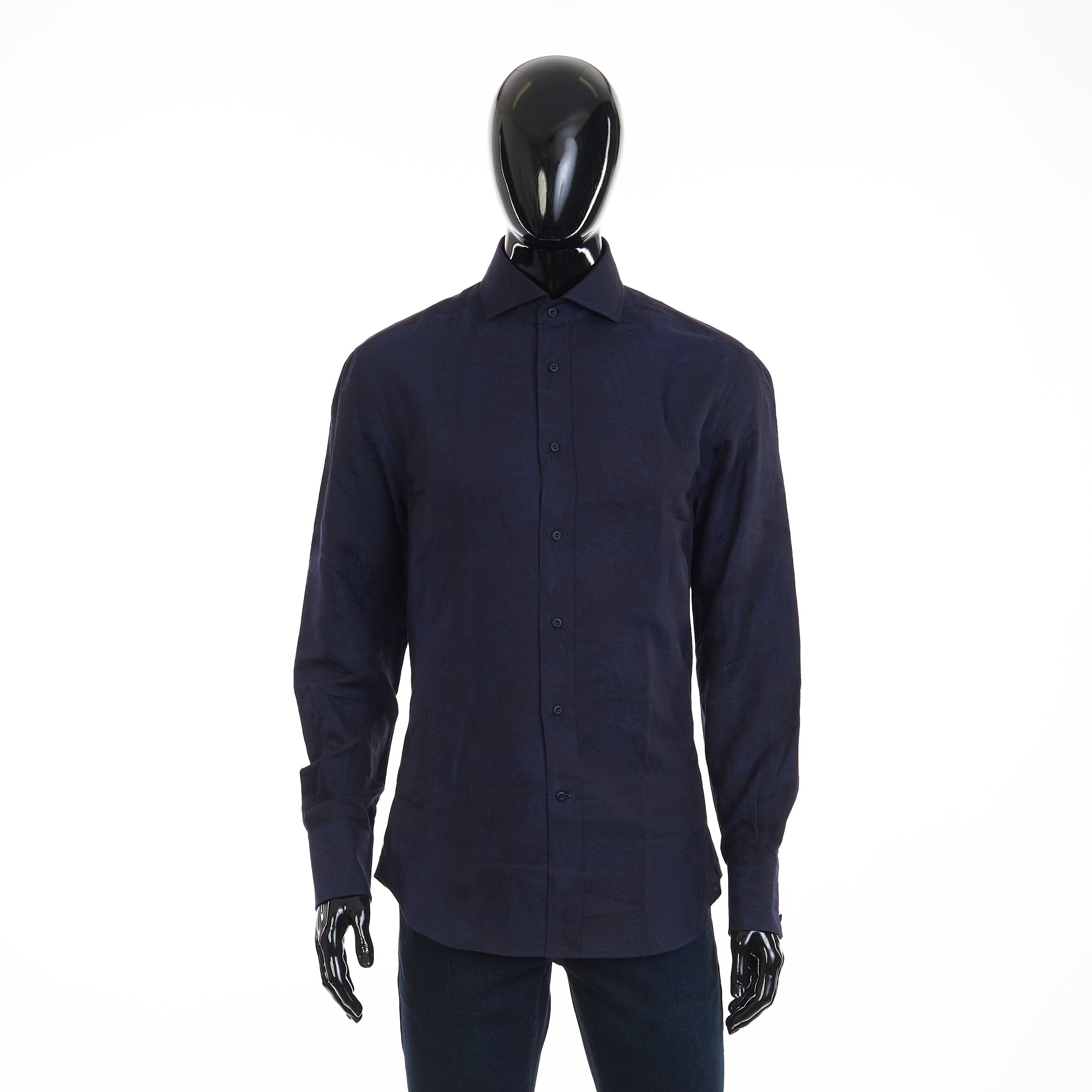 Palm Jacquard Slim Fit Shirt - Cotton & Linen, Spread Collar