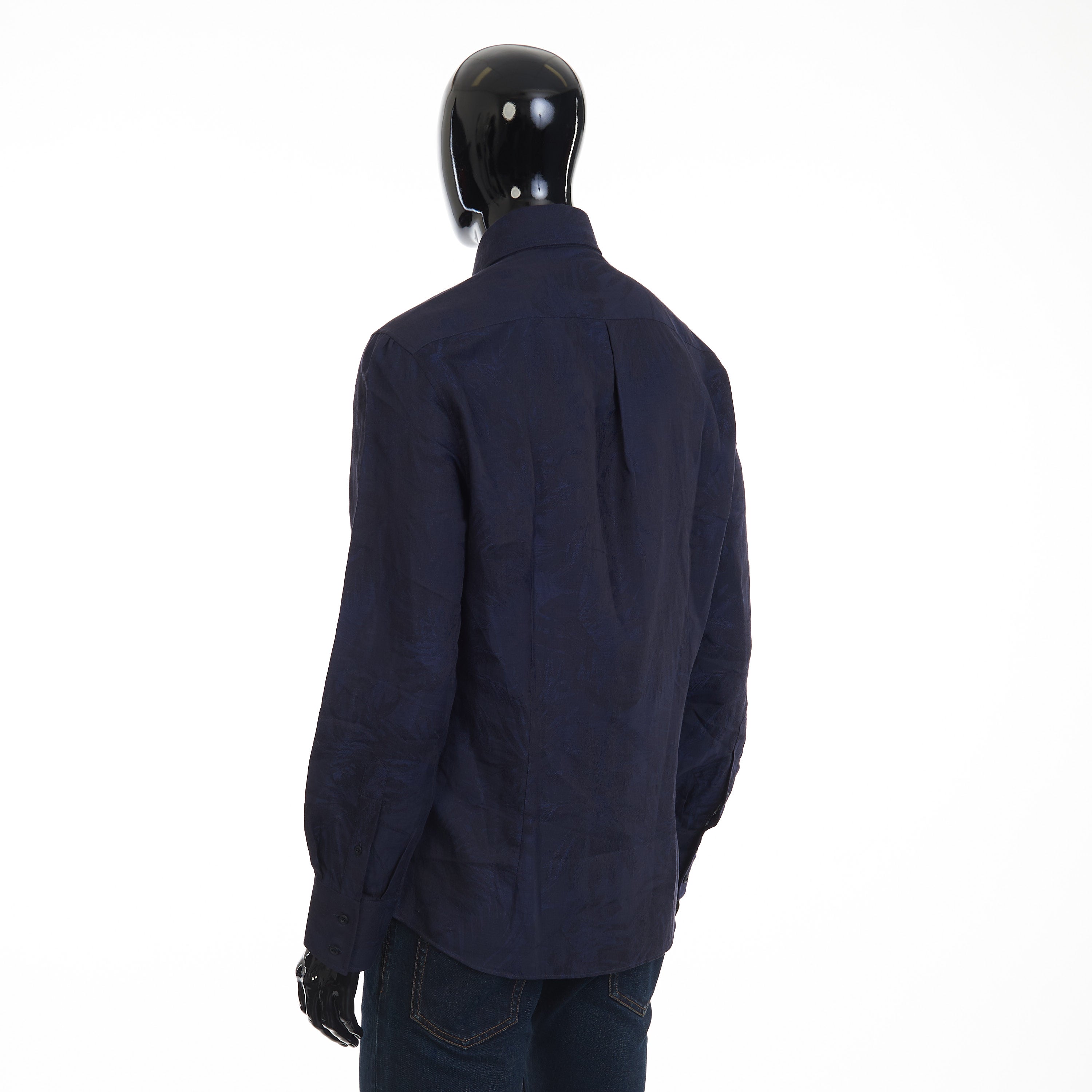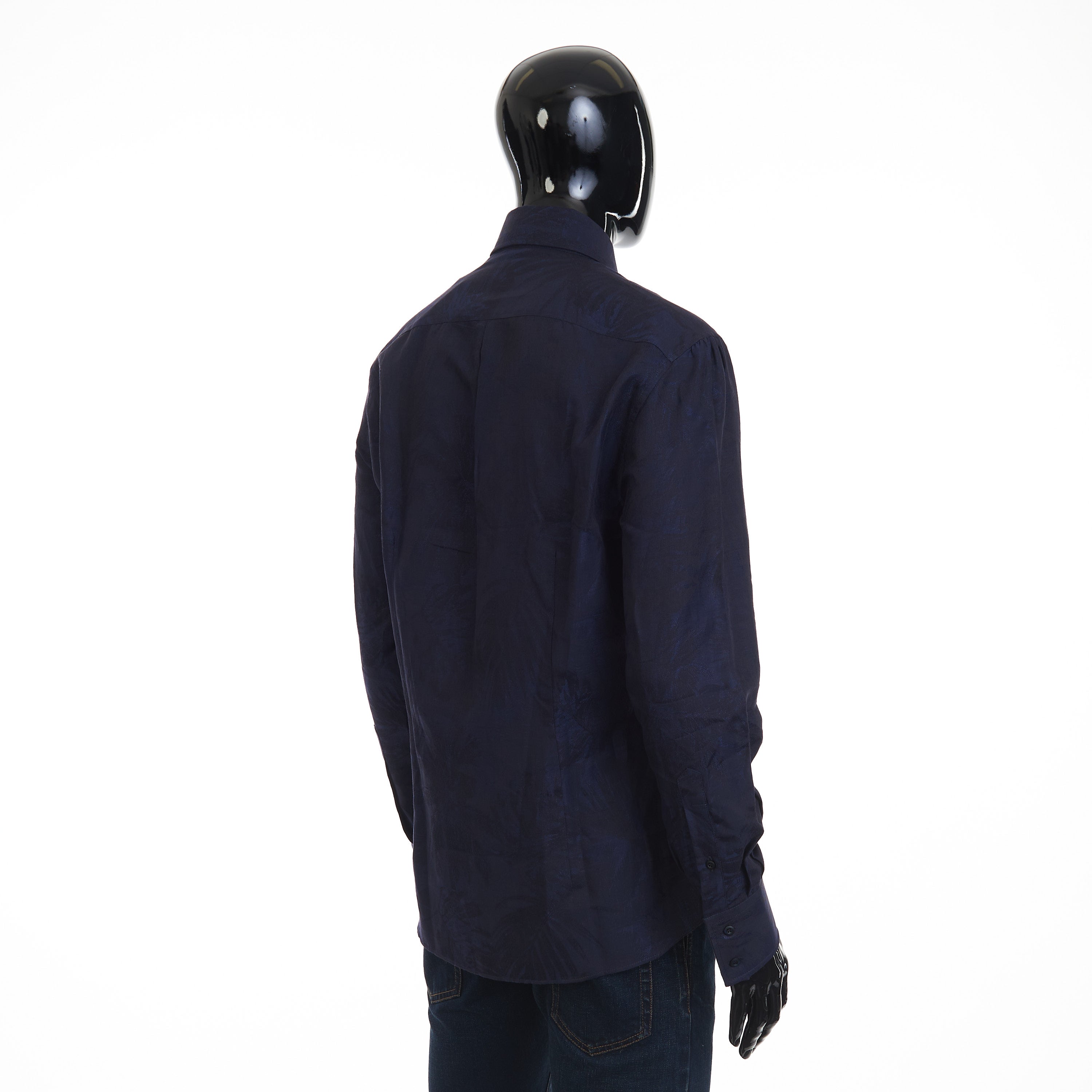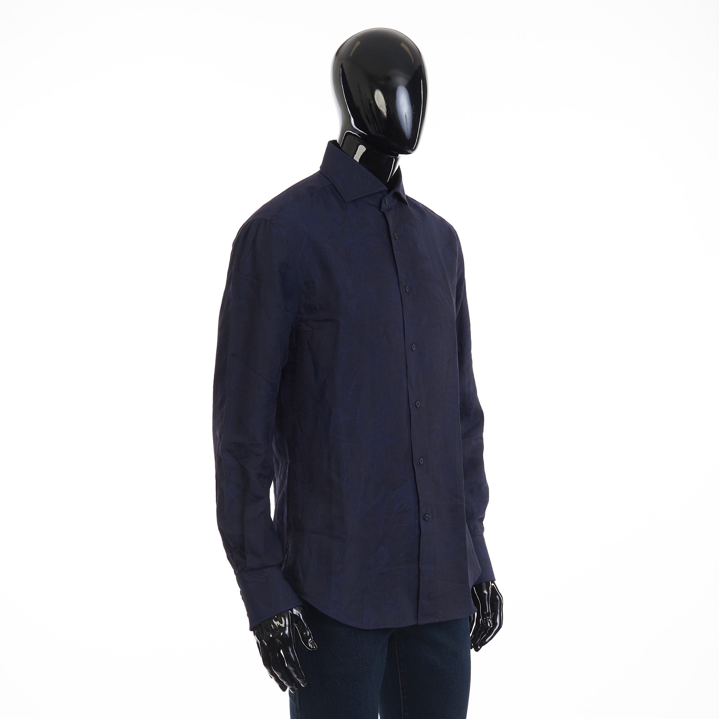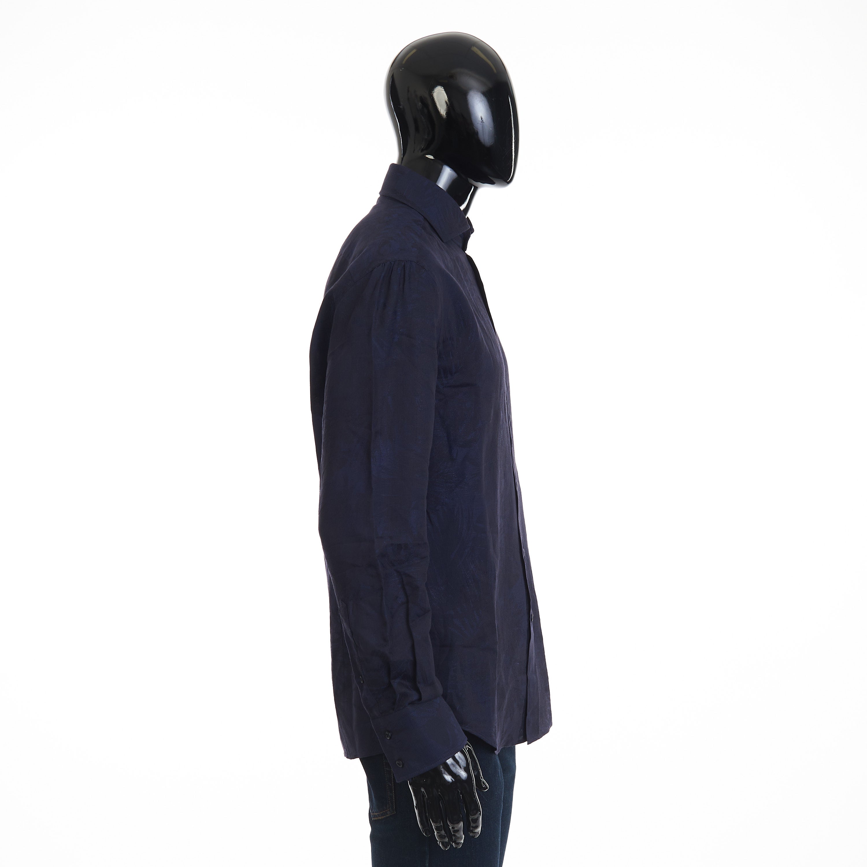 Palm Jacquard Slim Fit Shirt - Cotton & Linen, Spread Collar