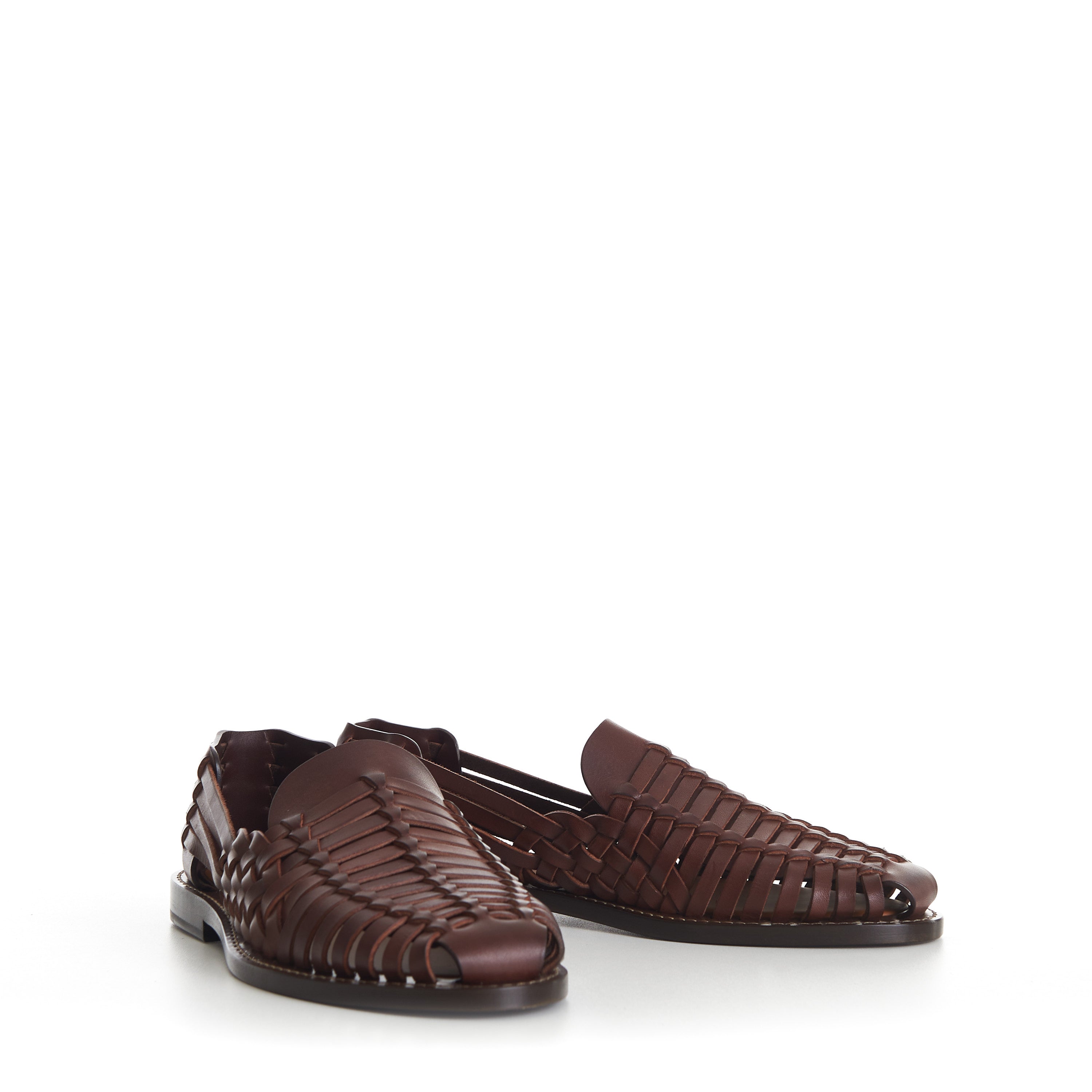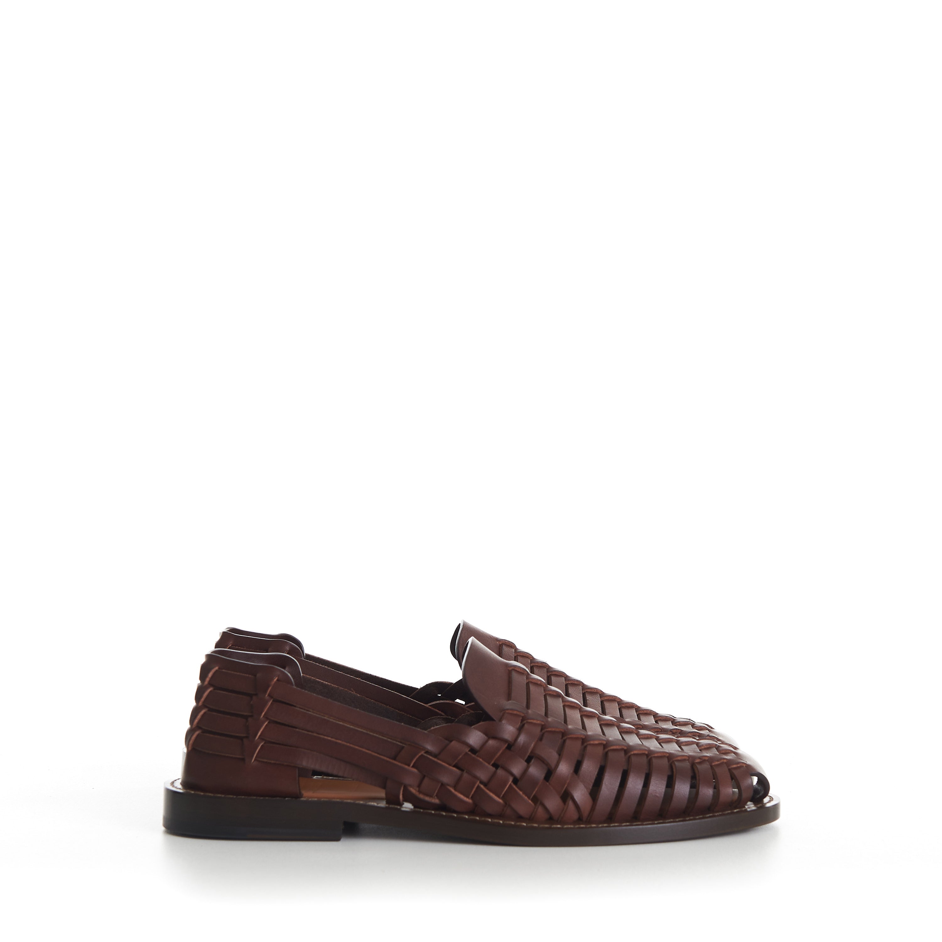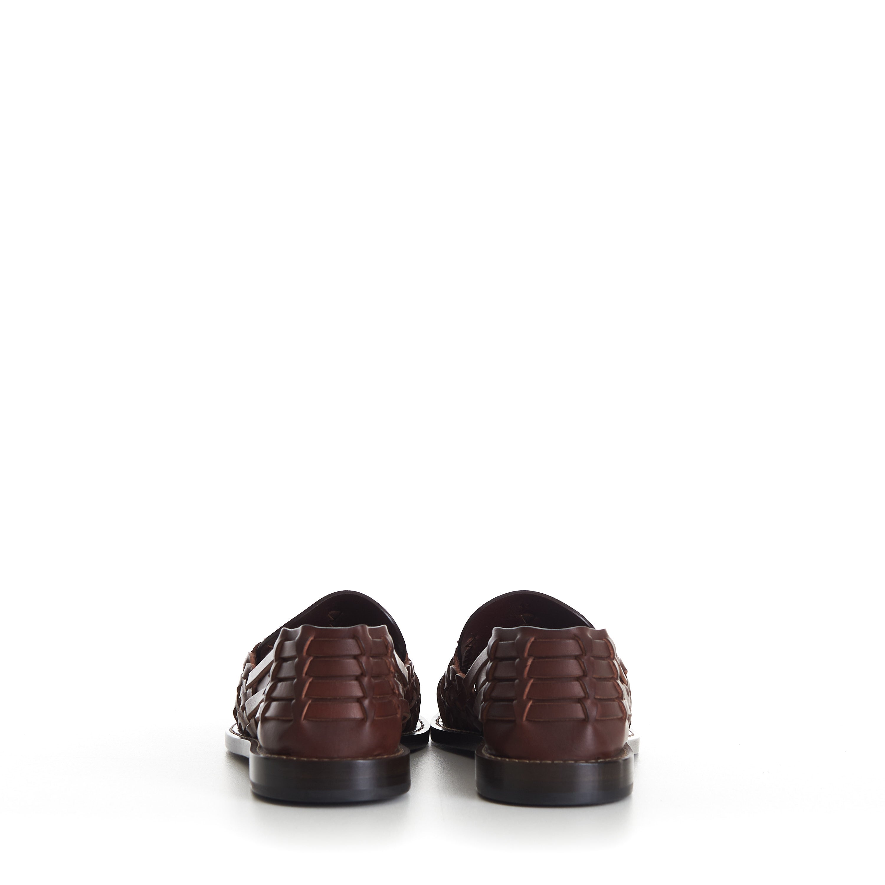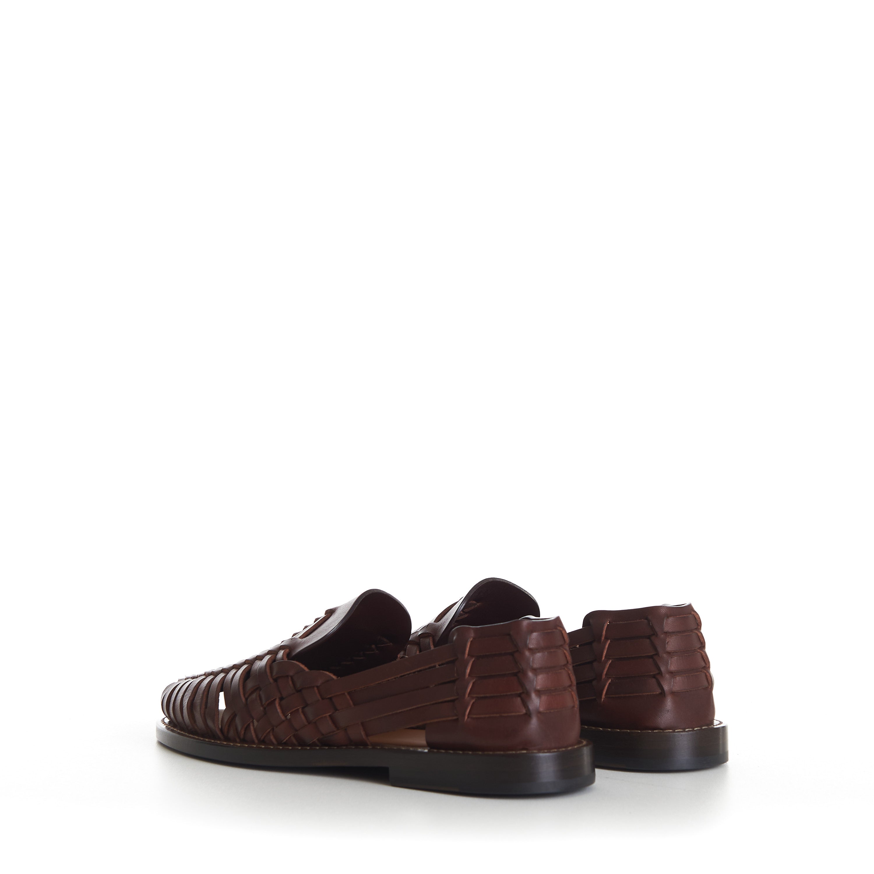 Calfskin sandals inspired by the silhouette of classic loafersLight woven structureLeather outsole and rubber bottomLeather liningMade in ItalyFabric: Leather; Rubber SolesMade in: ItalyModel no.: MZUELBM313-C8895