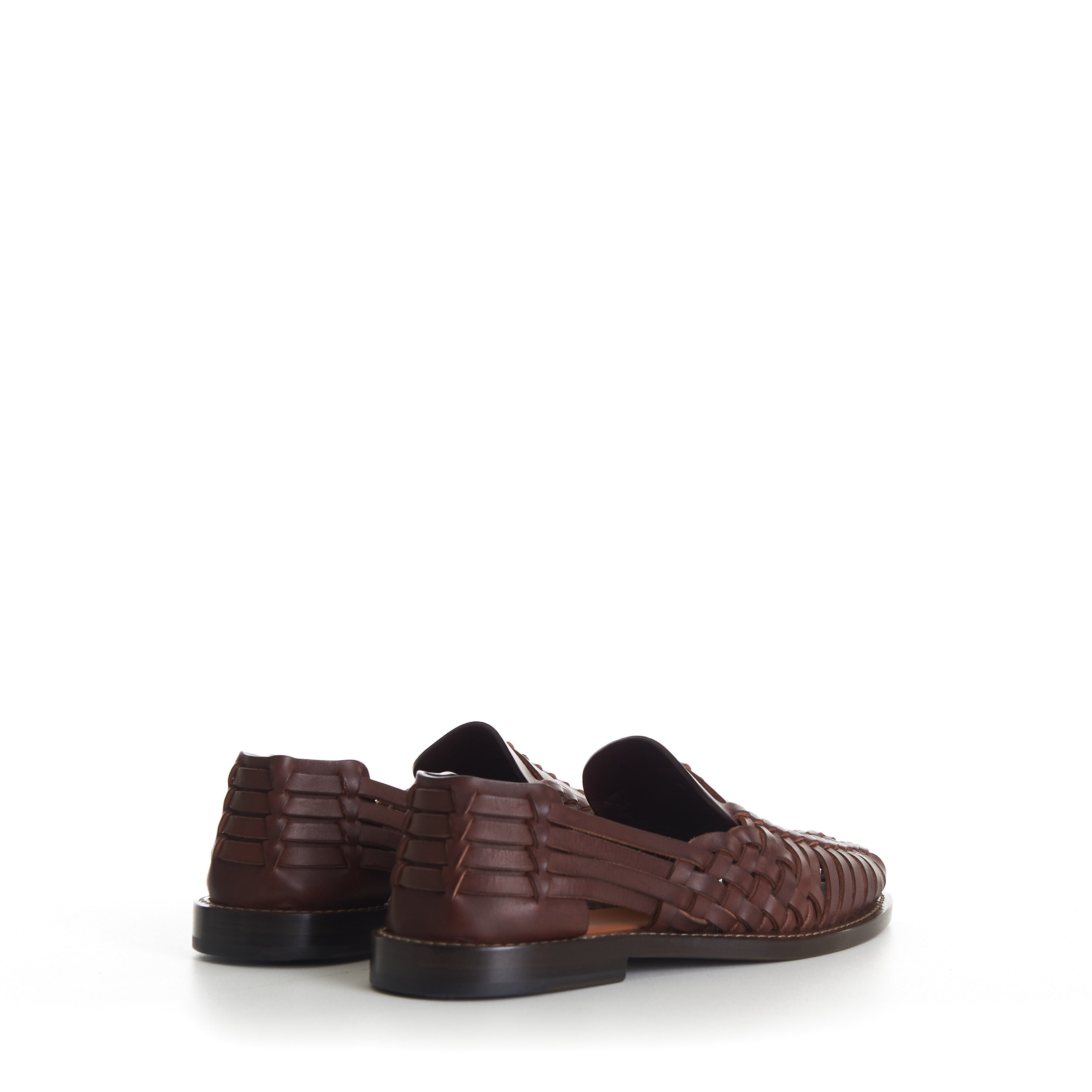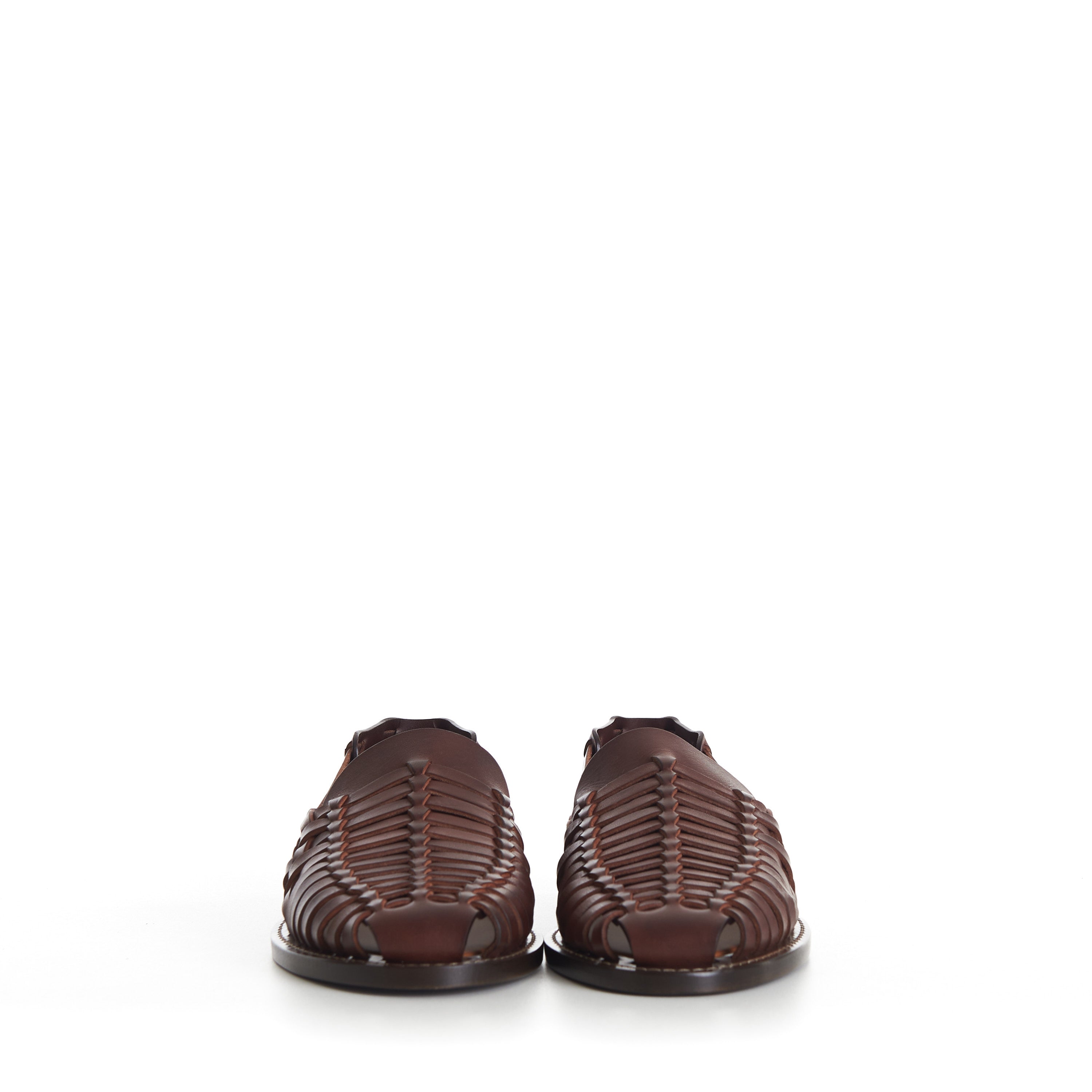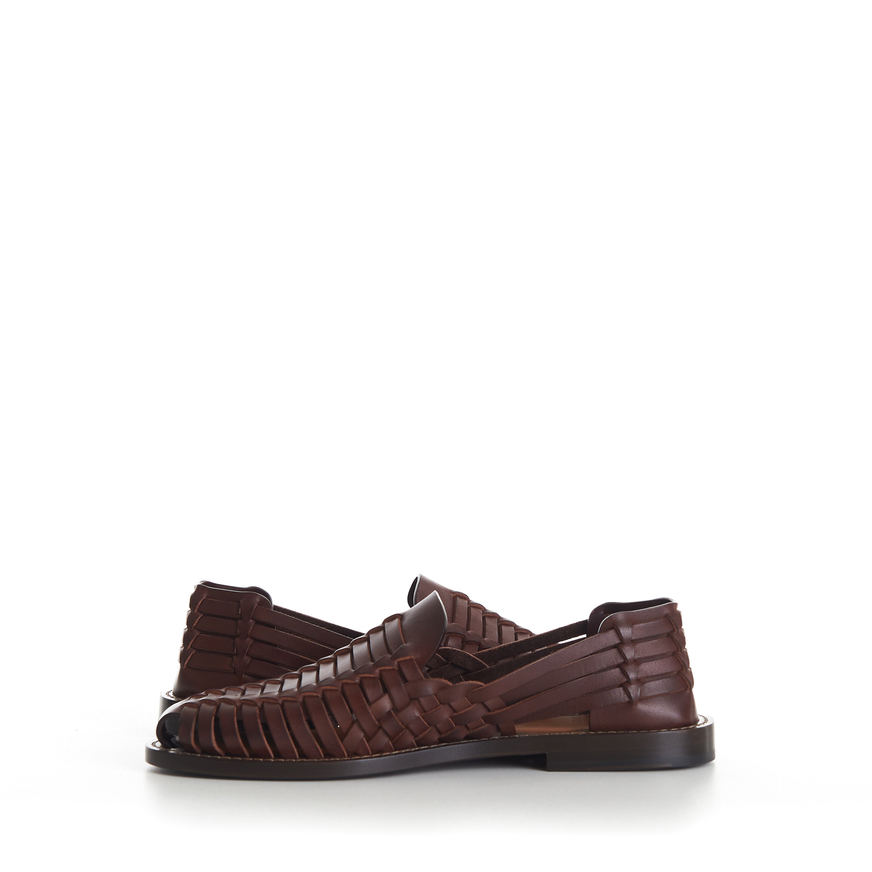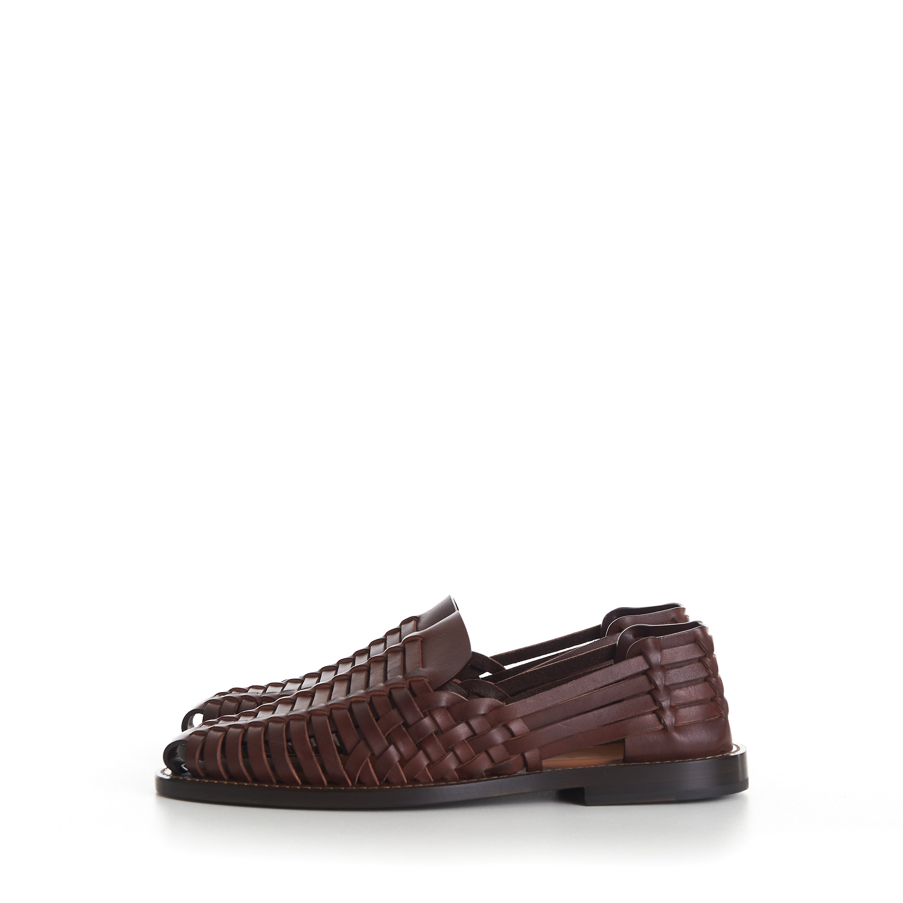 Calfskin sandals inspired by the silhouette of classic loafersLight woven structureLeather outsole and rubber bottomLeather liningMade in ItalyFabric: Leather; Rubber SolesMade in: ItalyModel no.: MZUELBM313-C8895