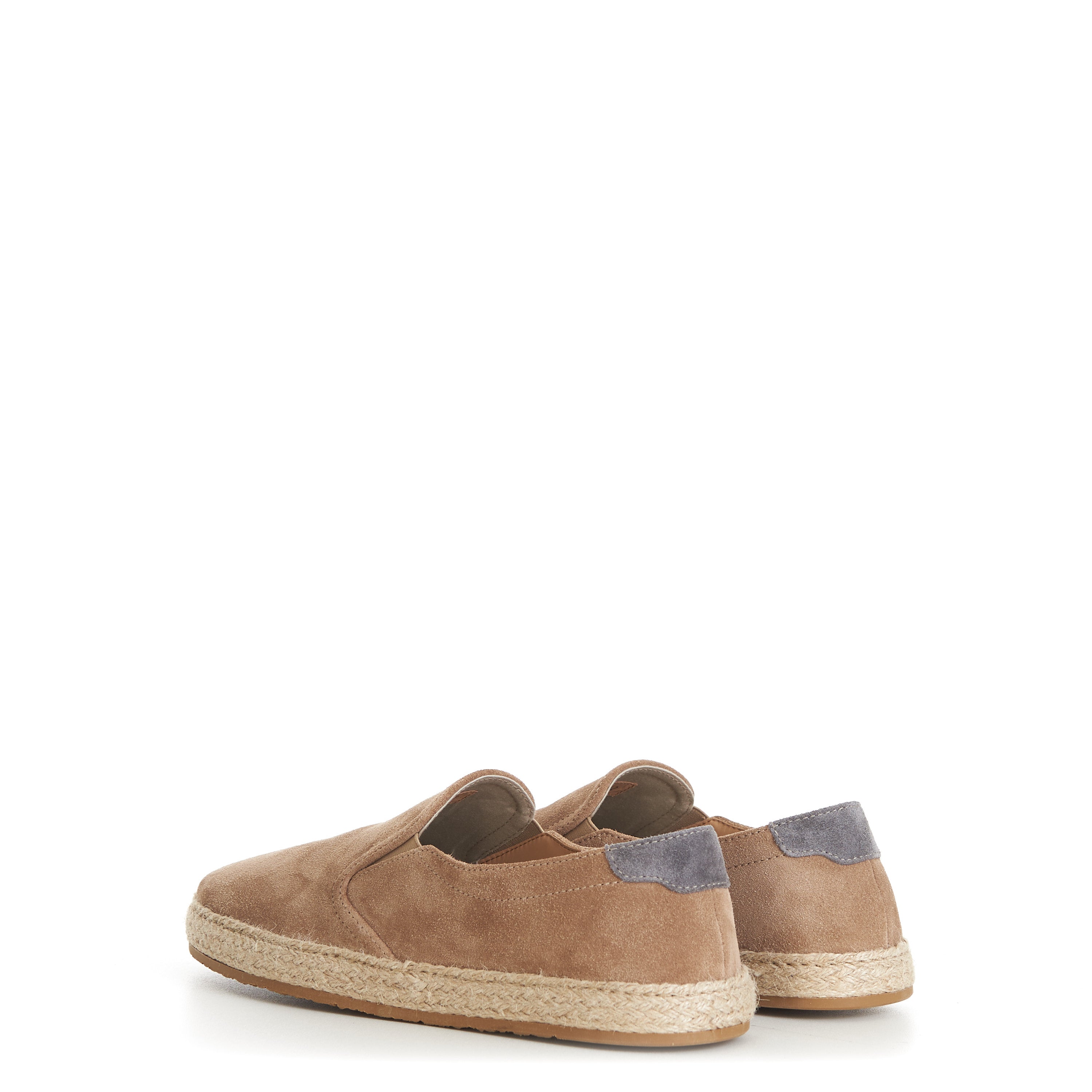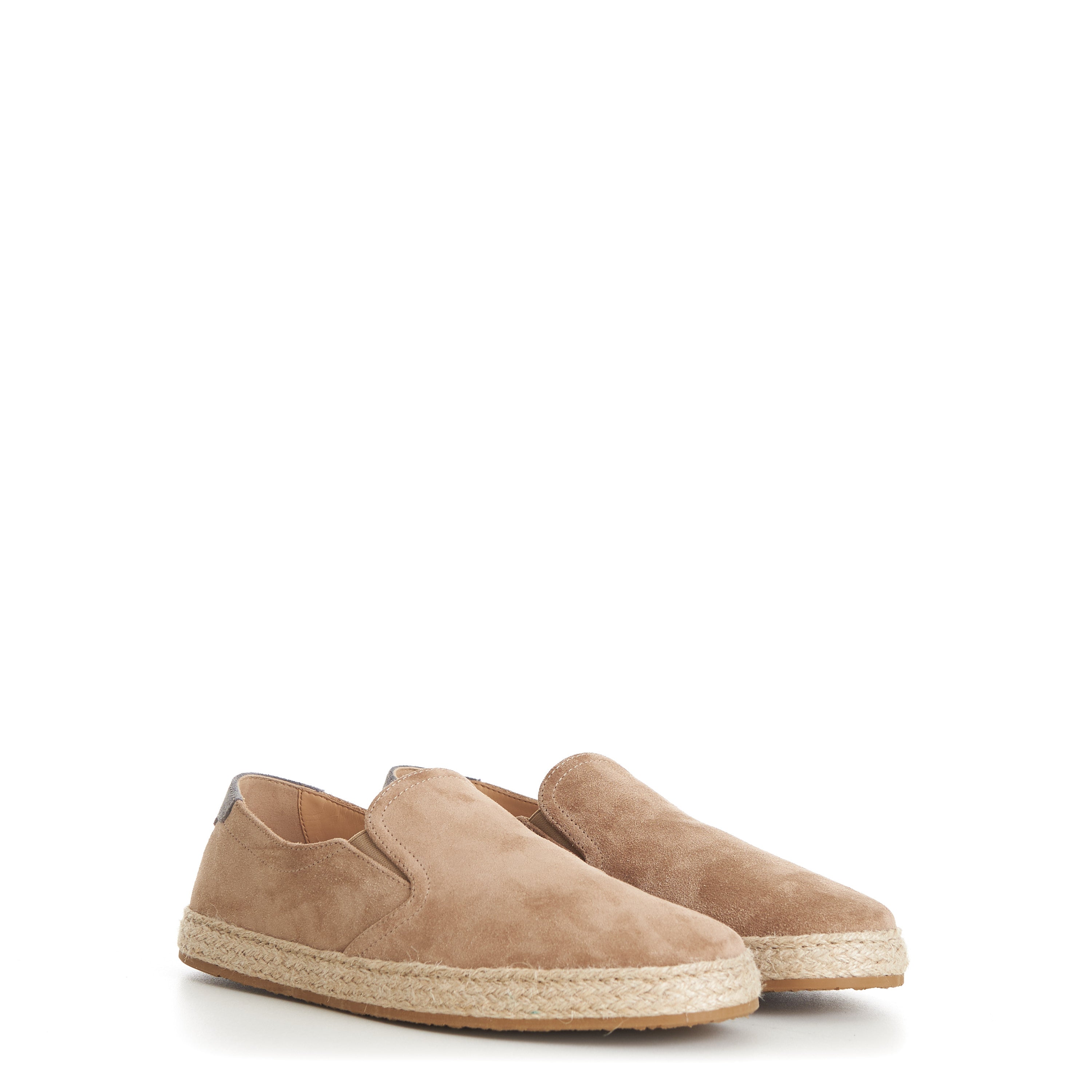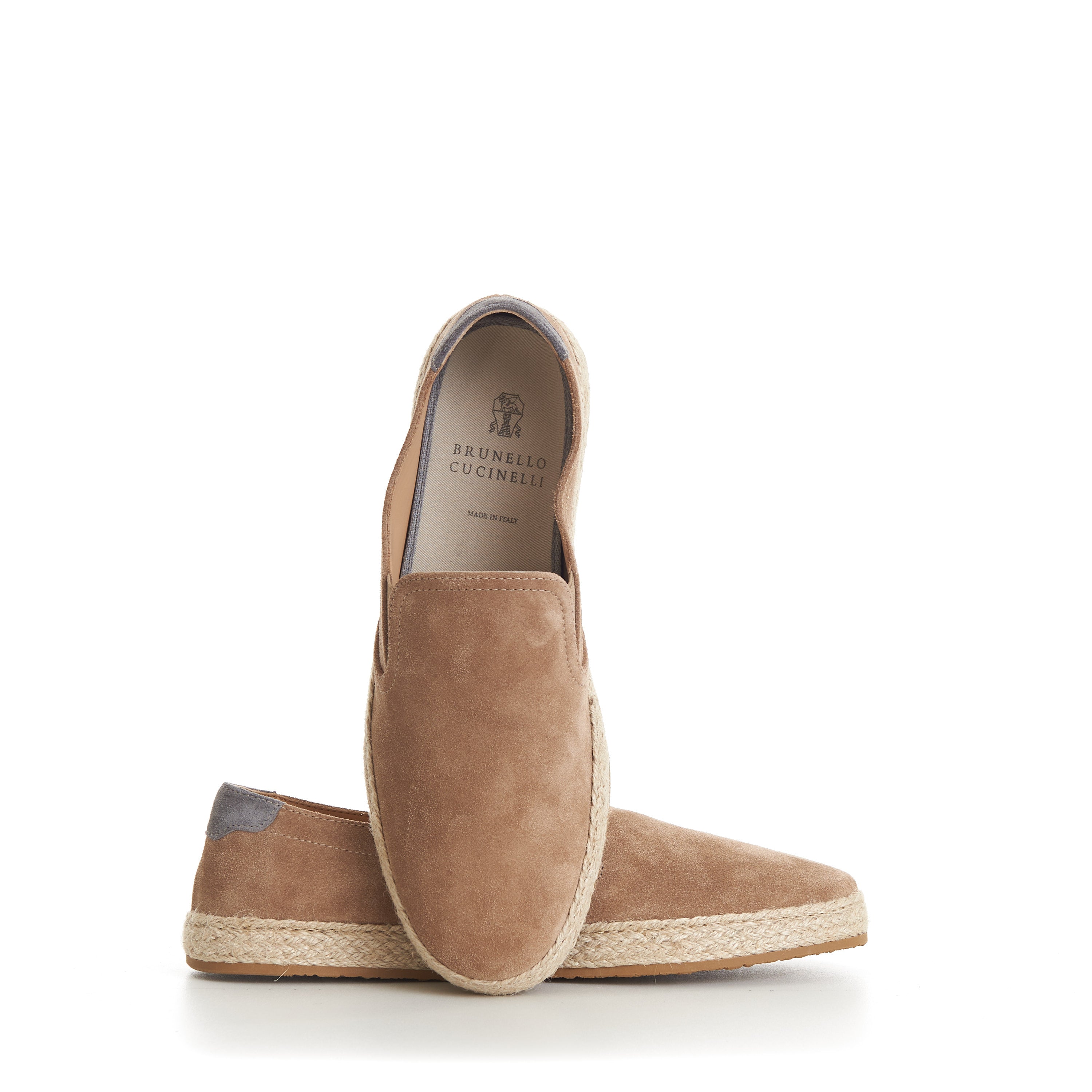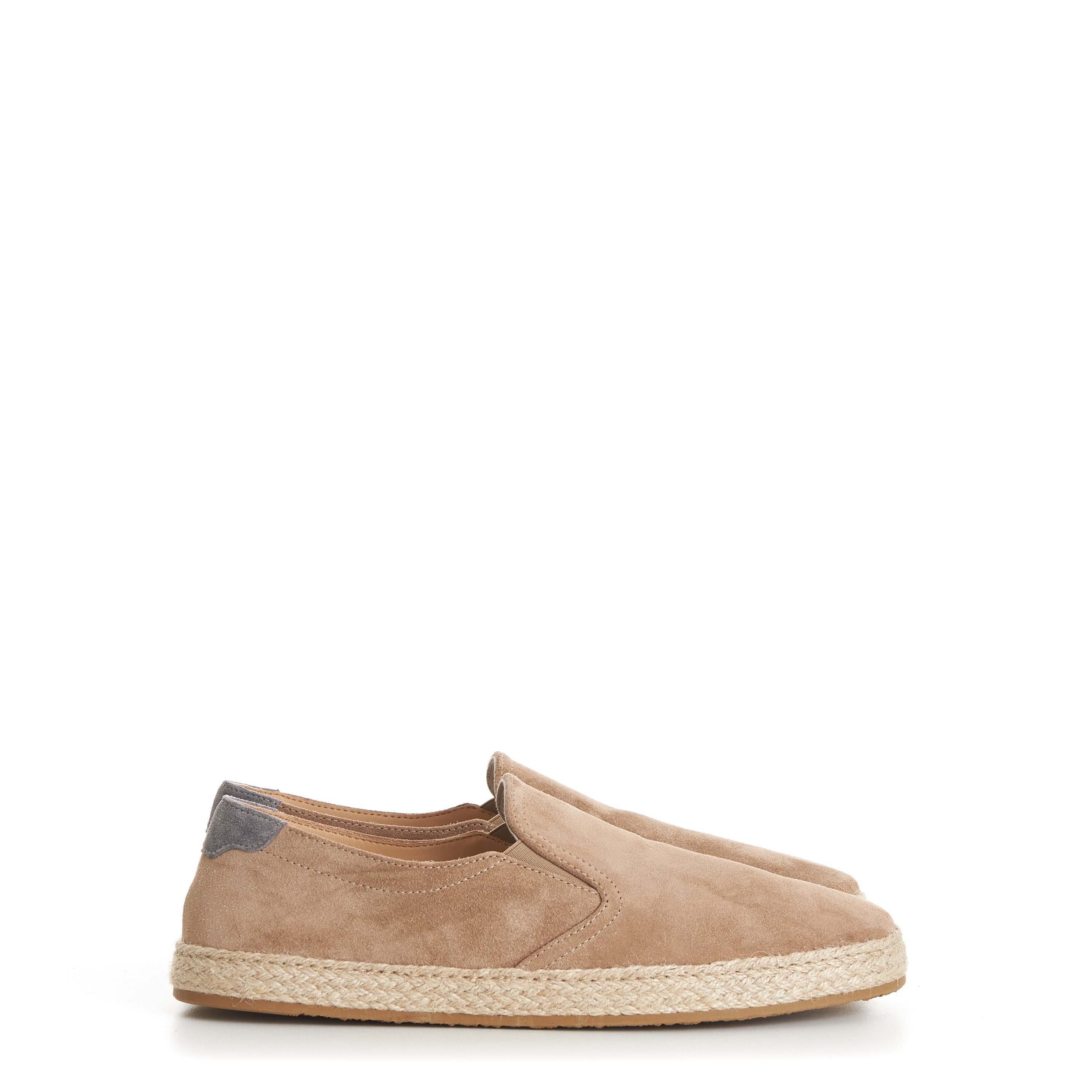 Refined, summery materials come together to enrich the casual style of these slip-on shoes. The combination of the suede used for the upper and the rope insert on the bottom creates a sophisticated material contrast reminiscent of classic espadrilles, com