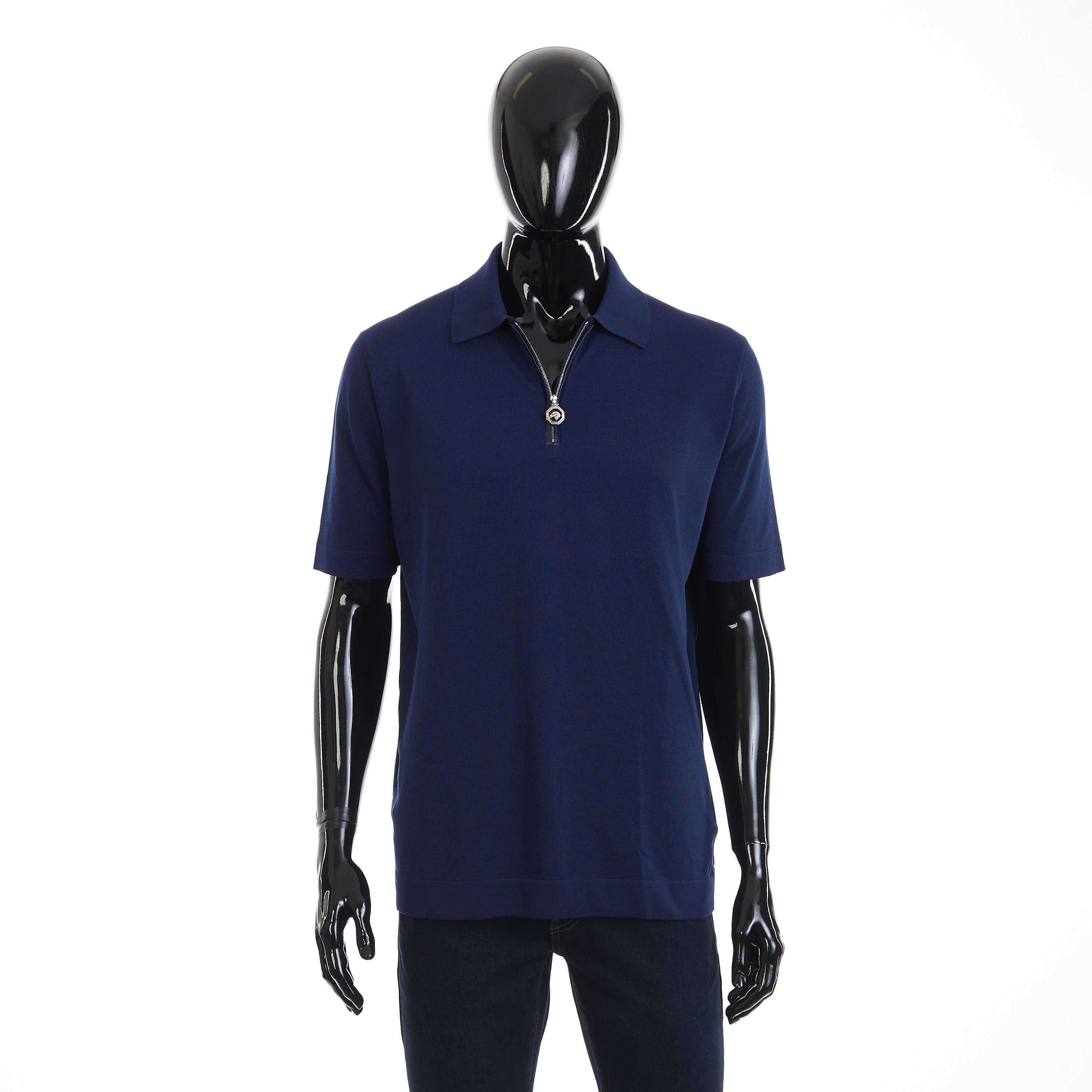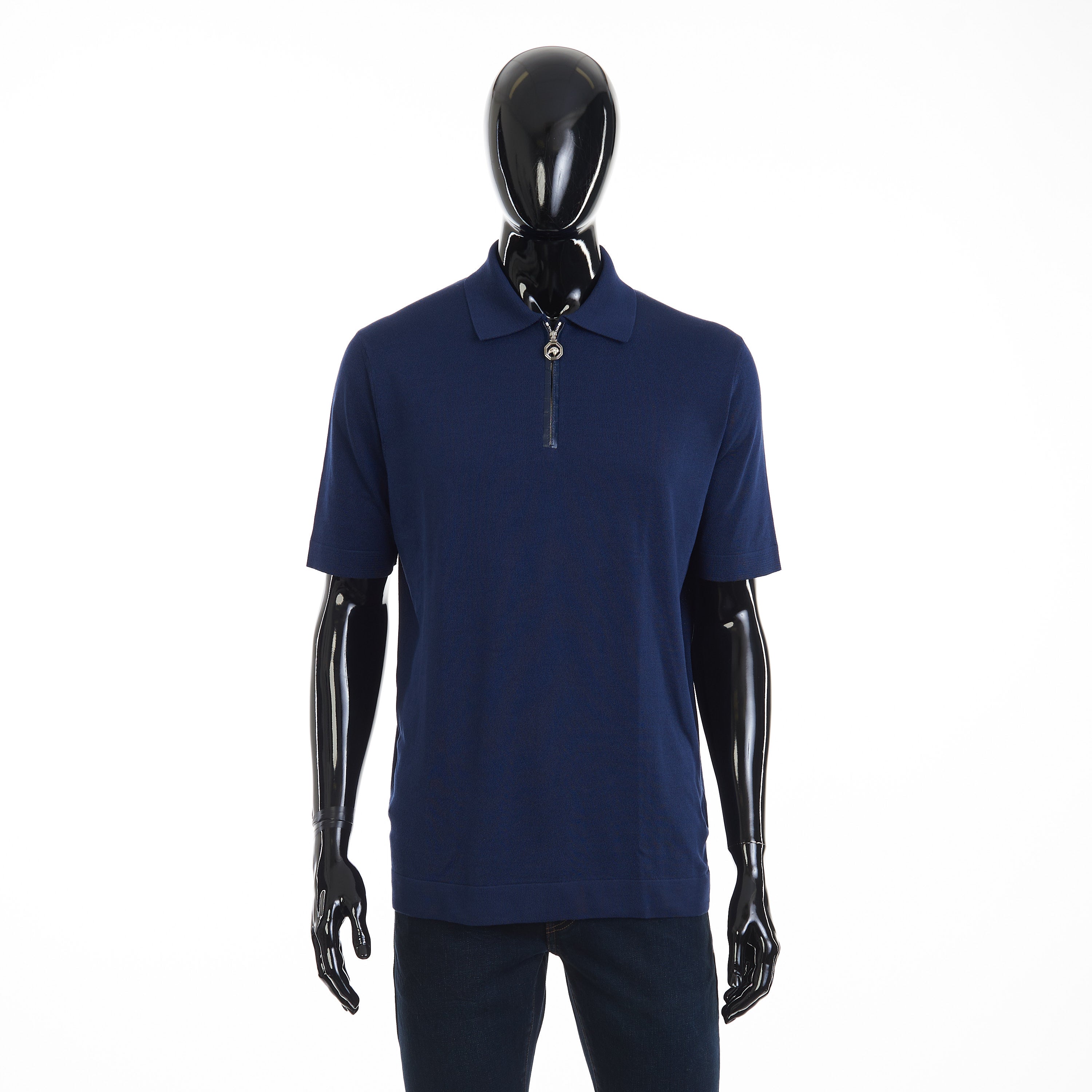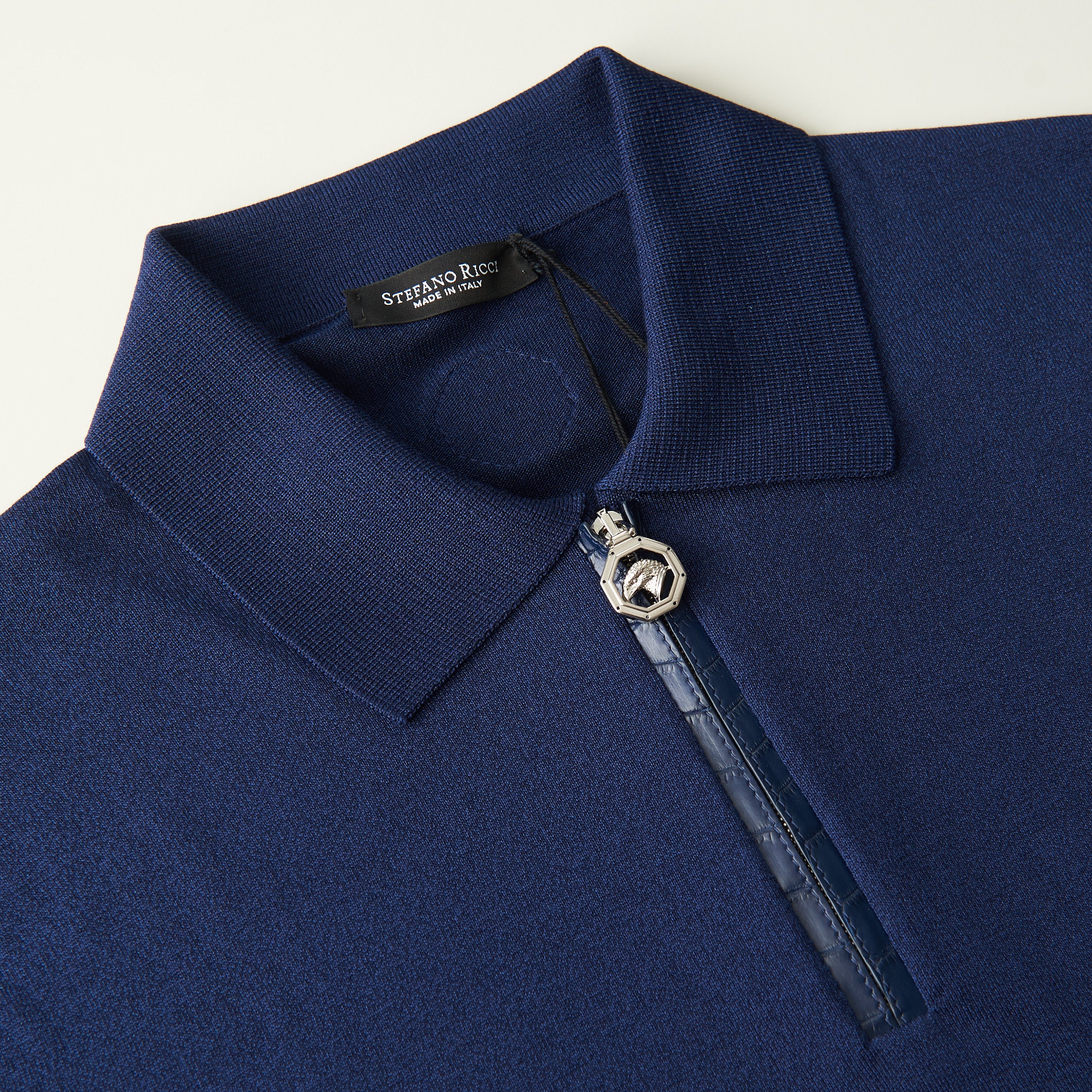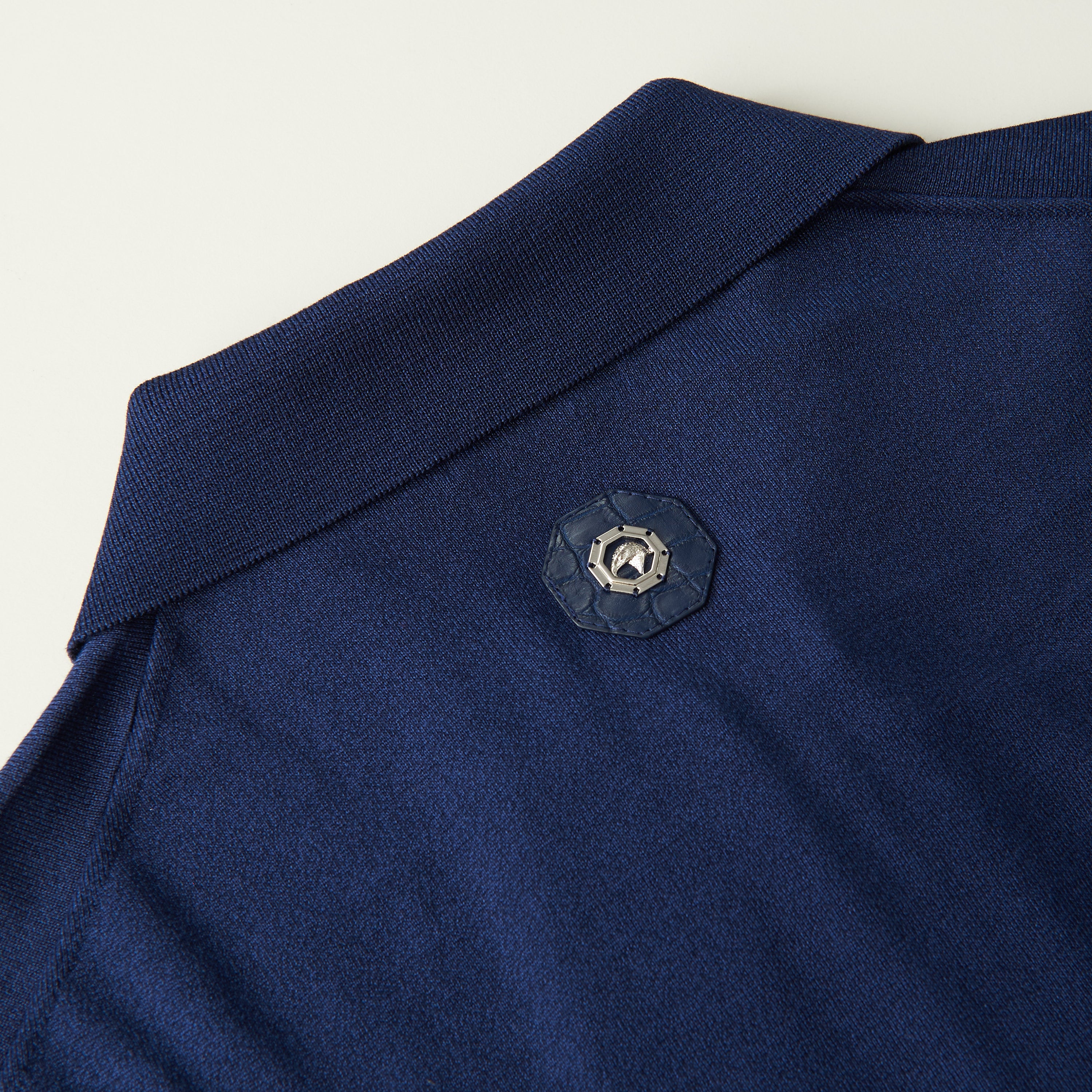 Designating divine appeal into casual wear, SR offers this cotton and silk blend zip polo shirt. Embellished with exclusive crocodile leather inserts and the iconic eagle head in precious metal galvanised hardware, this polo will add a refined edge to any