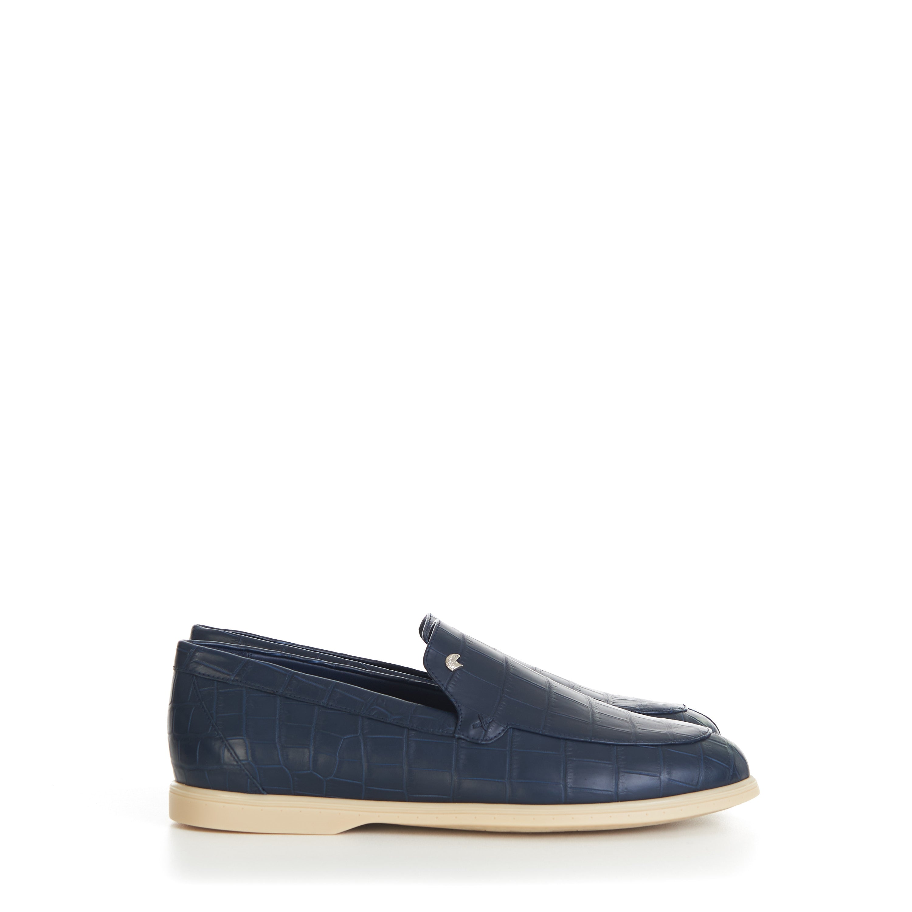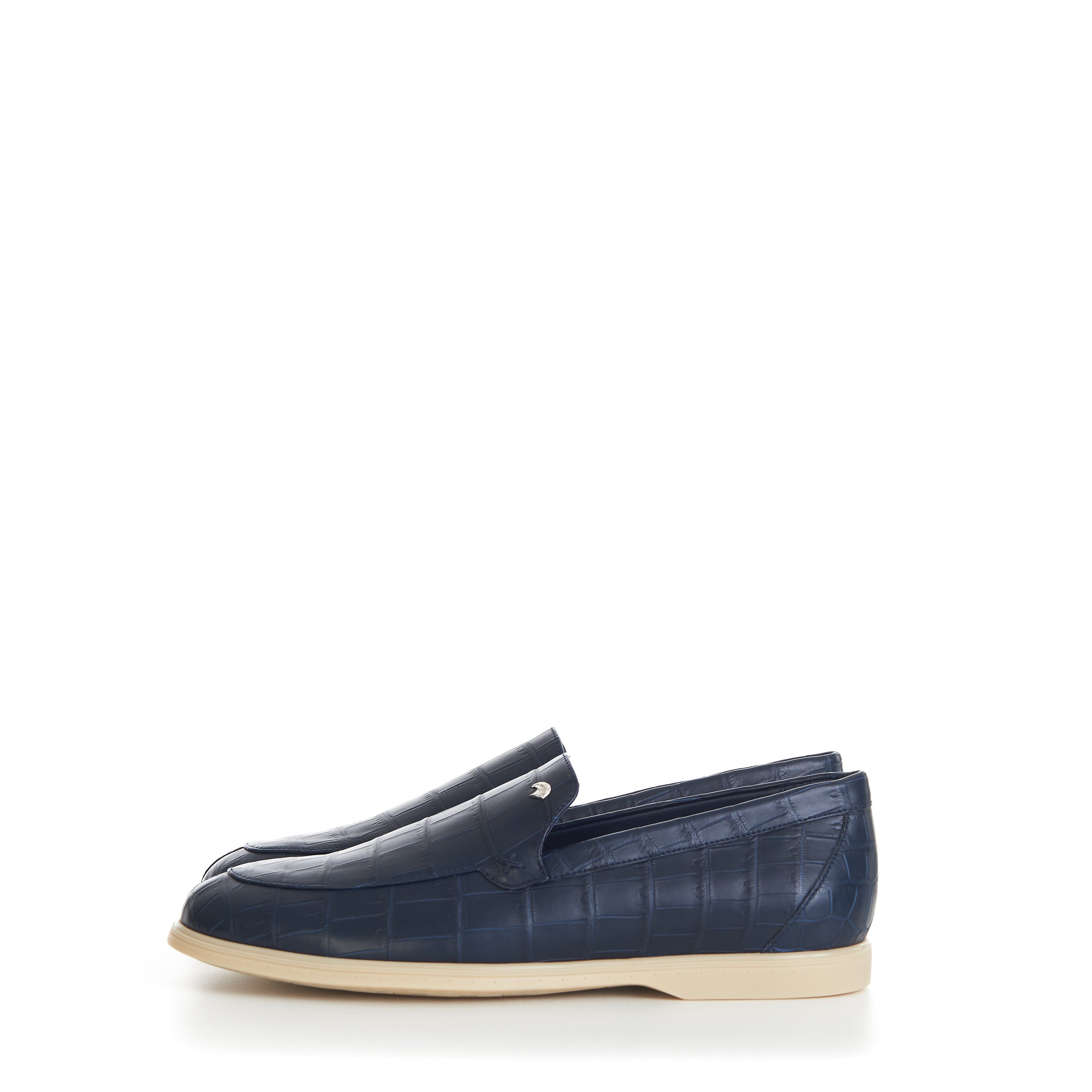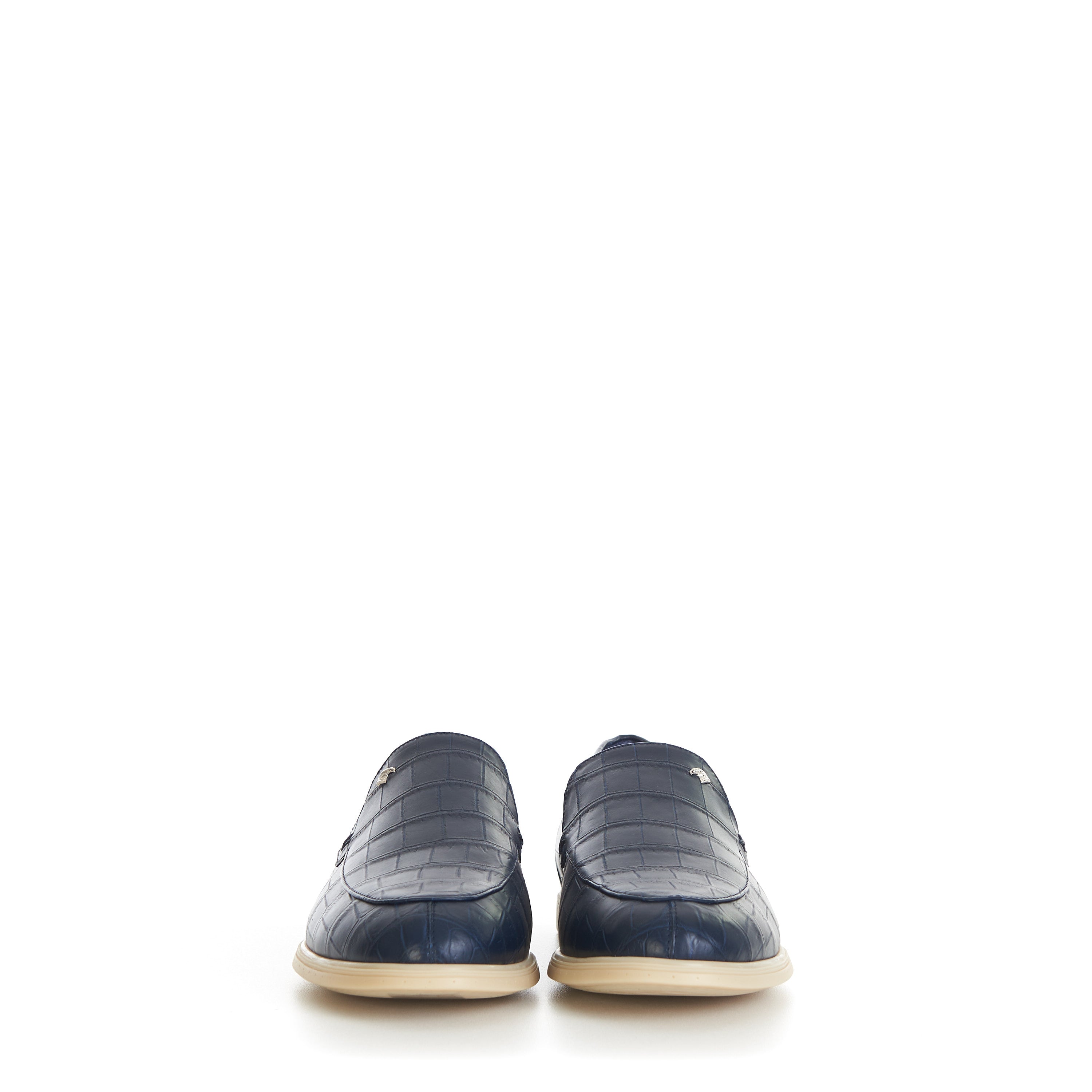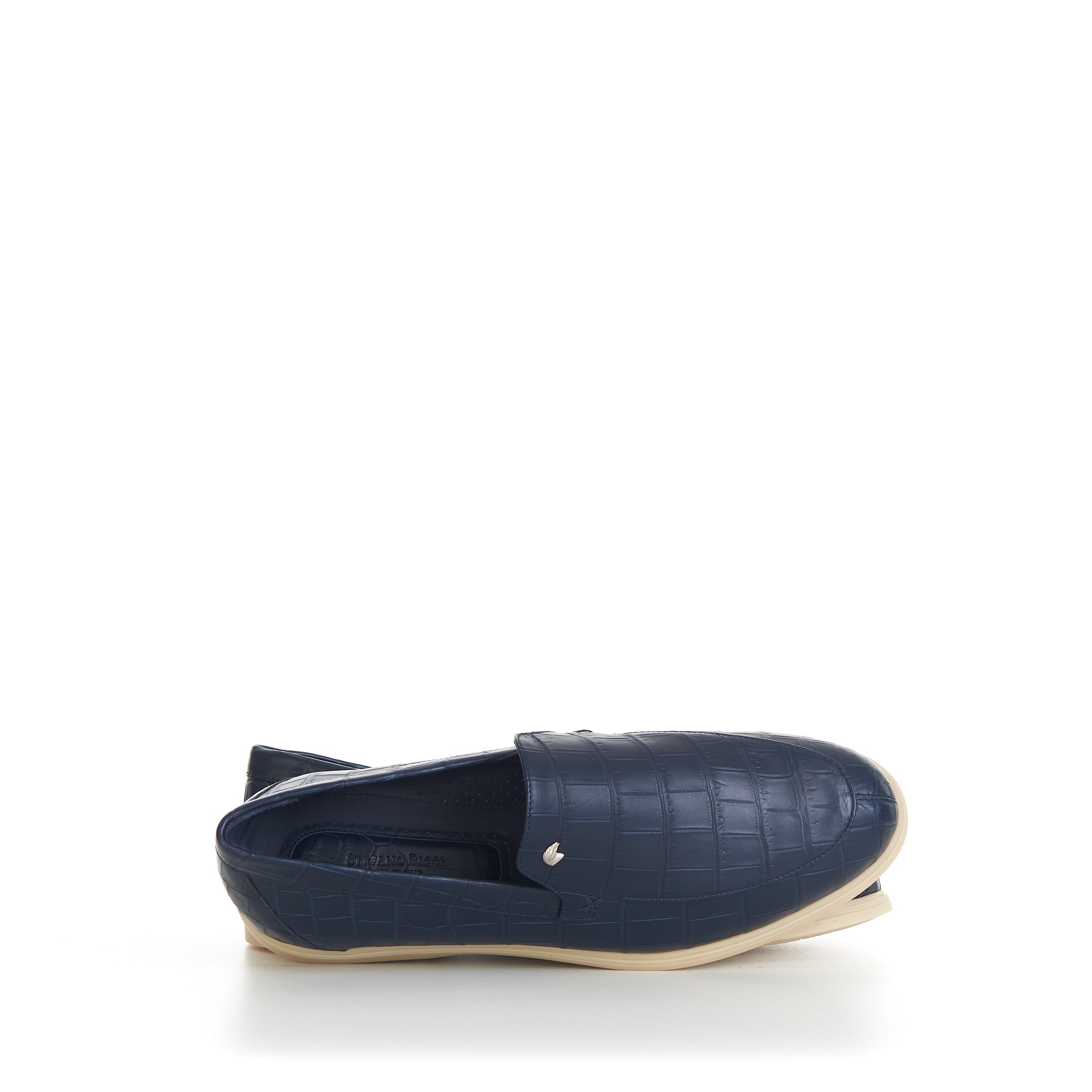 Informing the footwear collections of discerning gentlemen, sr unites craftsmanship and contemporary sophistication with these matted crocodile leather loafers. The traditional style is updated with a comfort rubber sole and the iconic eagle head motif in