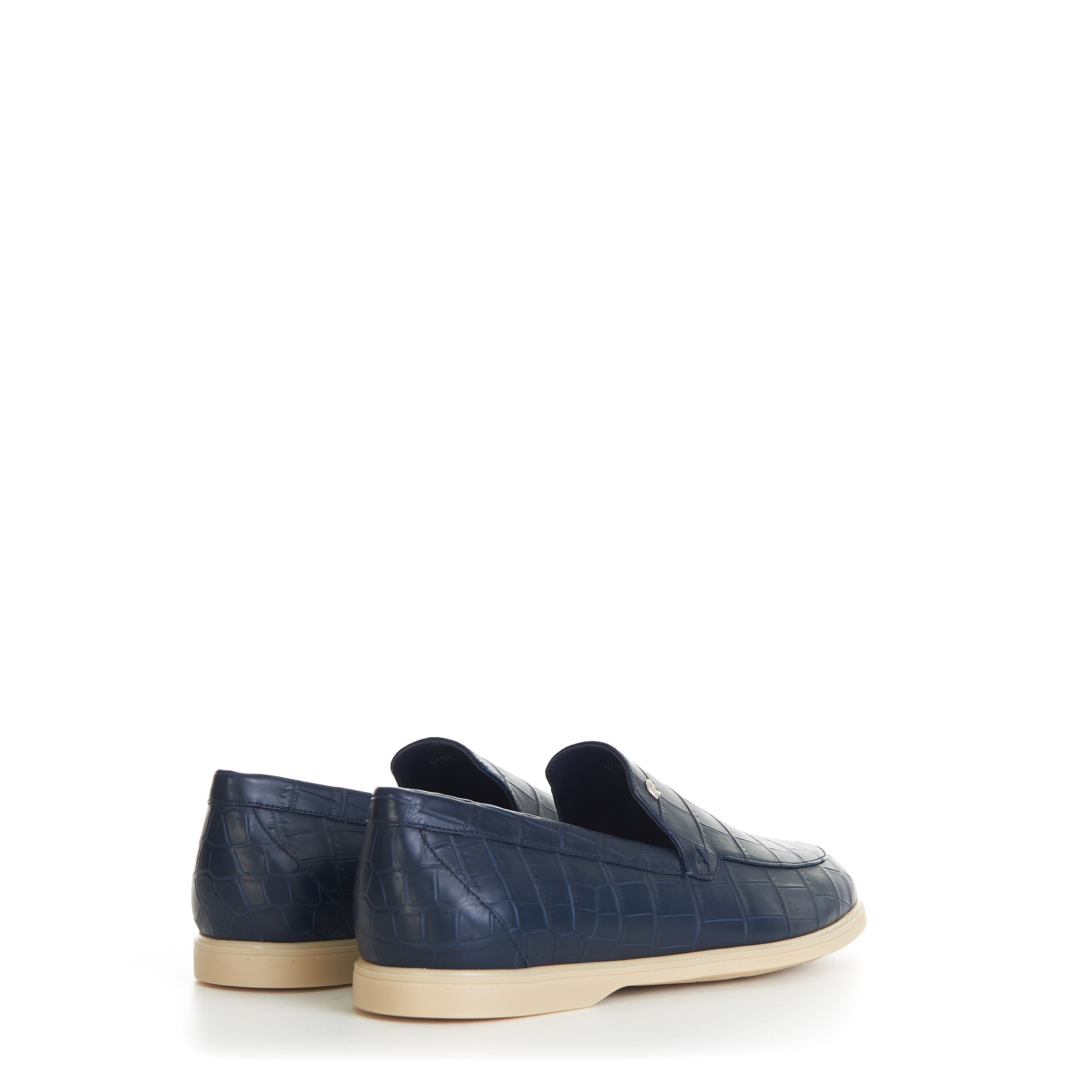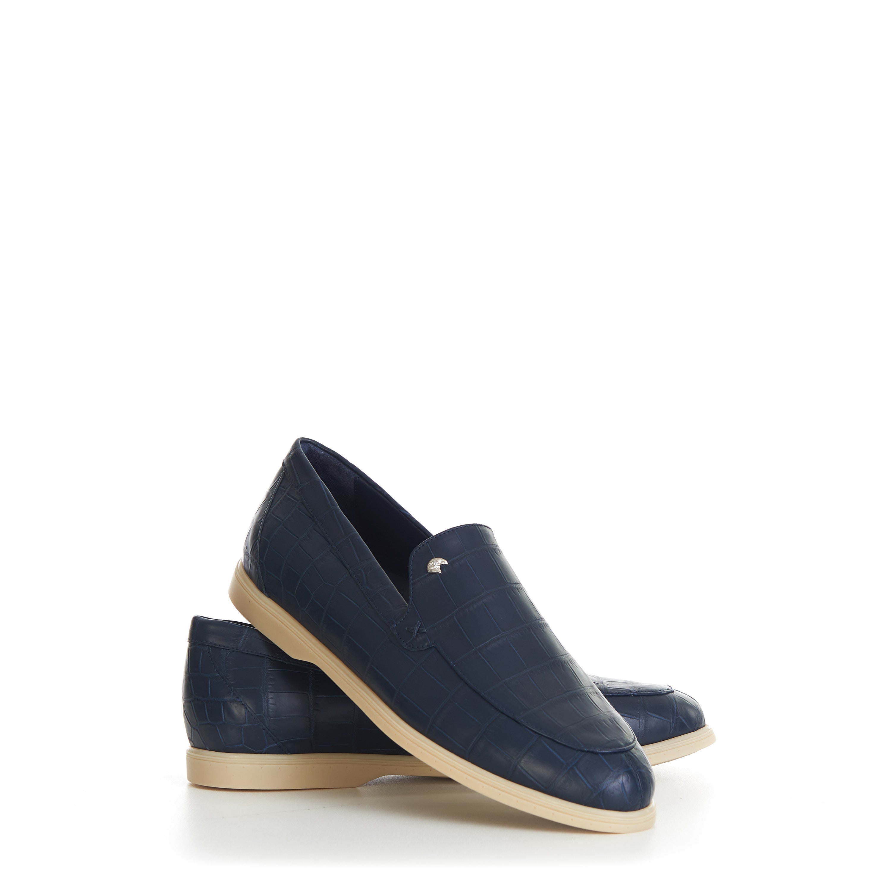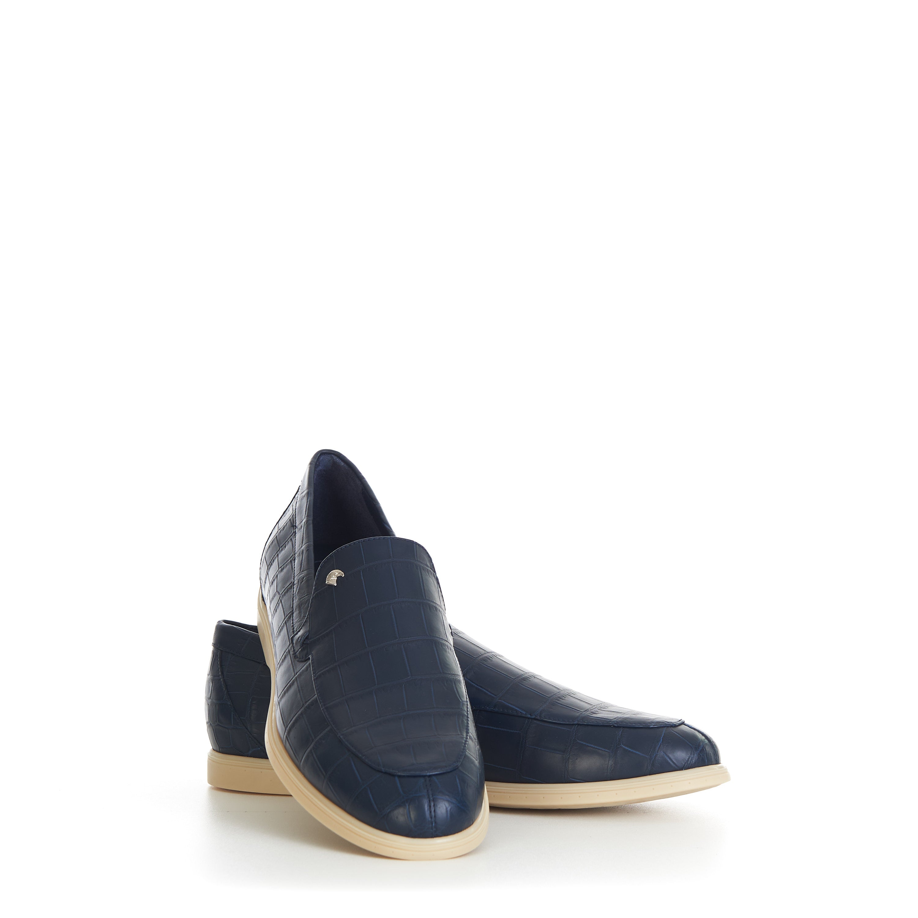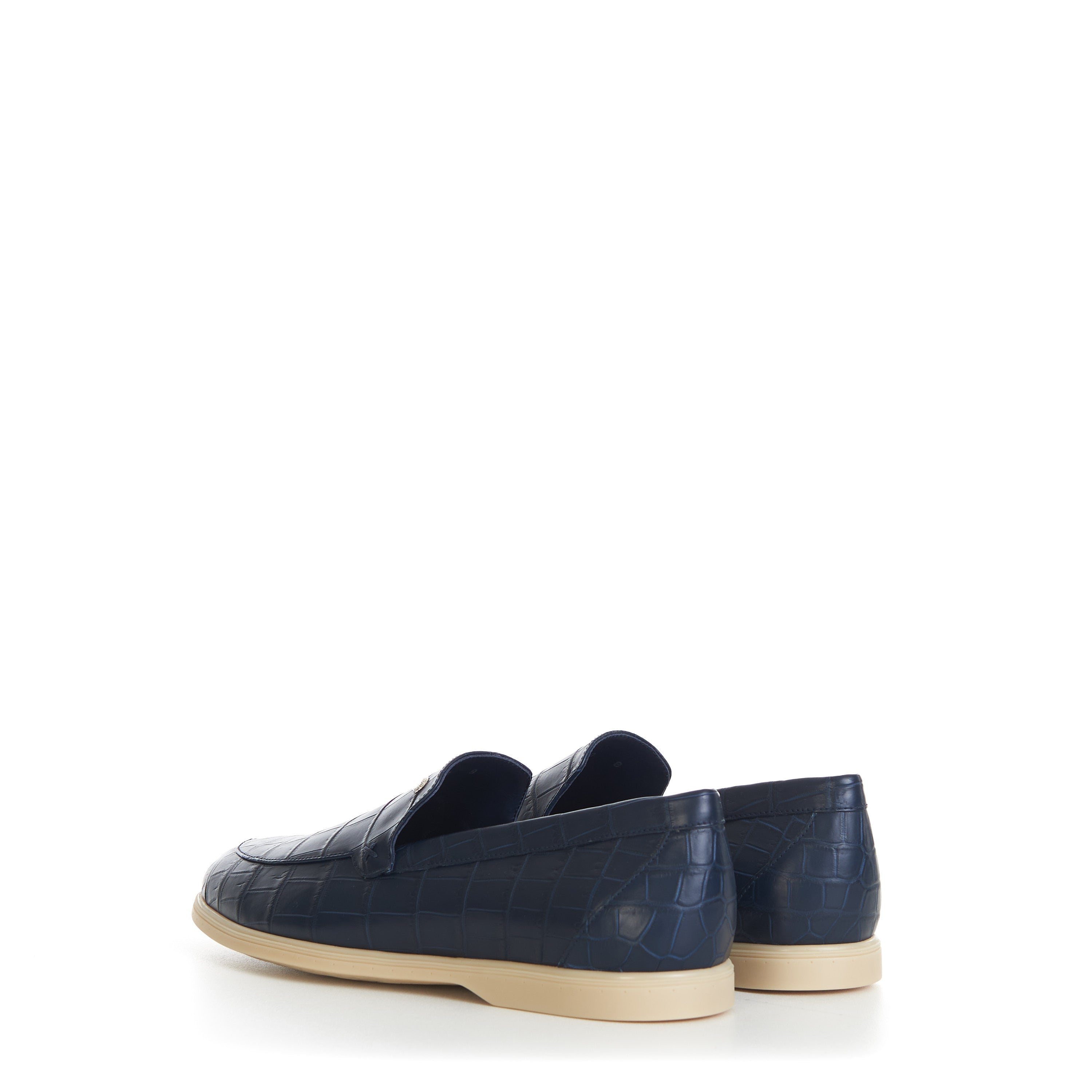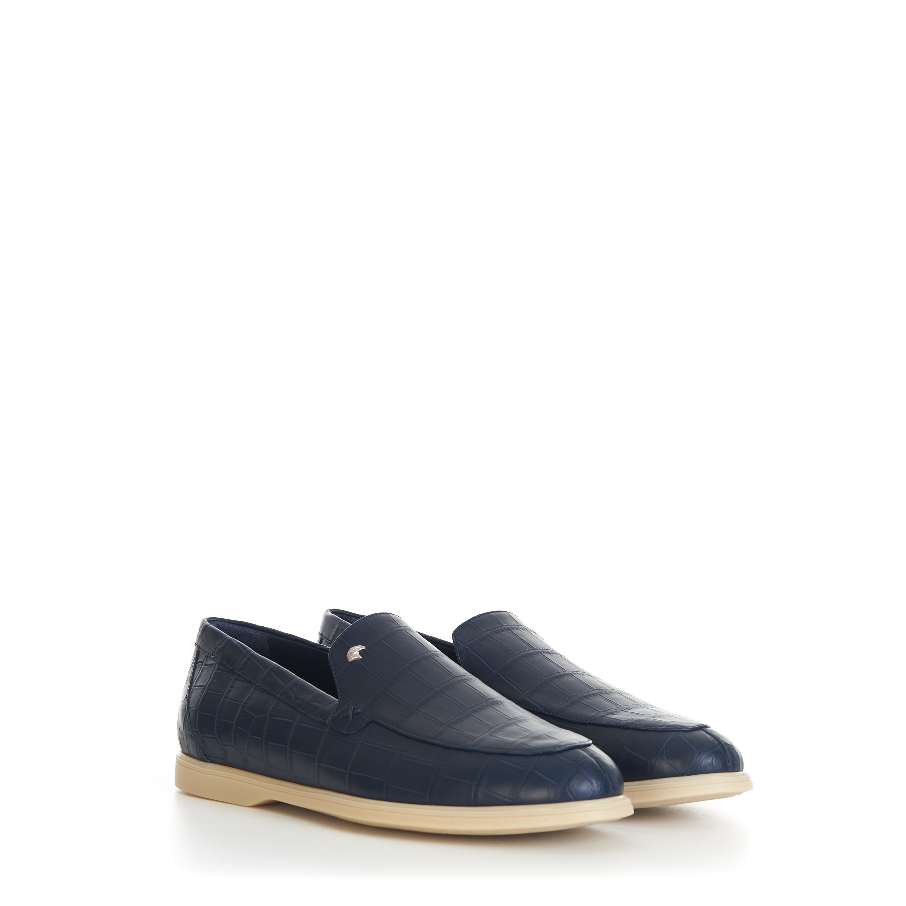 Informing the footwear collections of discerning gentlemen, sr unites craftsmanship and contemporary sophistication with these matted crocodile leather loafers. The traditional style is updated with a comfort rubber sole and the iconic eagle head motif in