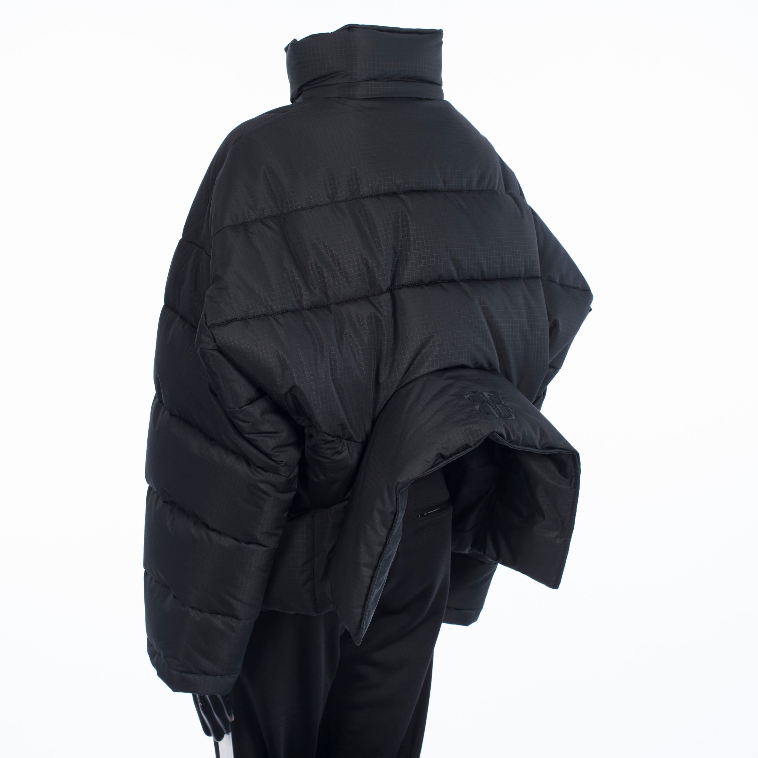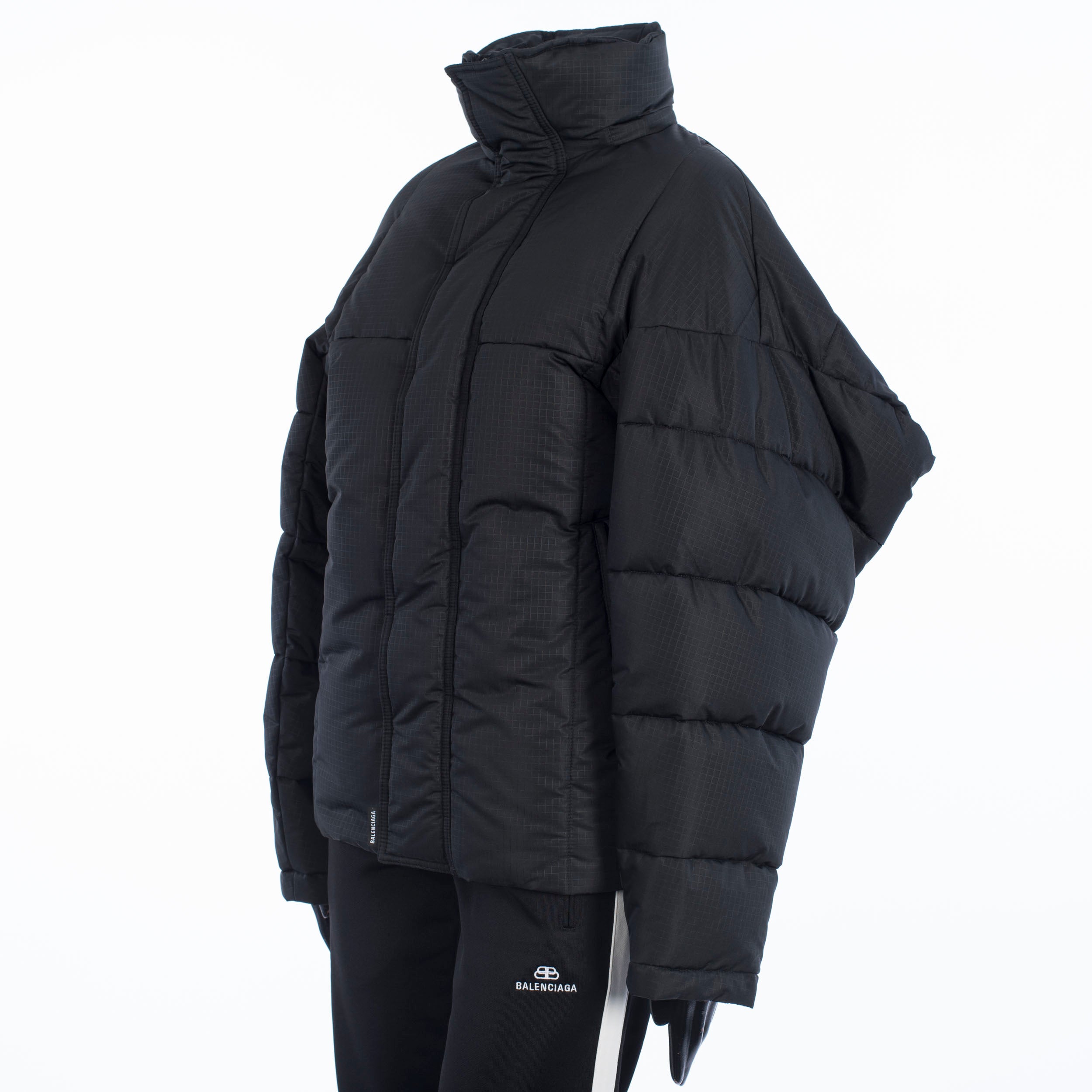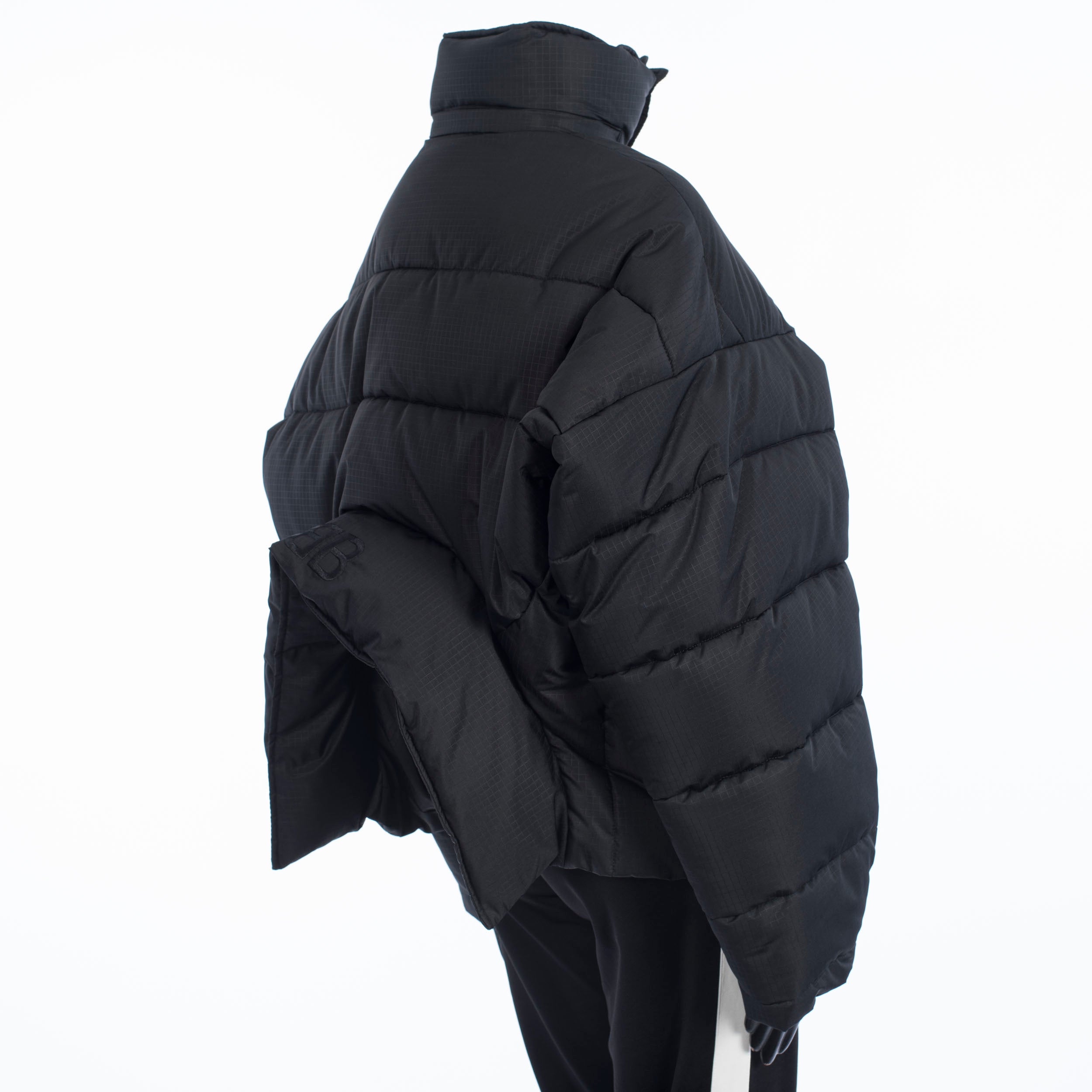 Upside Down jacket in technical nylon with hexagonal volume on the back designed by Balenciaga.