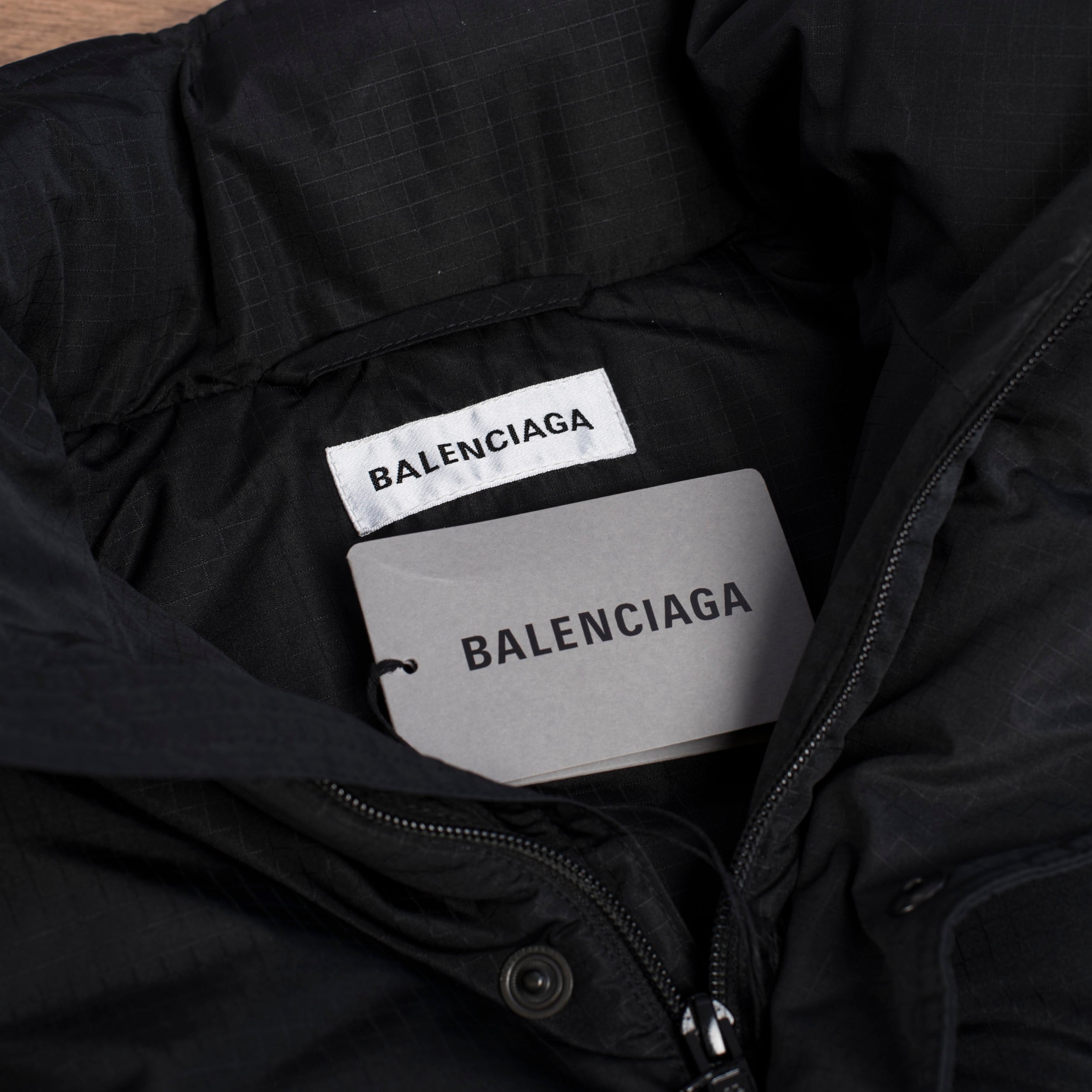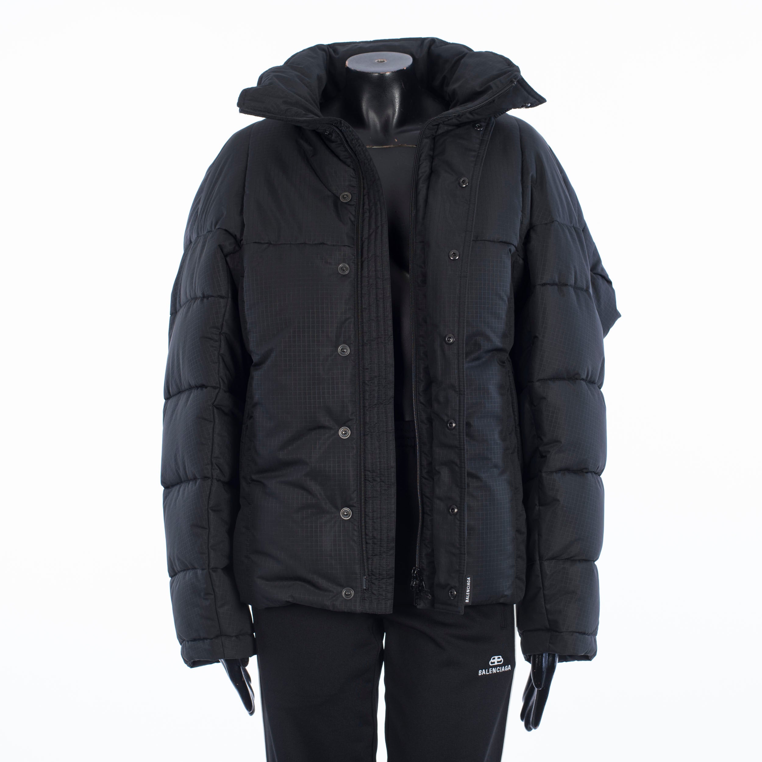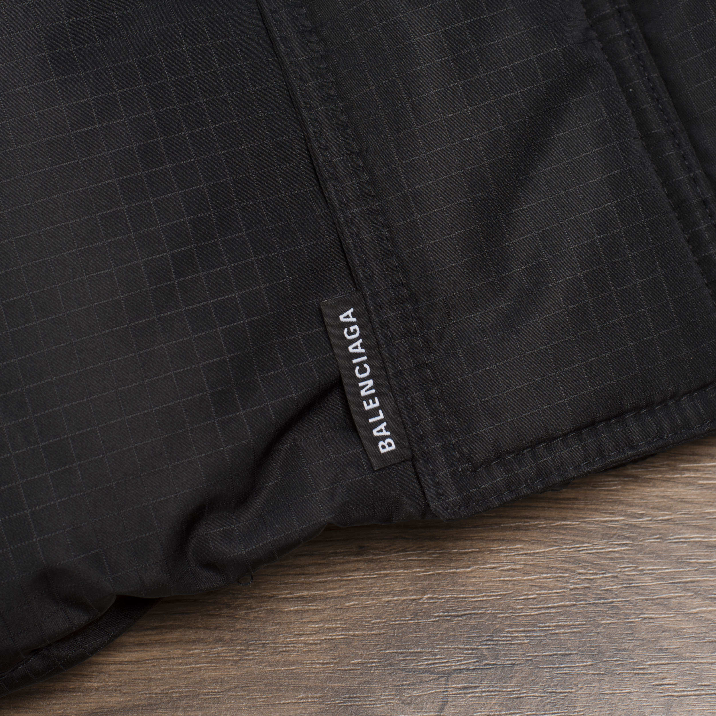 Upside Down jacket in technical nylon with hexagonal volume on the back designed by Balenciaga.