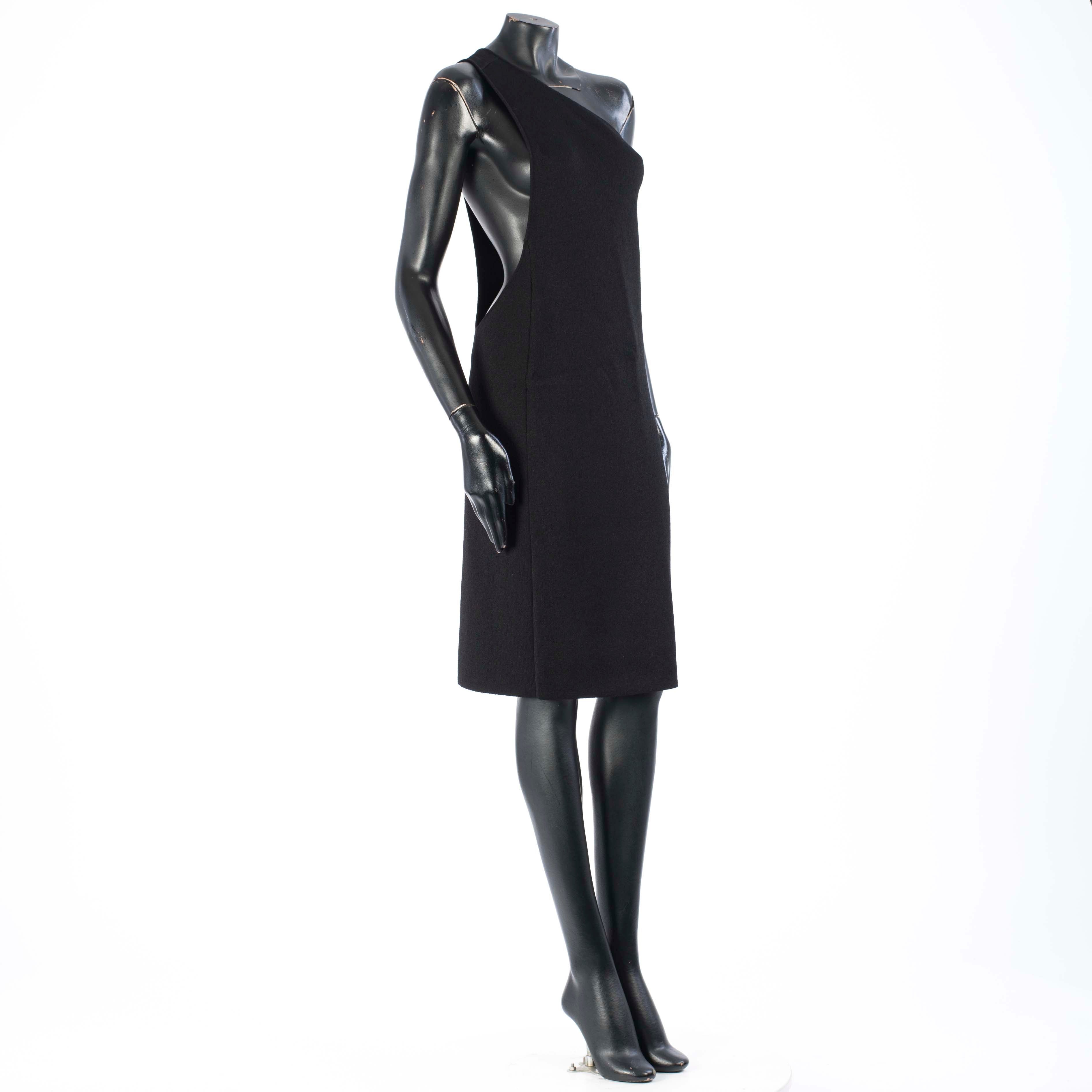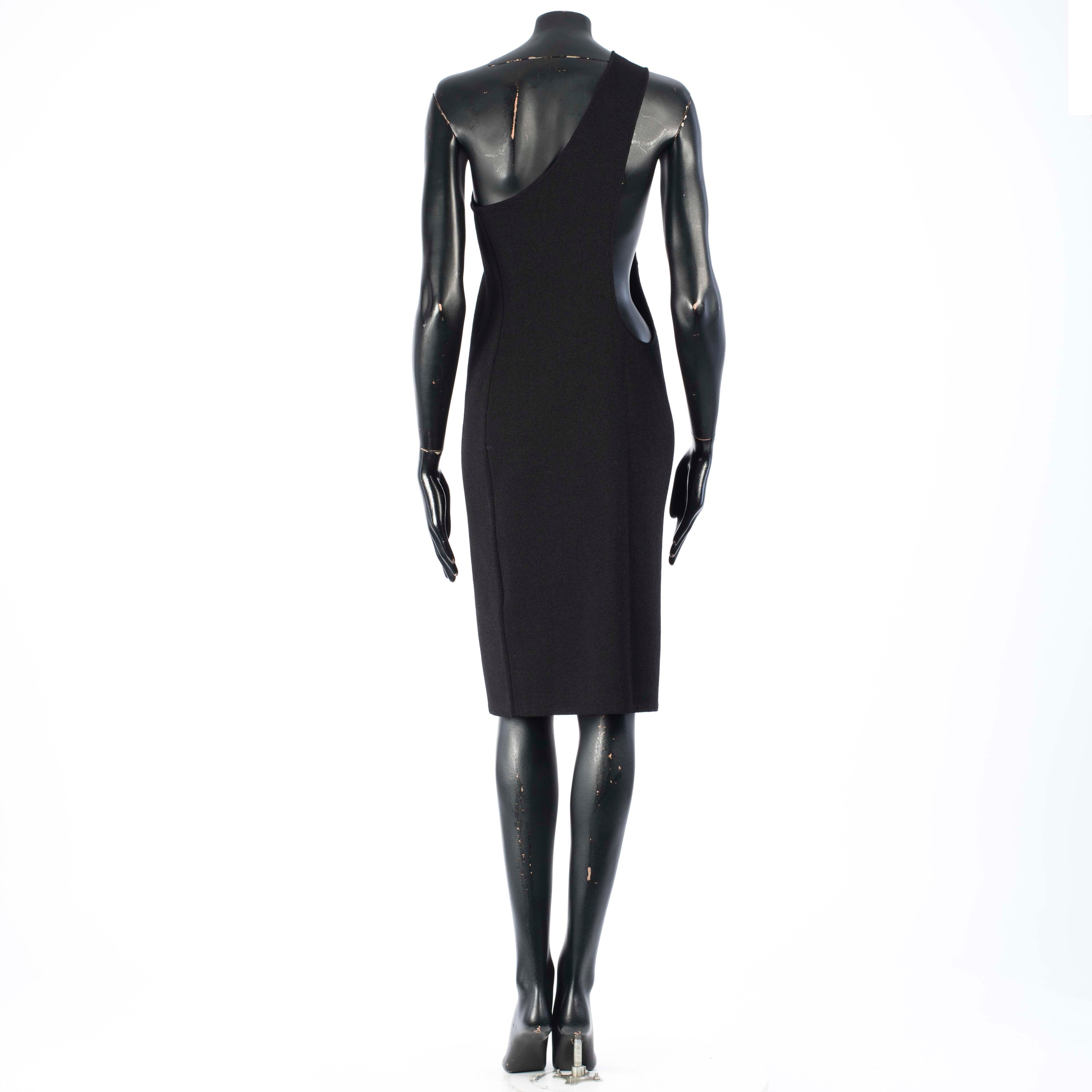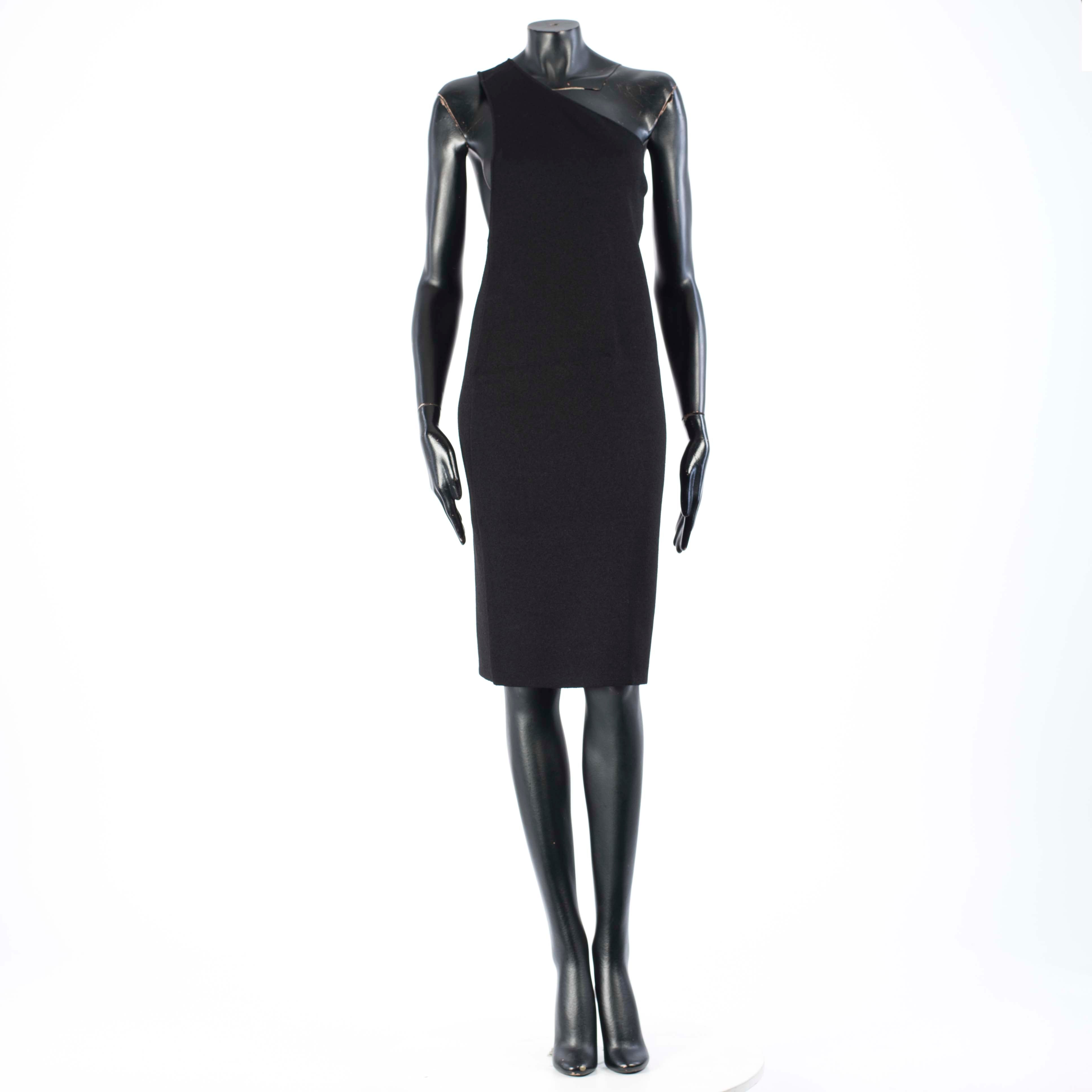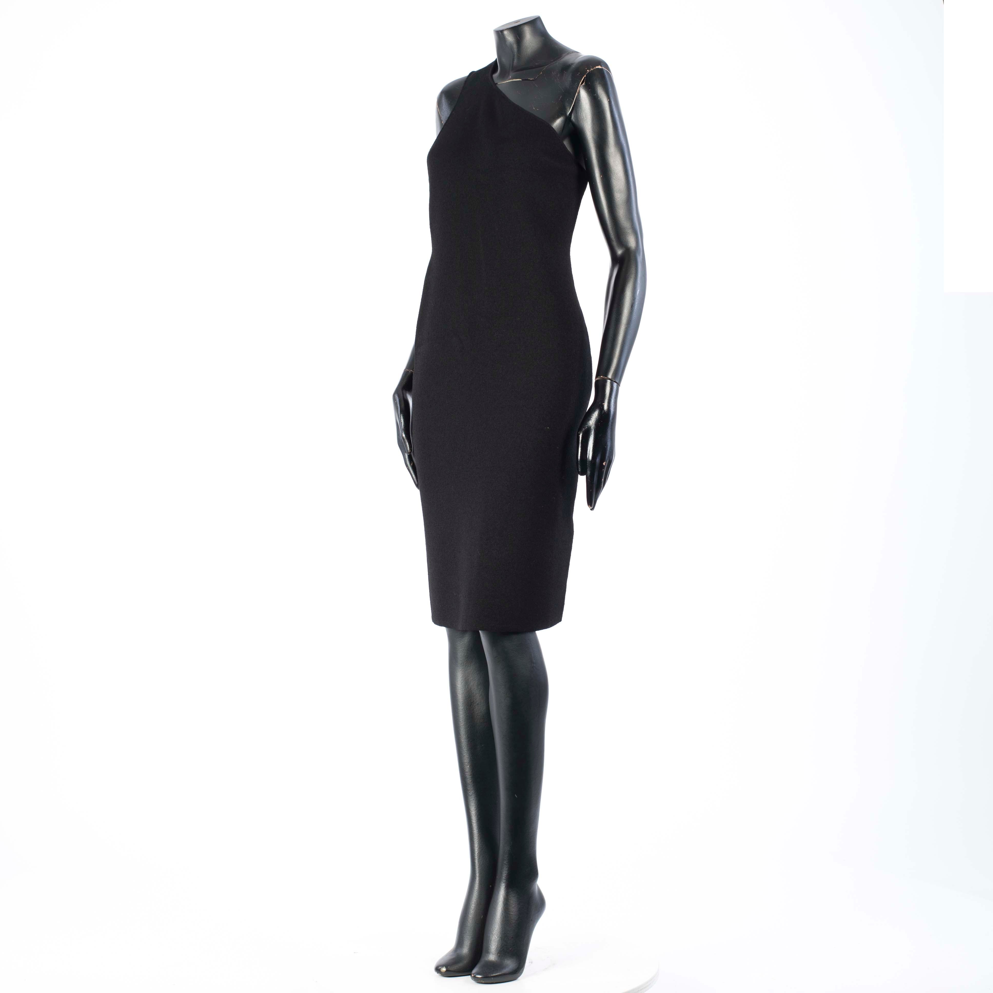 Asymetric One Shoulder Stretch Dress In Black Viscose Blend