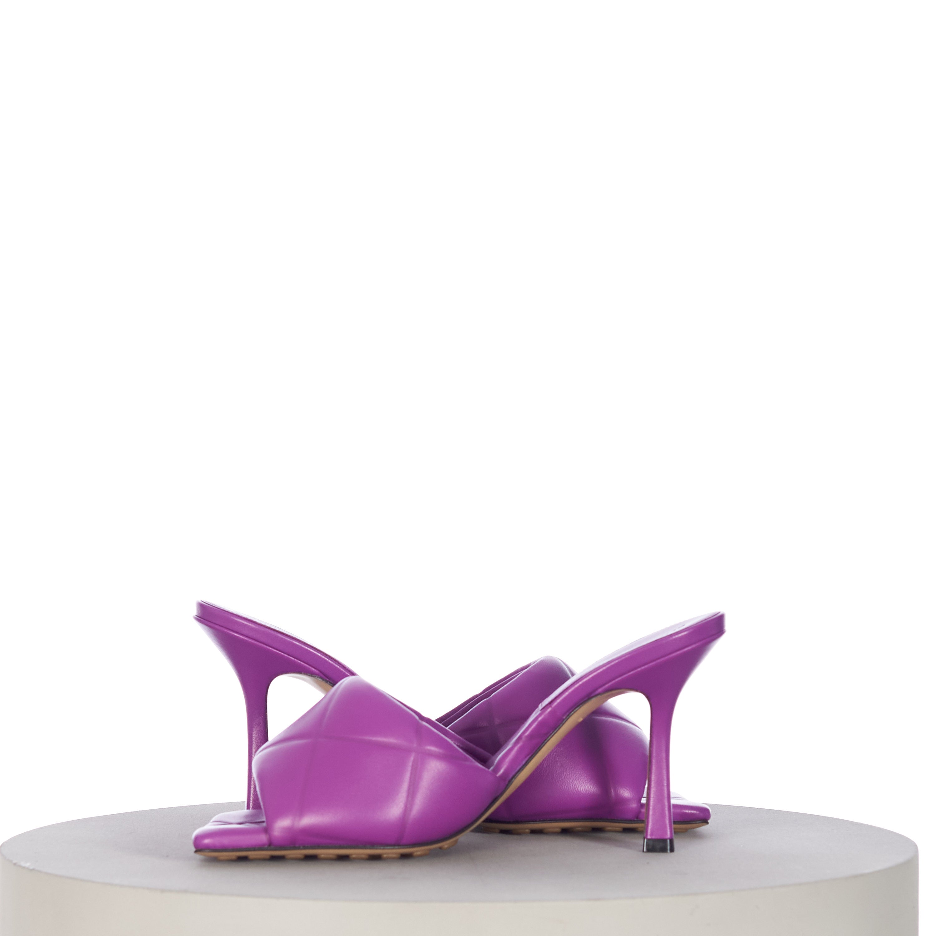 Quilted leather mulesRubber-injected leather outsoleHeel: 9cmMade in ItalyFabric: 100% Lambskin; Lining: LambskinMade in: ItalyModel no.: 639943-VBP30-5031