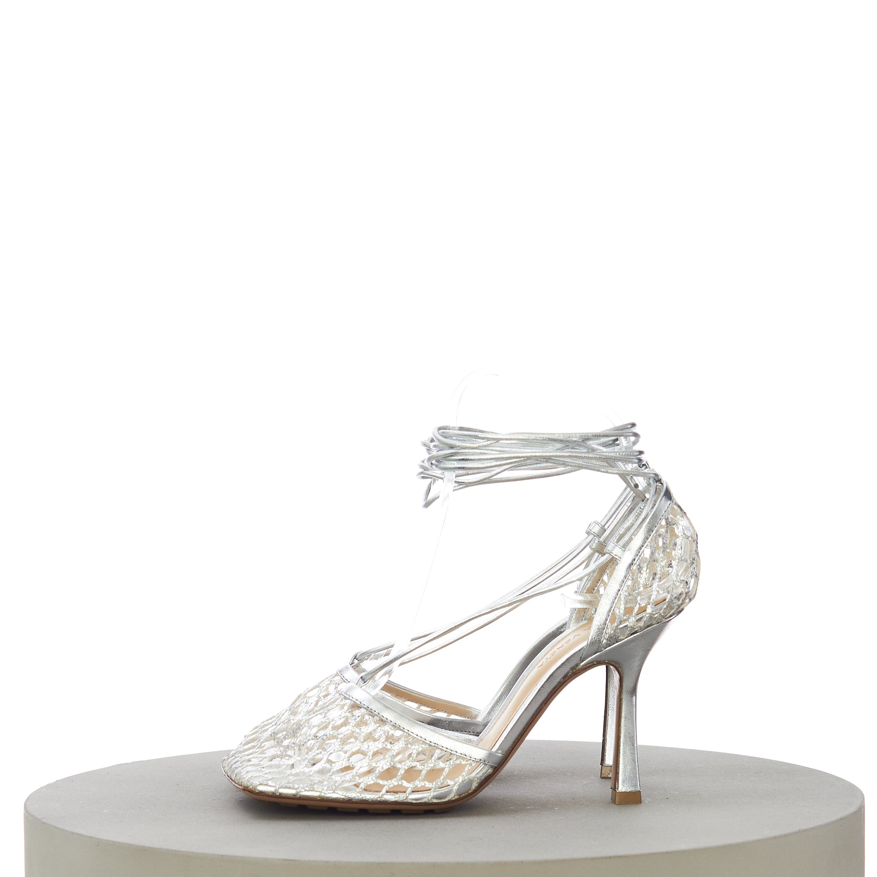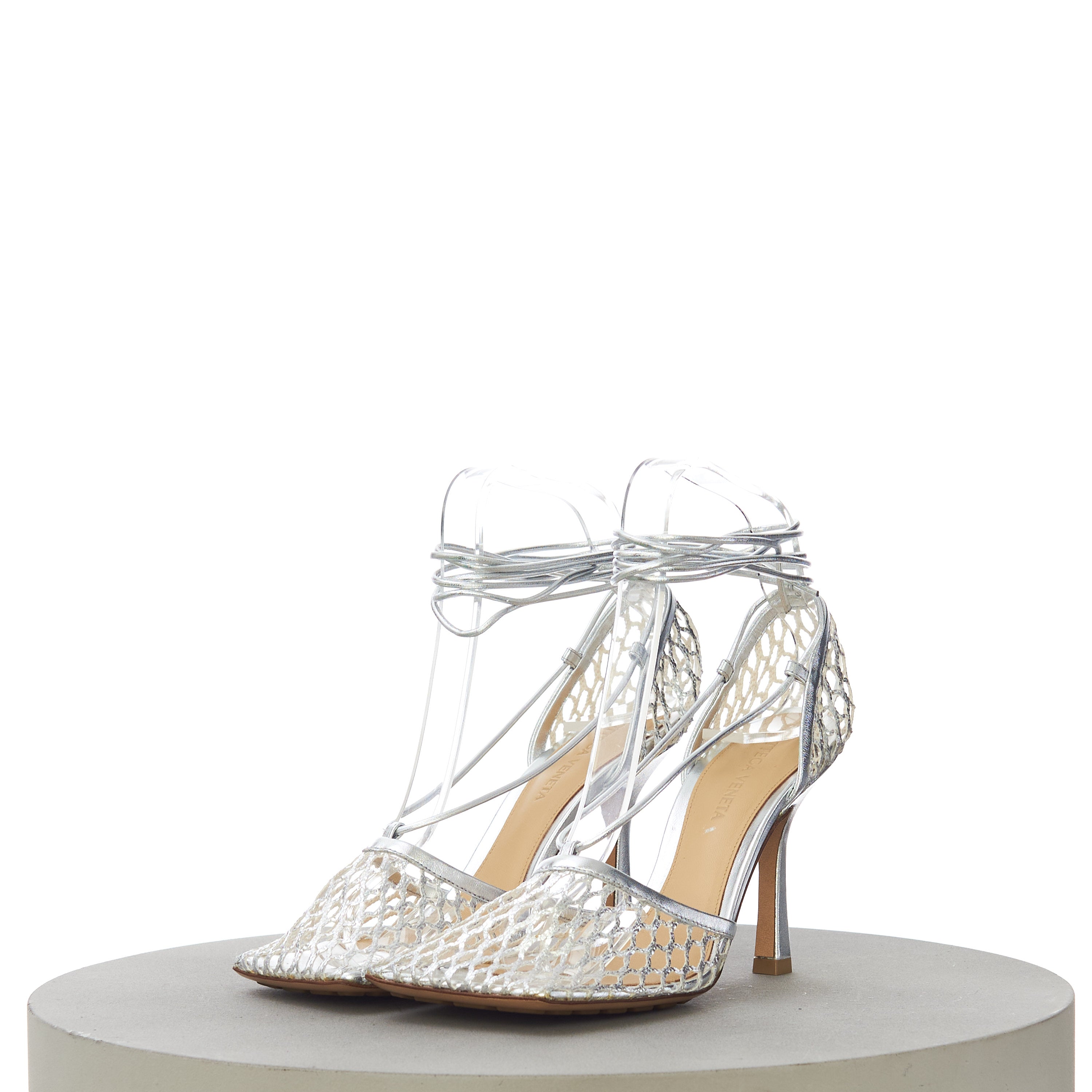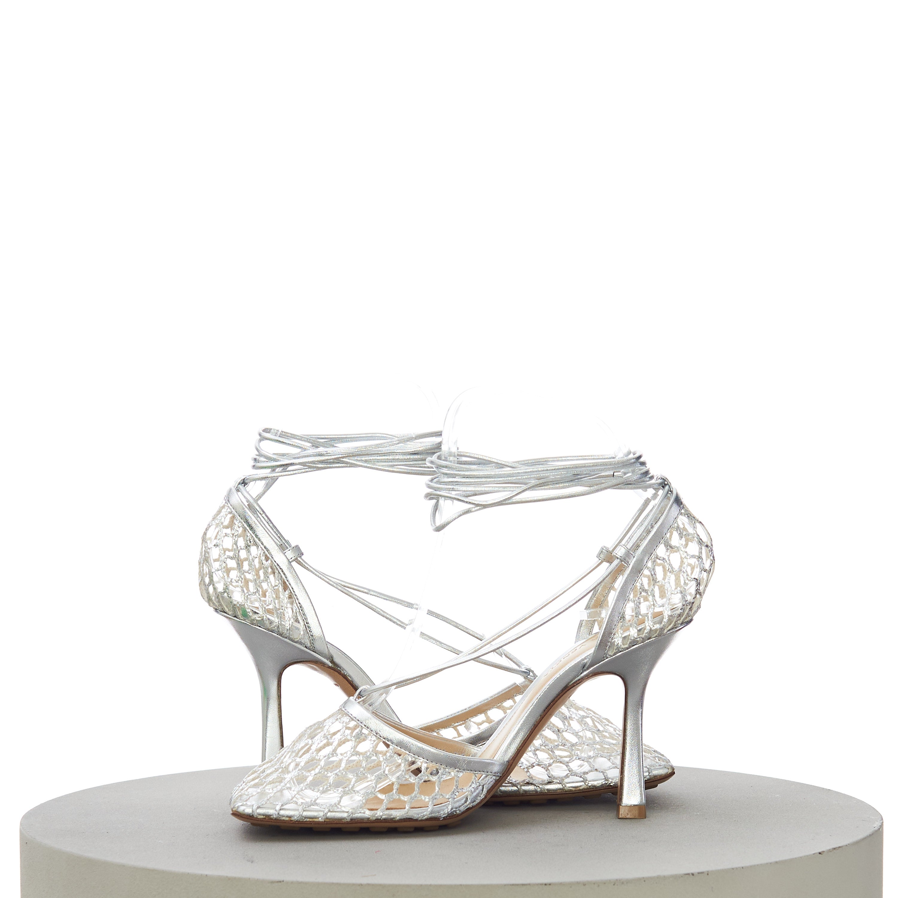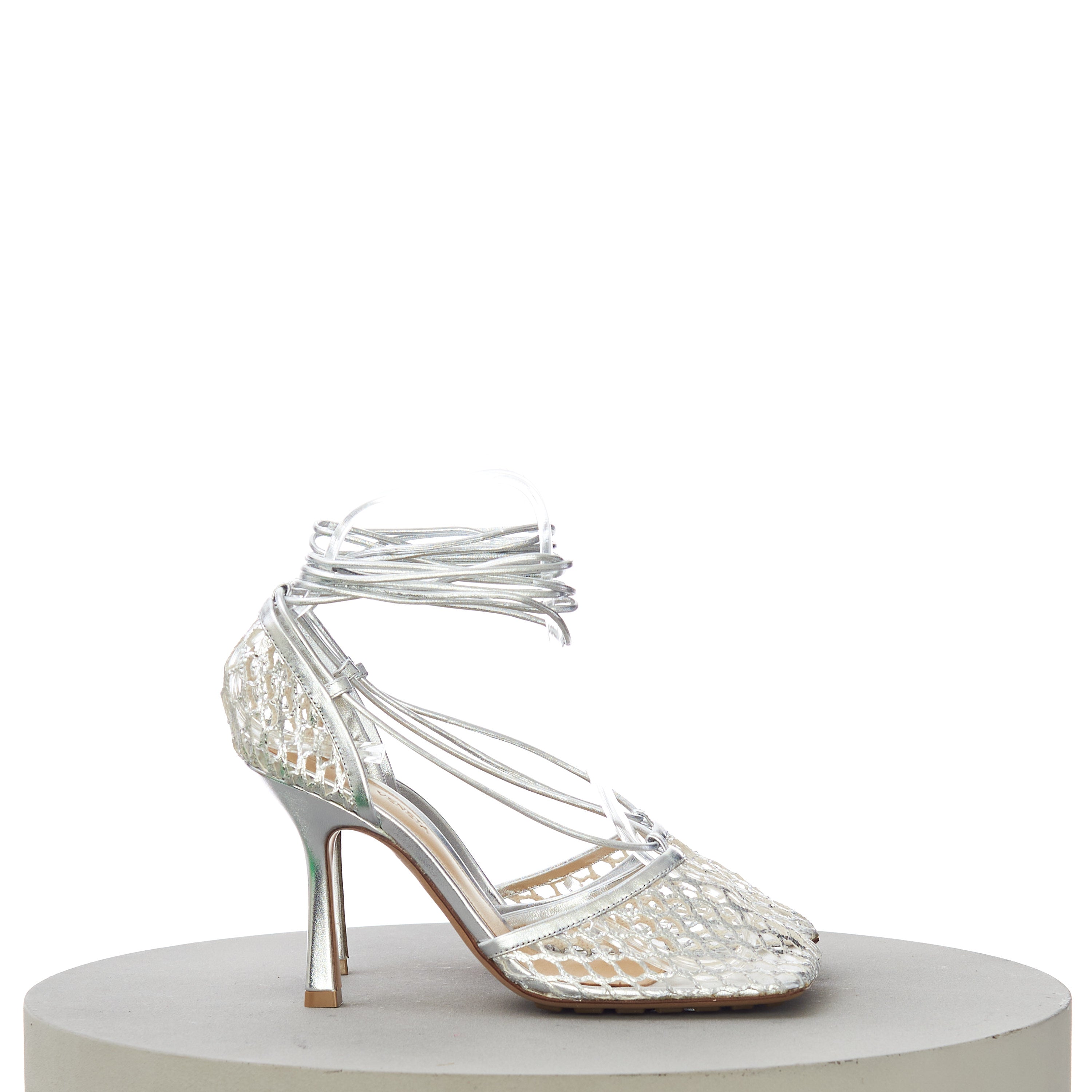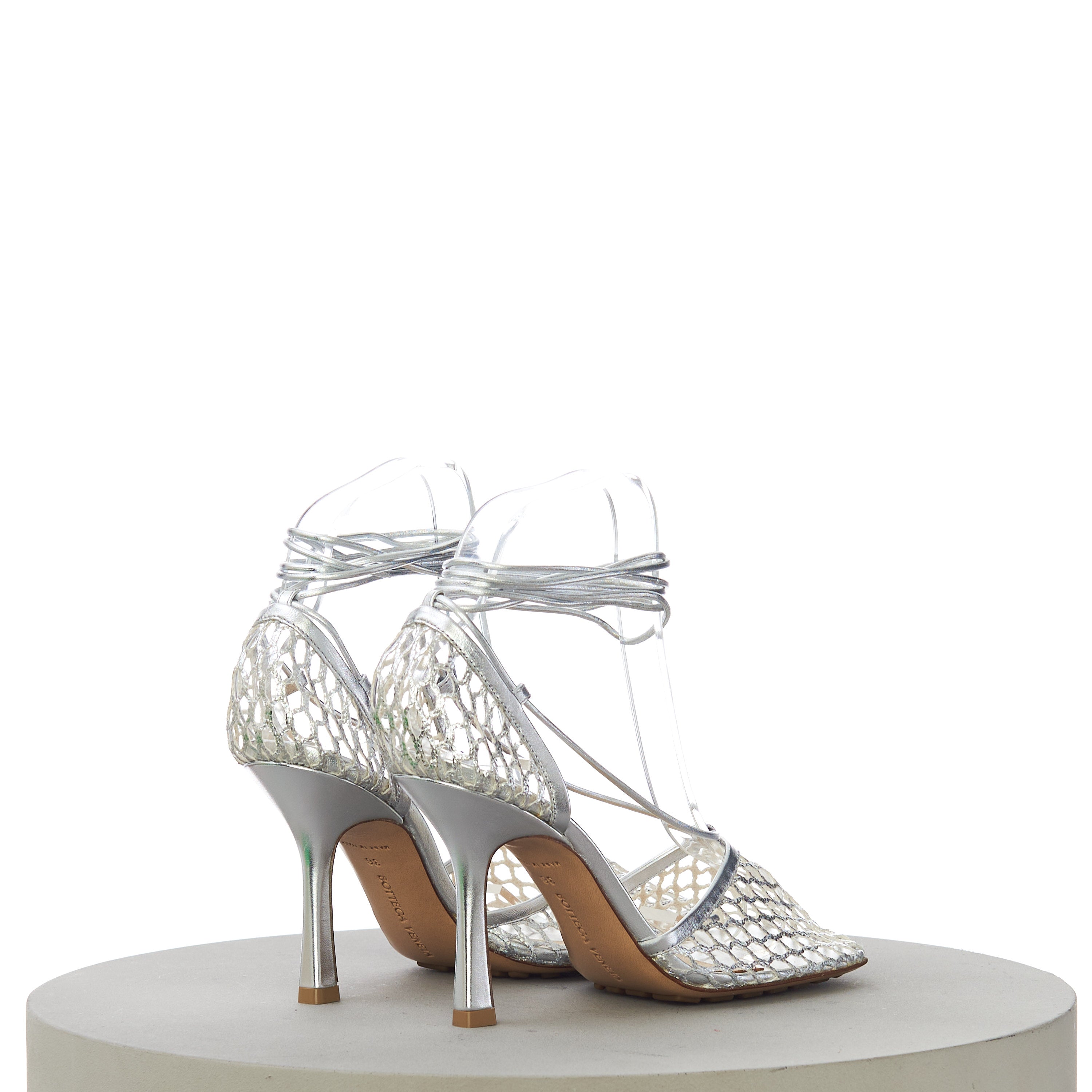 Women's Stretch Sandals In Silver Metallized Mesh & Leather