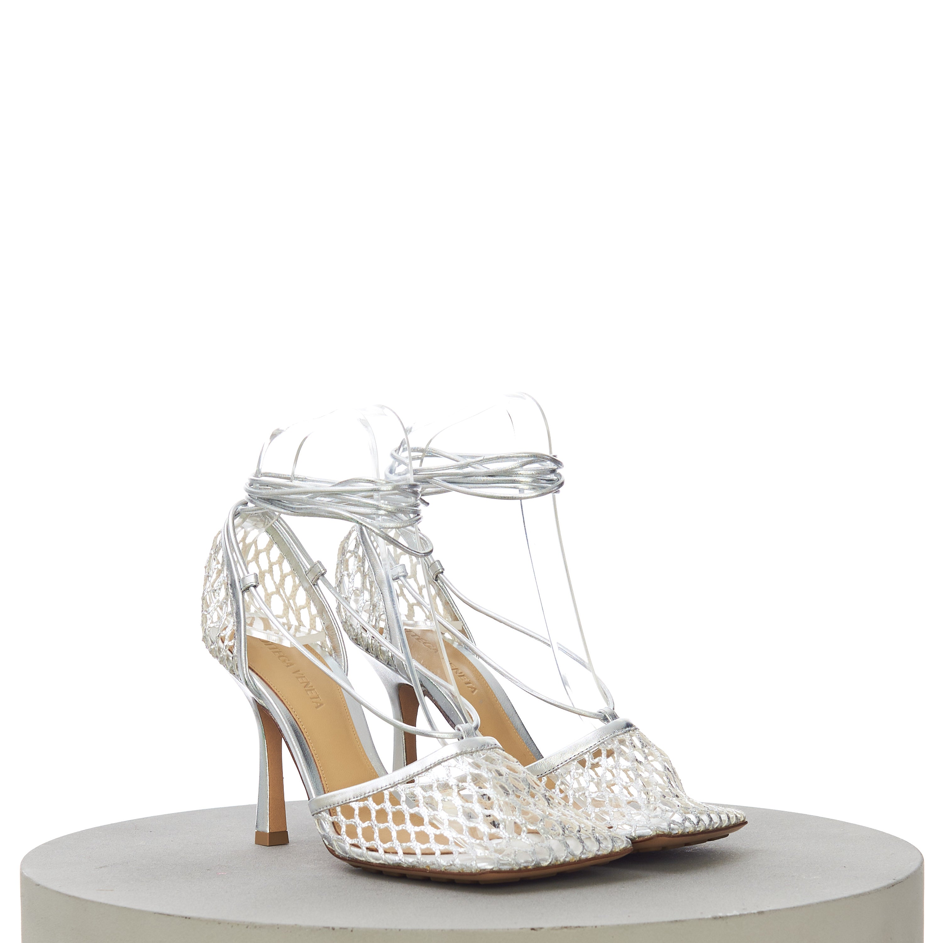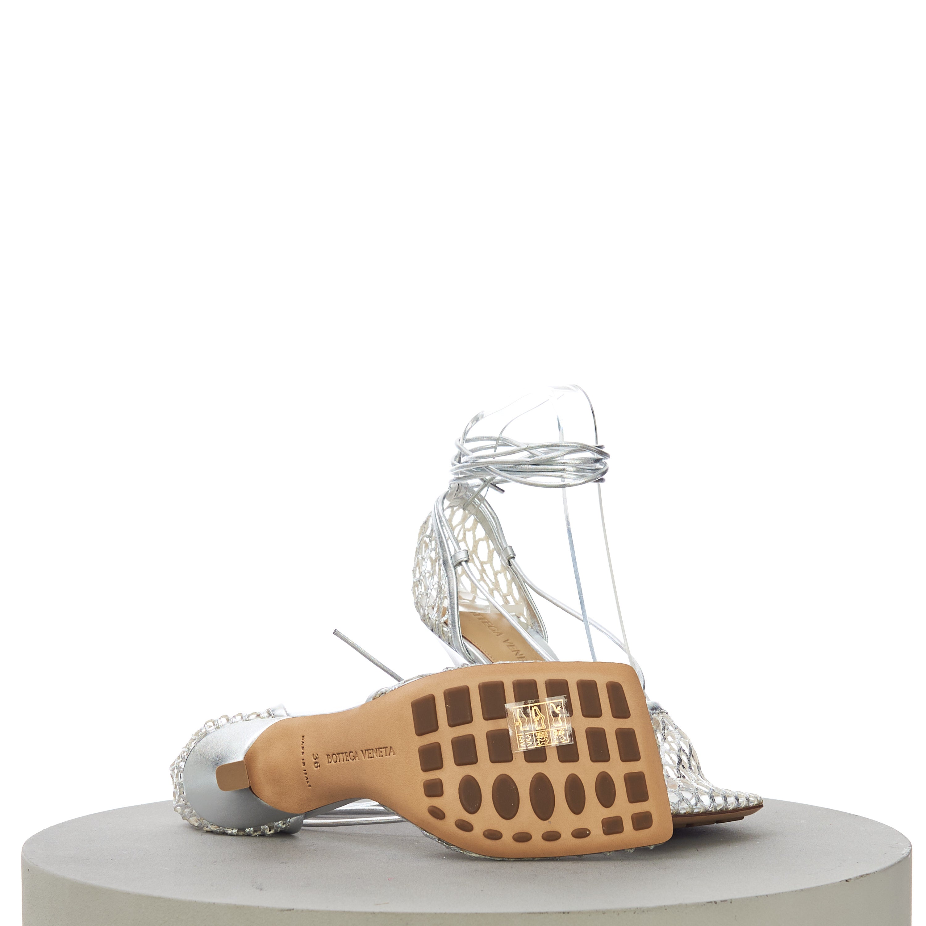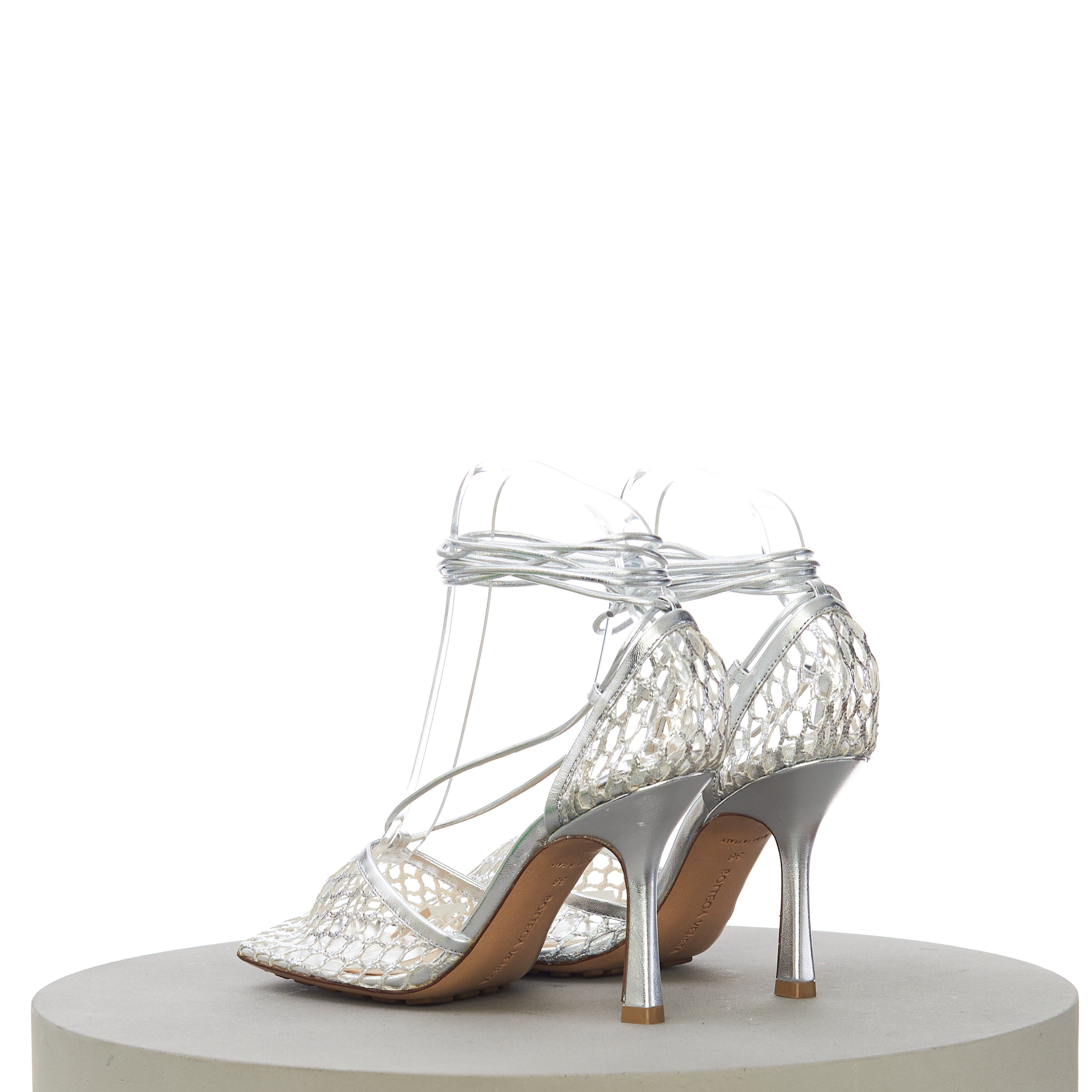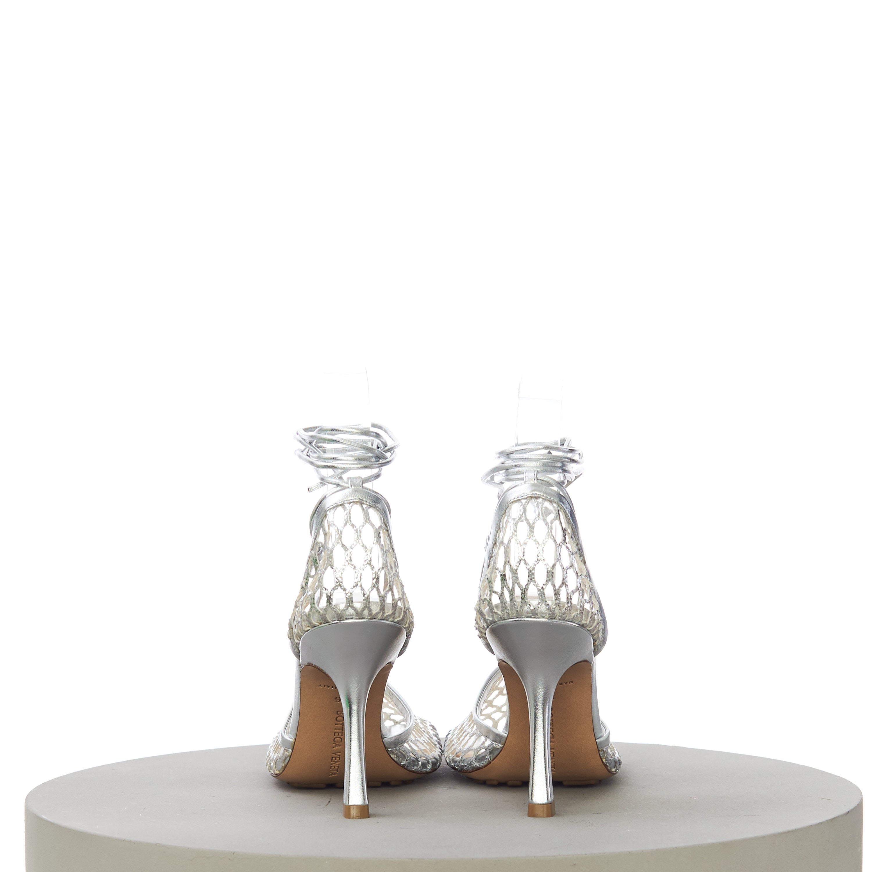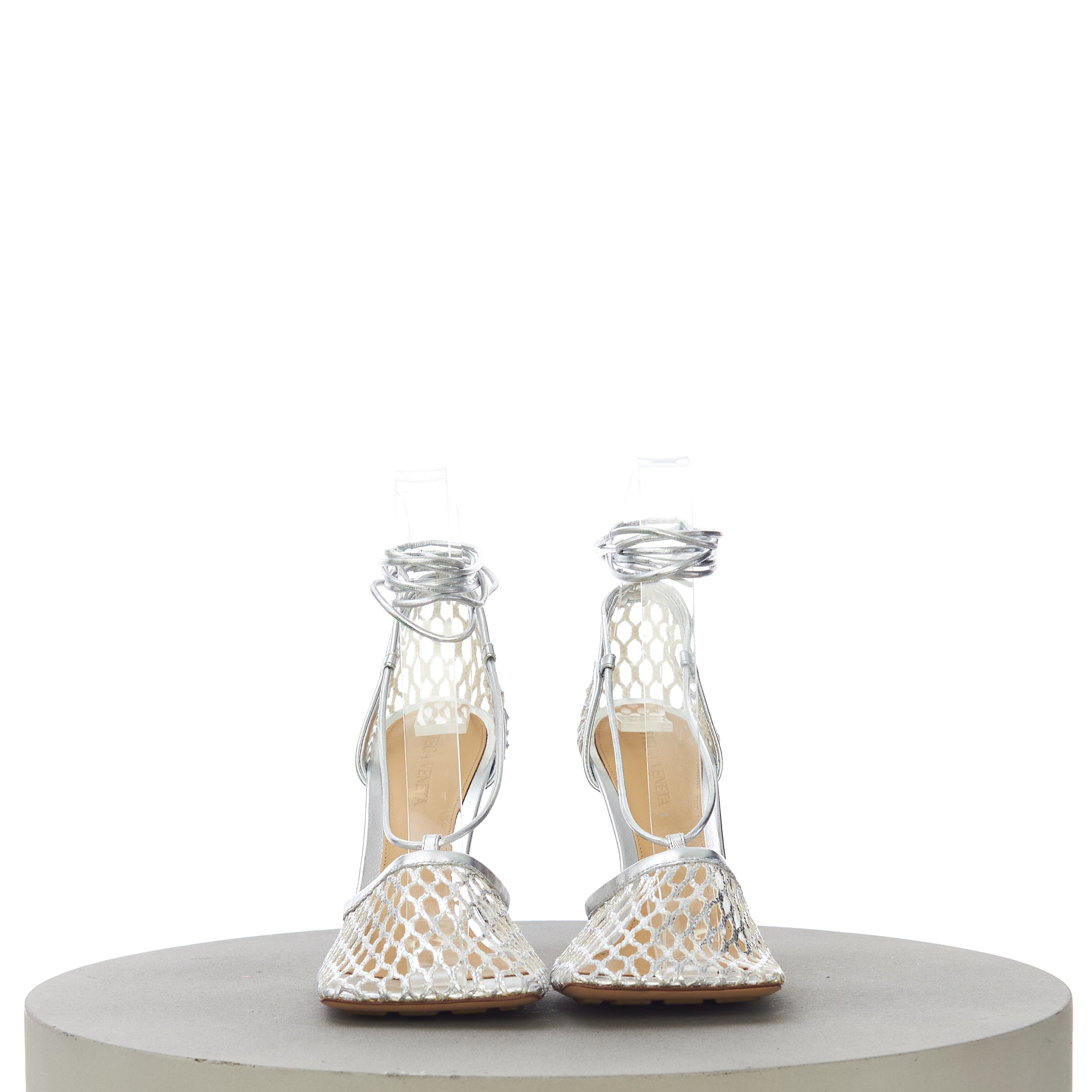 Women's Stretch Sandals In Silver Metallized Mesh & Leather