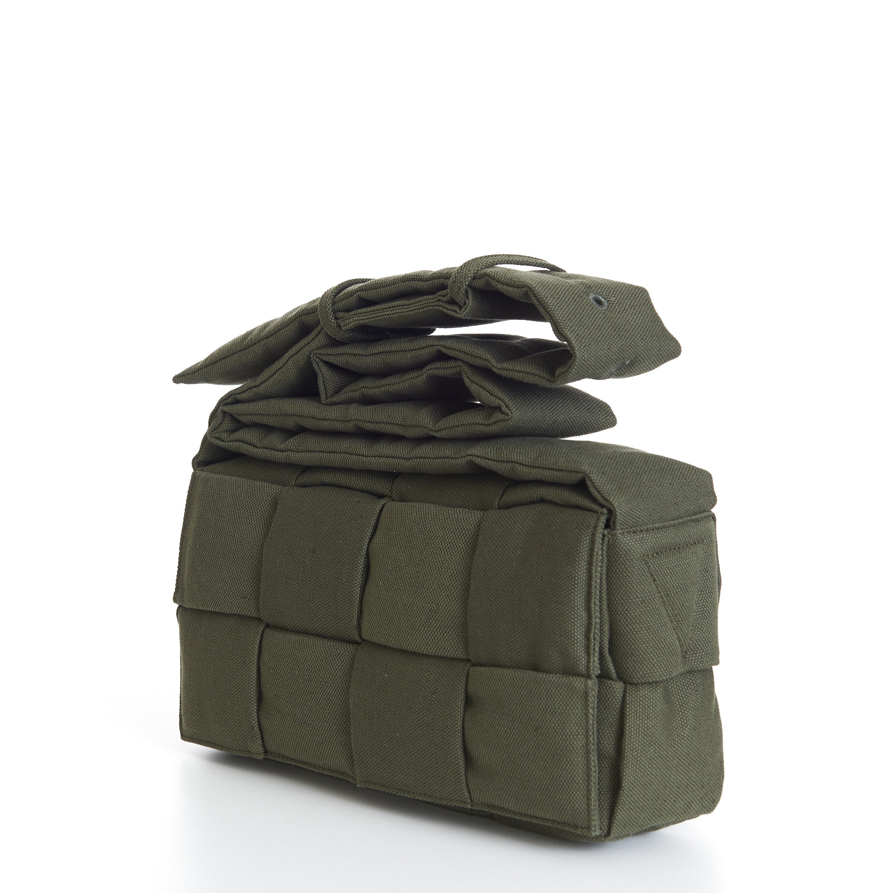 Tech Casssette Crossbody Bag In Crocodile Green Padded Intreccio Canvas