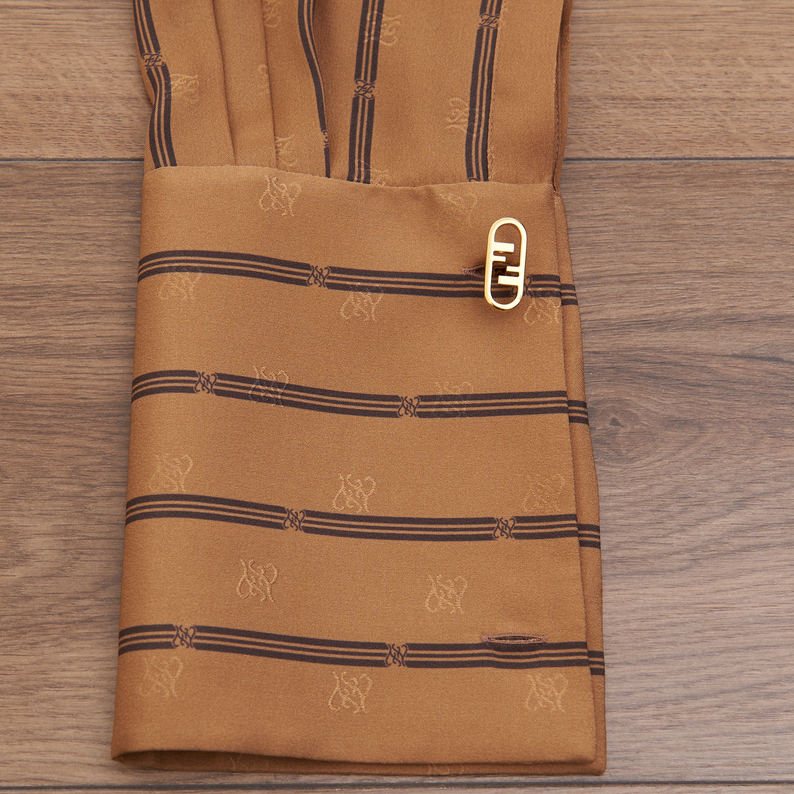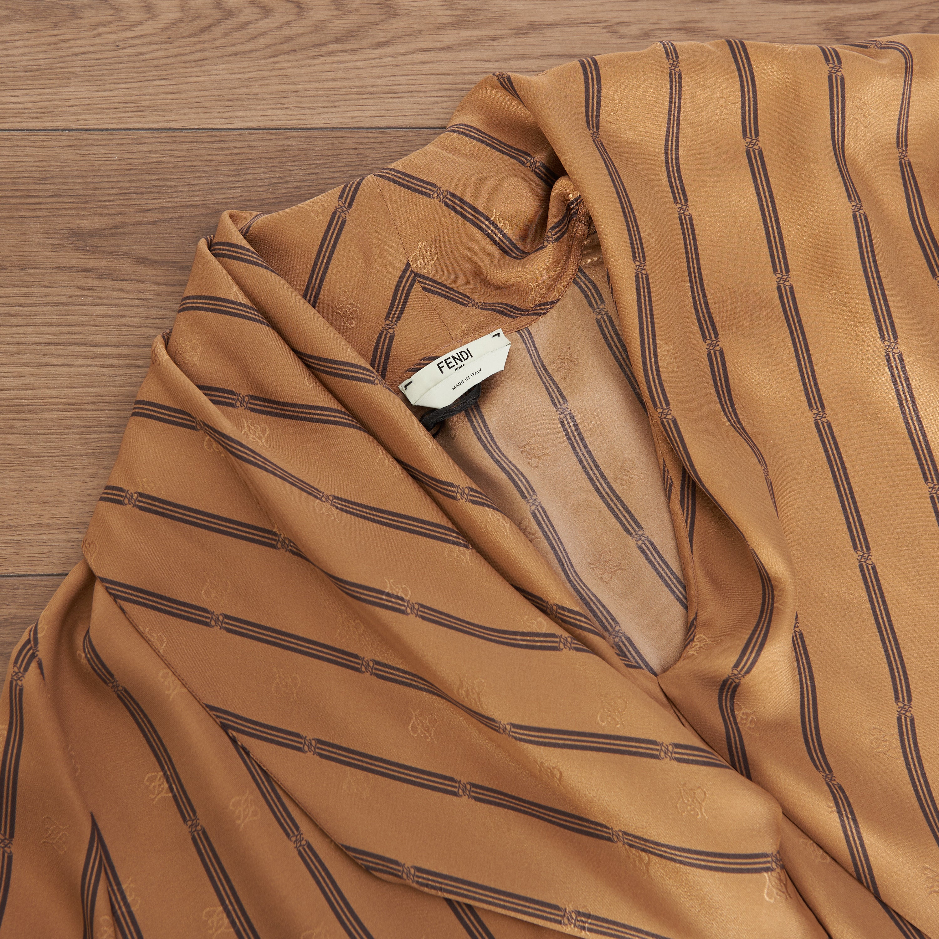 Short Dress With V Neck & Long Foulard In Brown Satin Silk Crepe