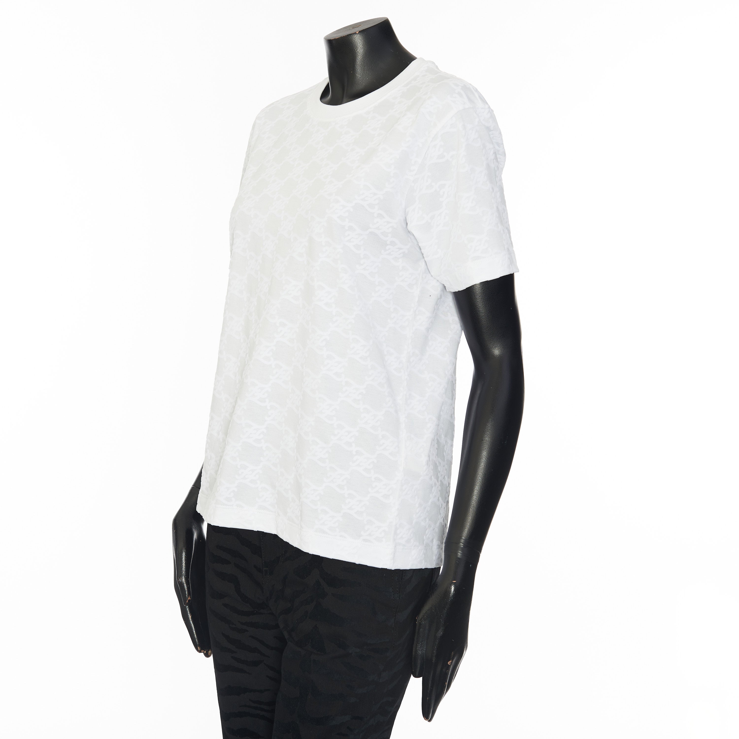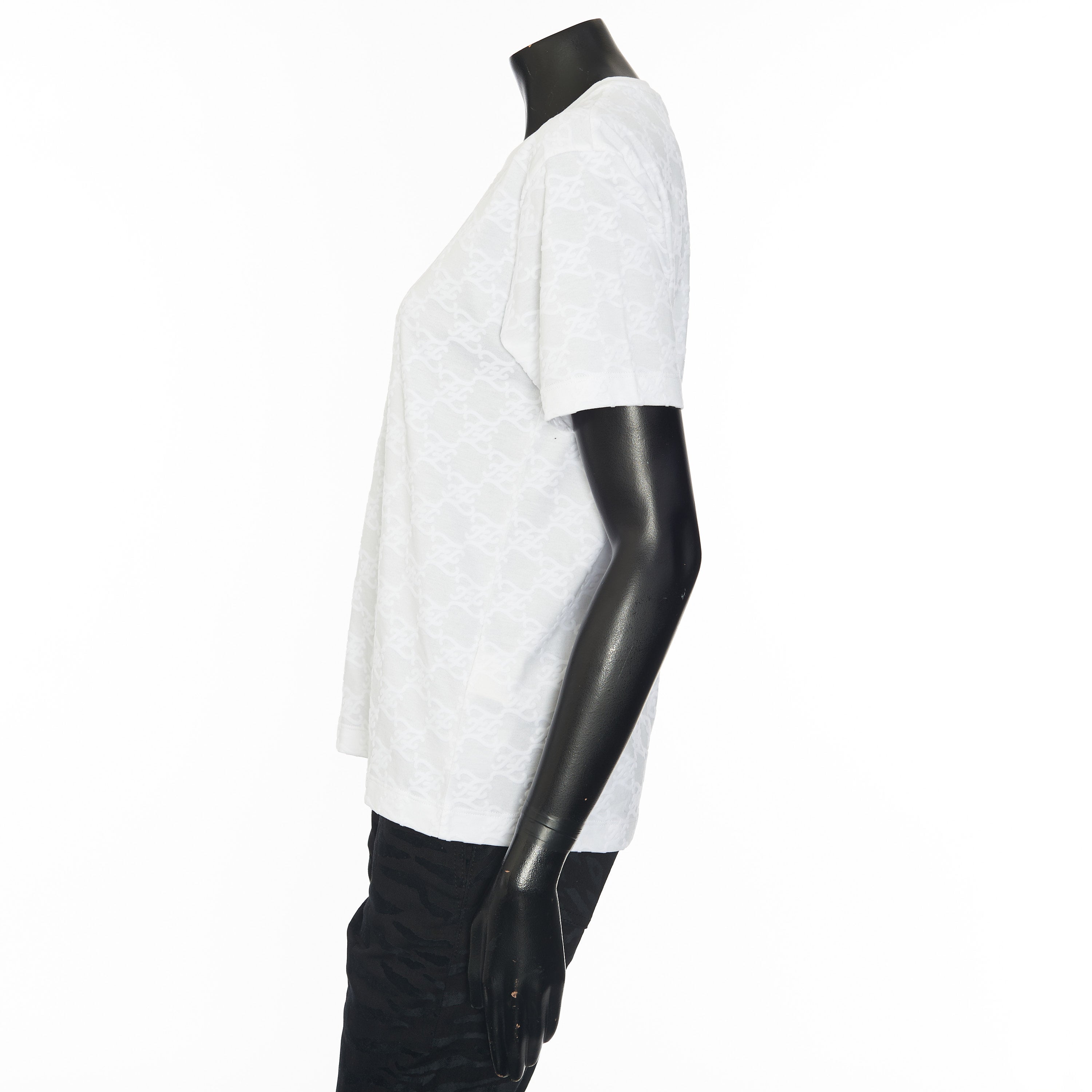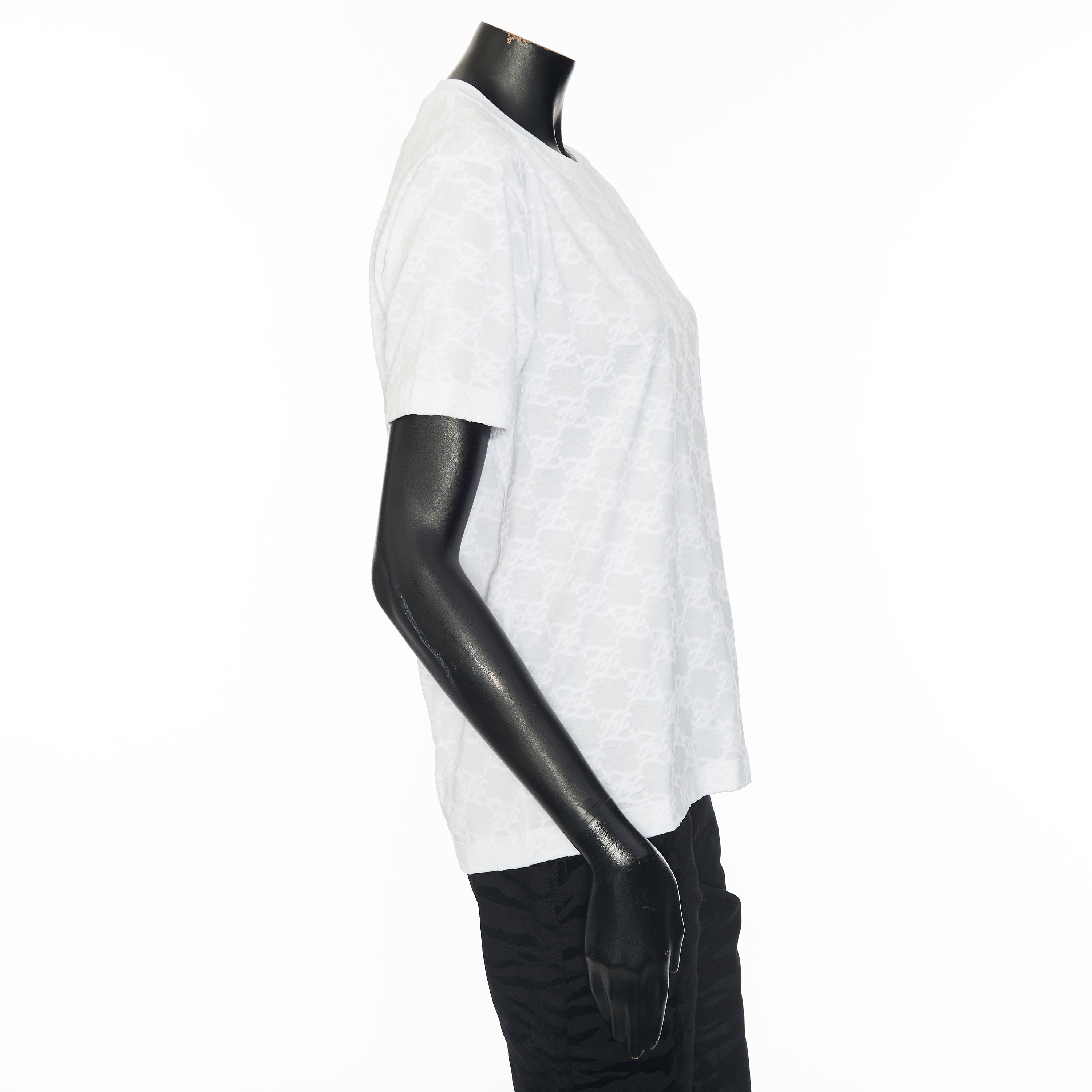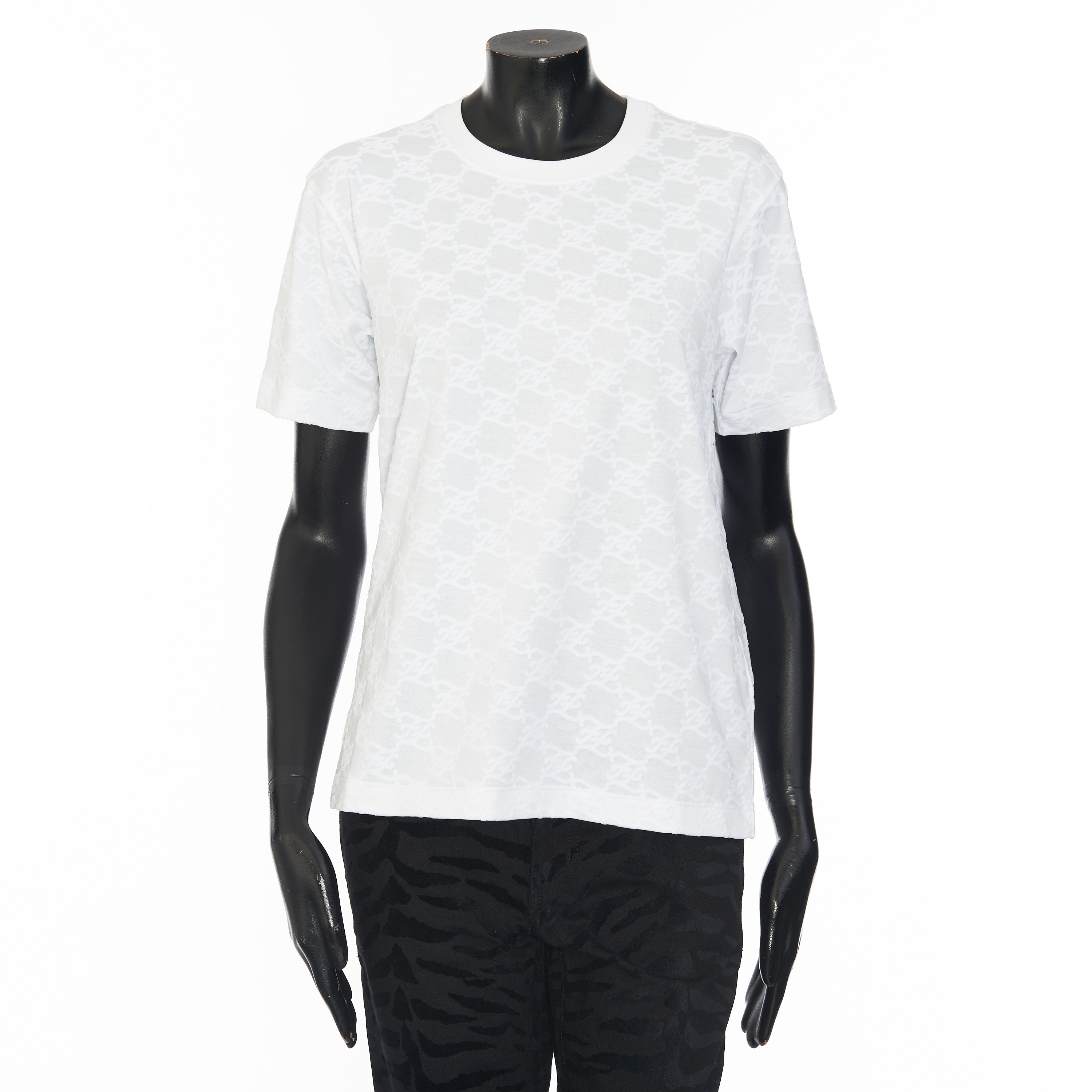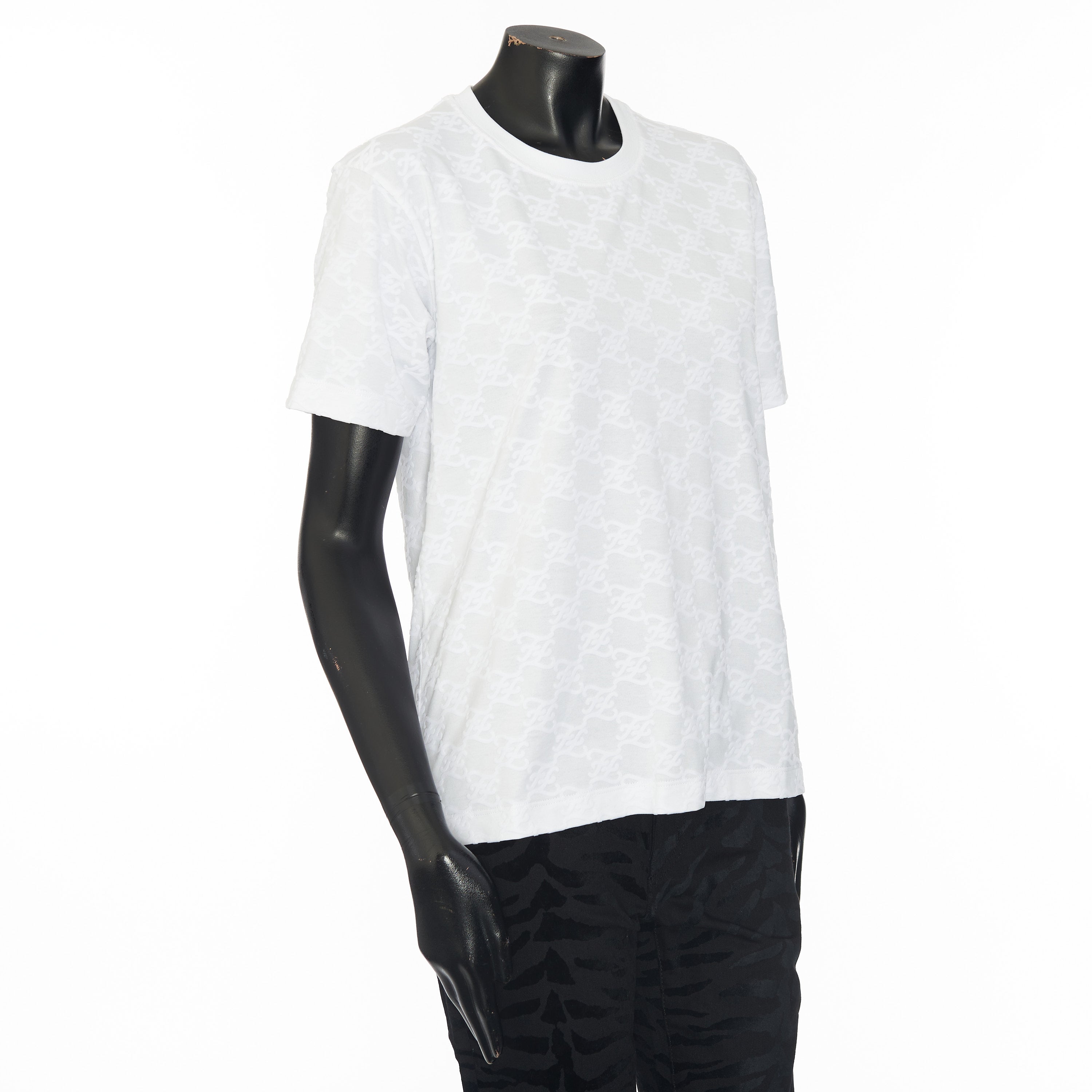FF Karligraphy jacquard t-shirtFF Karligraphy motifRound neckShort sleevesMade in ItalyFabric: 100% CottonMade in: ItalyModel no.: FS7254-AHLU-F0ZNM