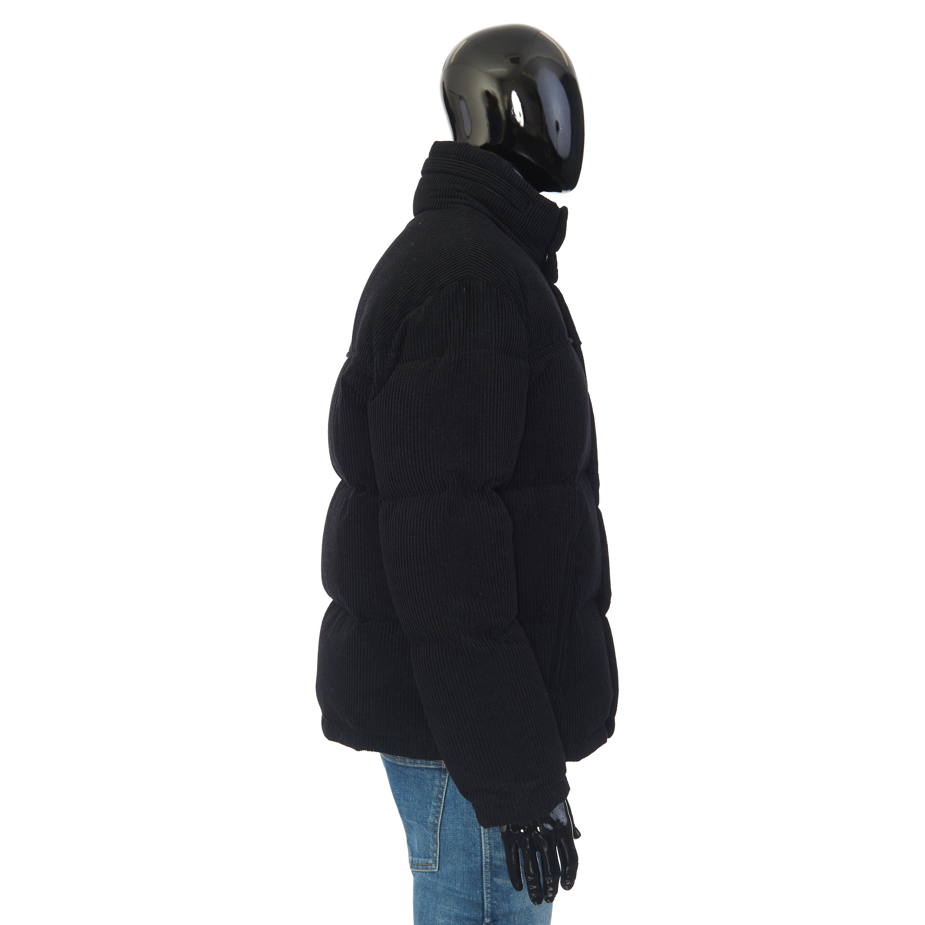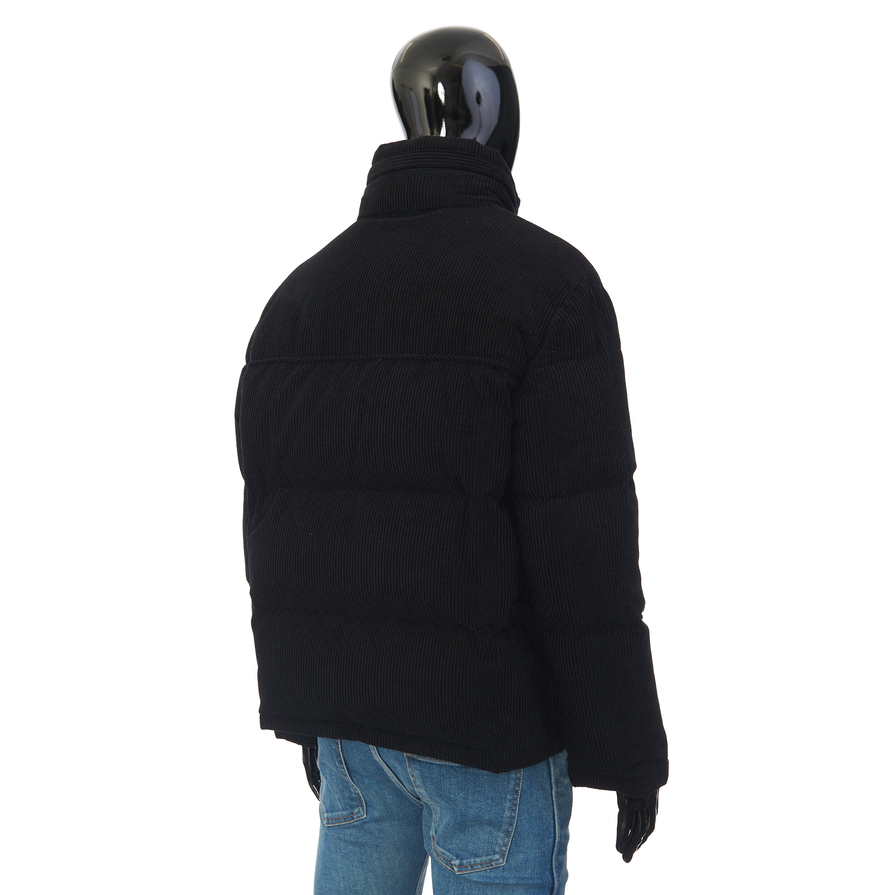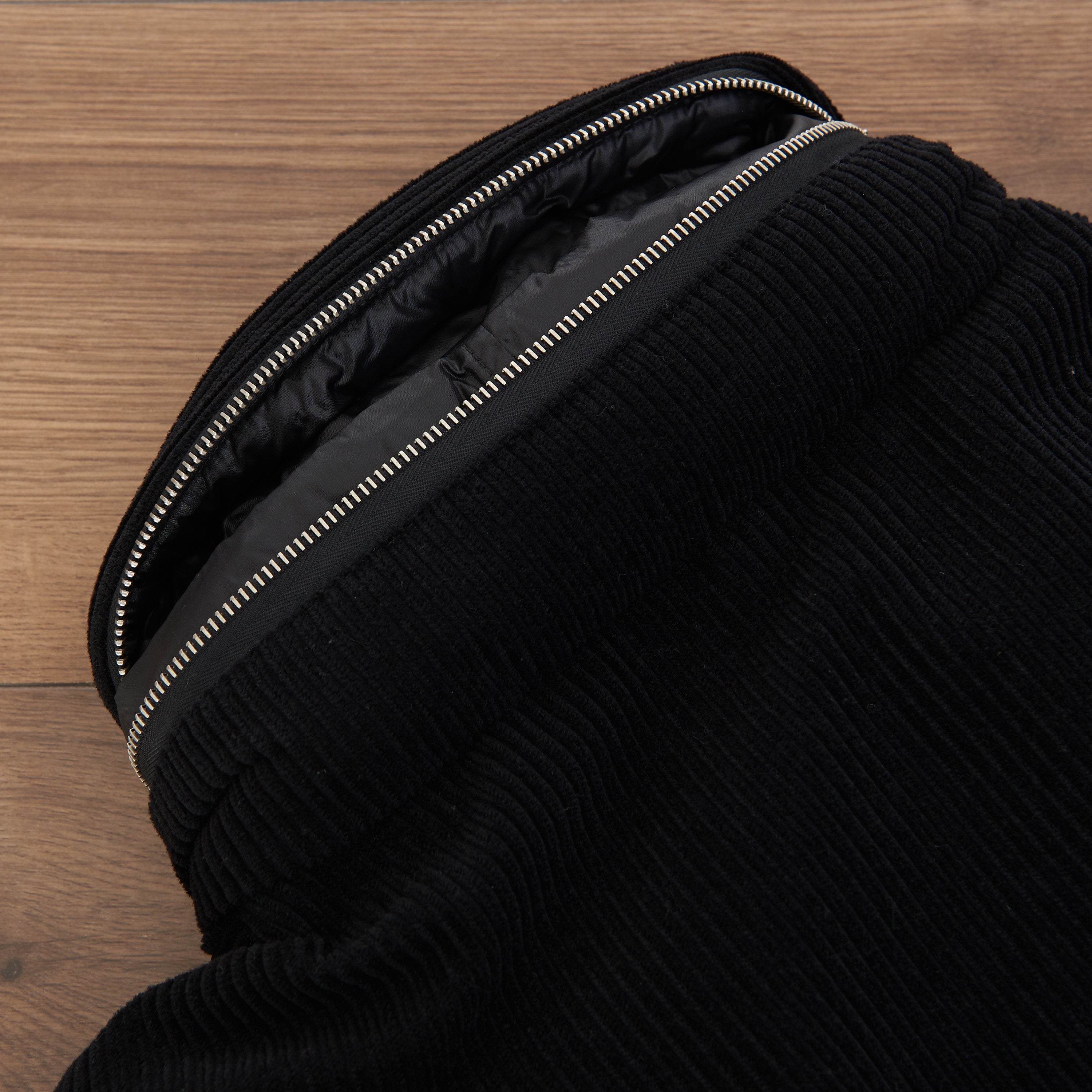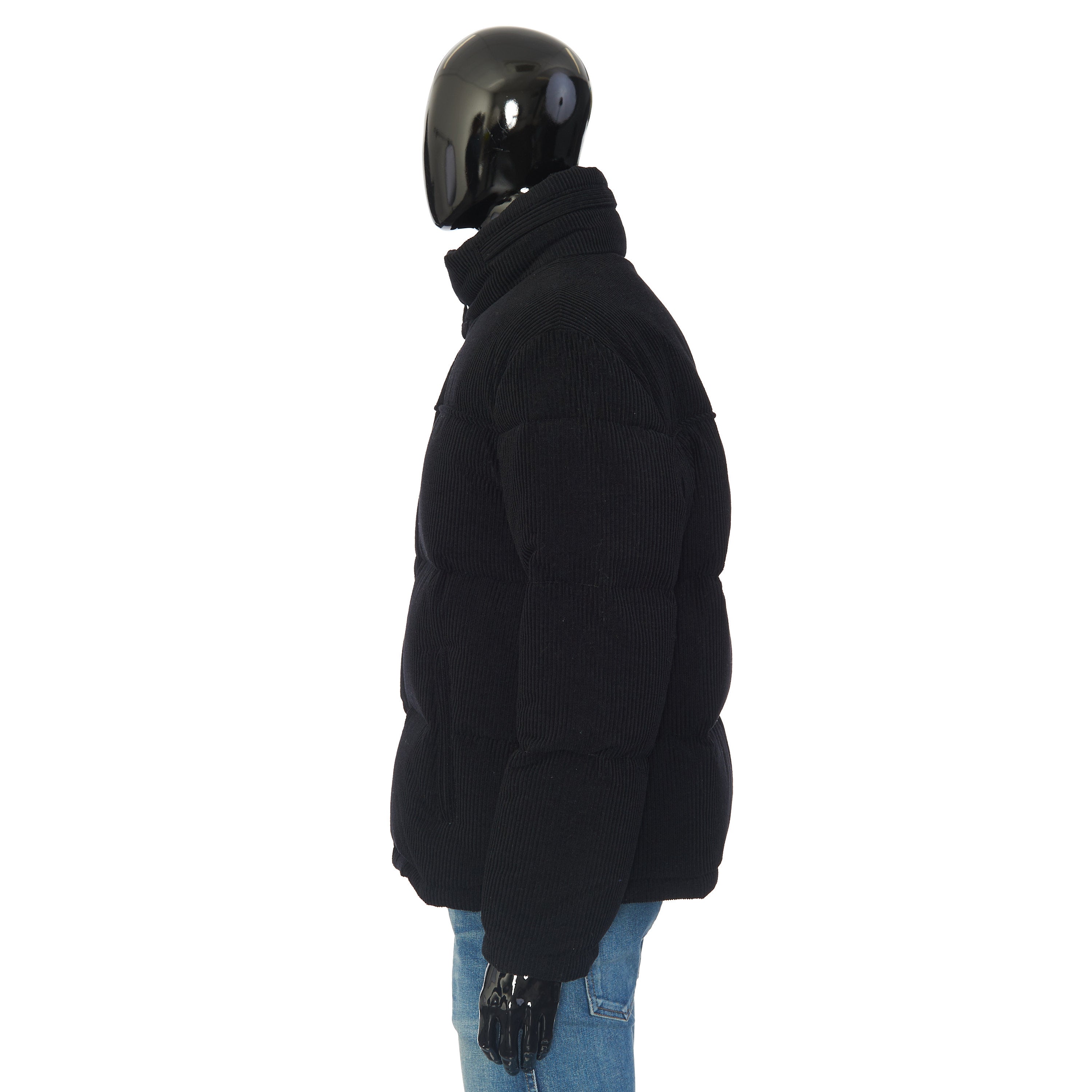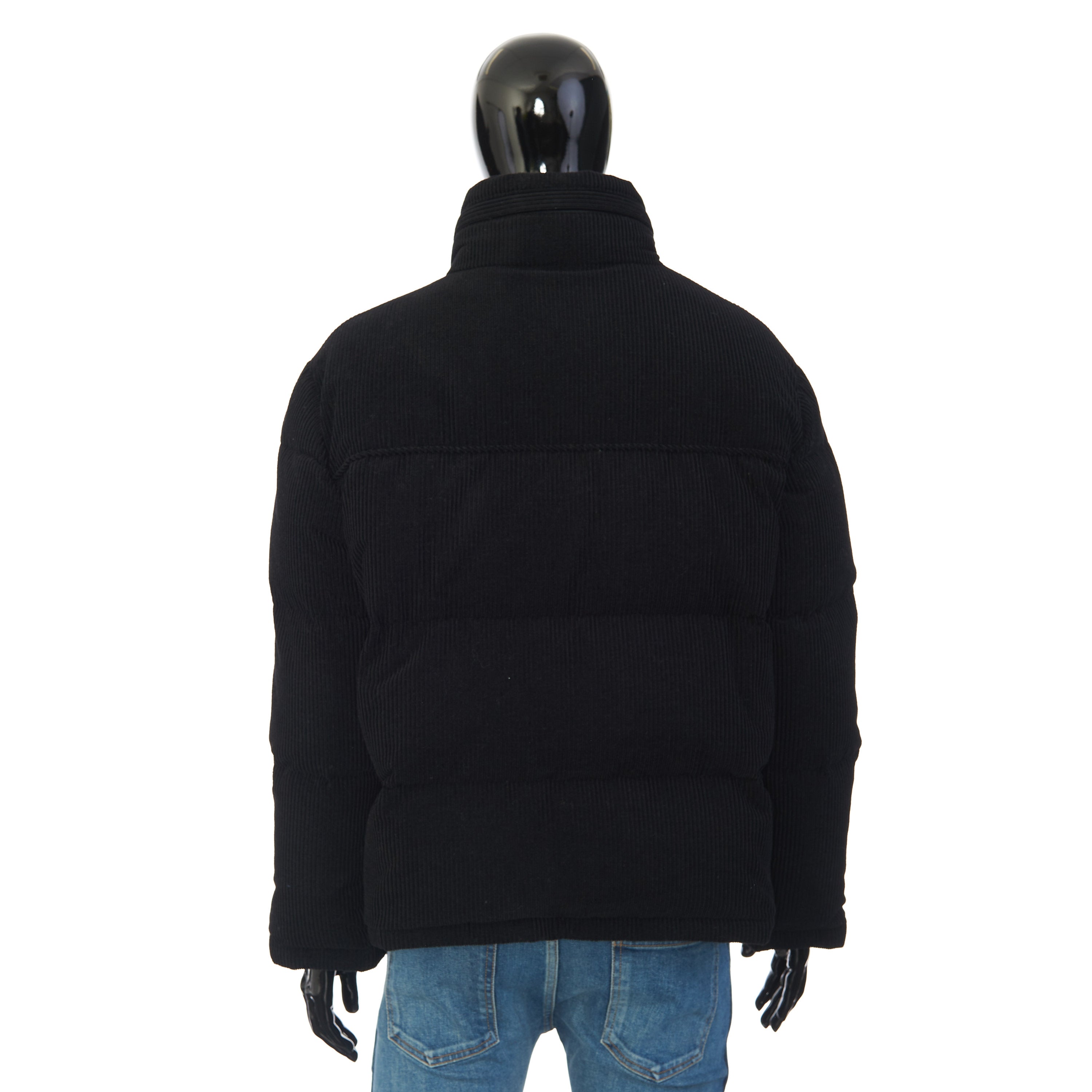 Oversized corduroy down jacket with a high neck and zip pockets.