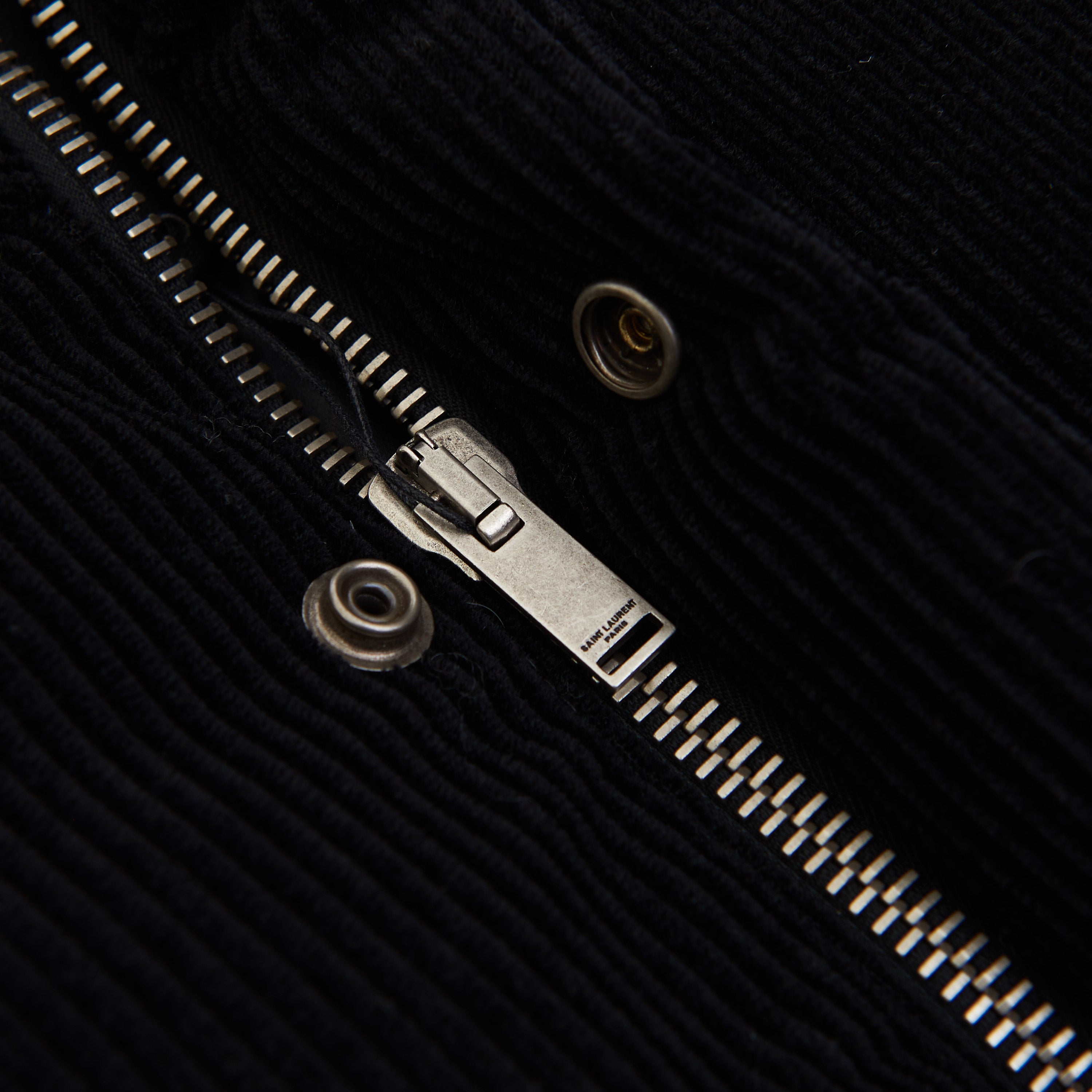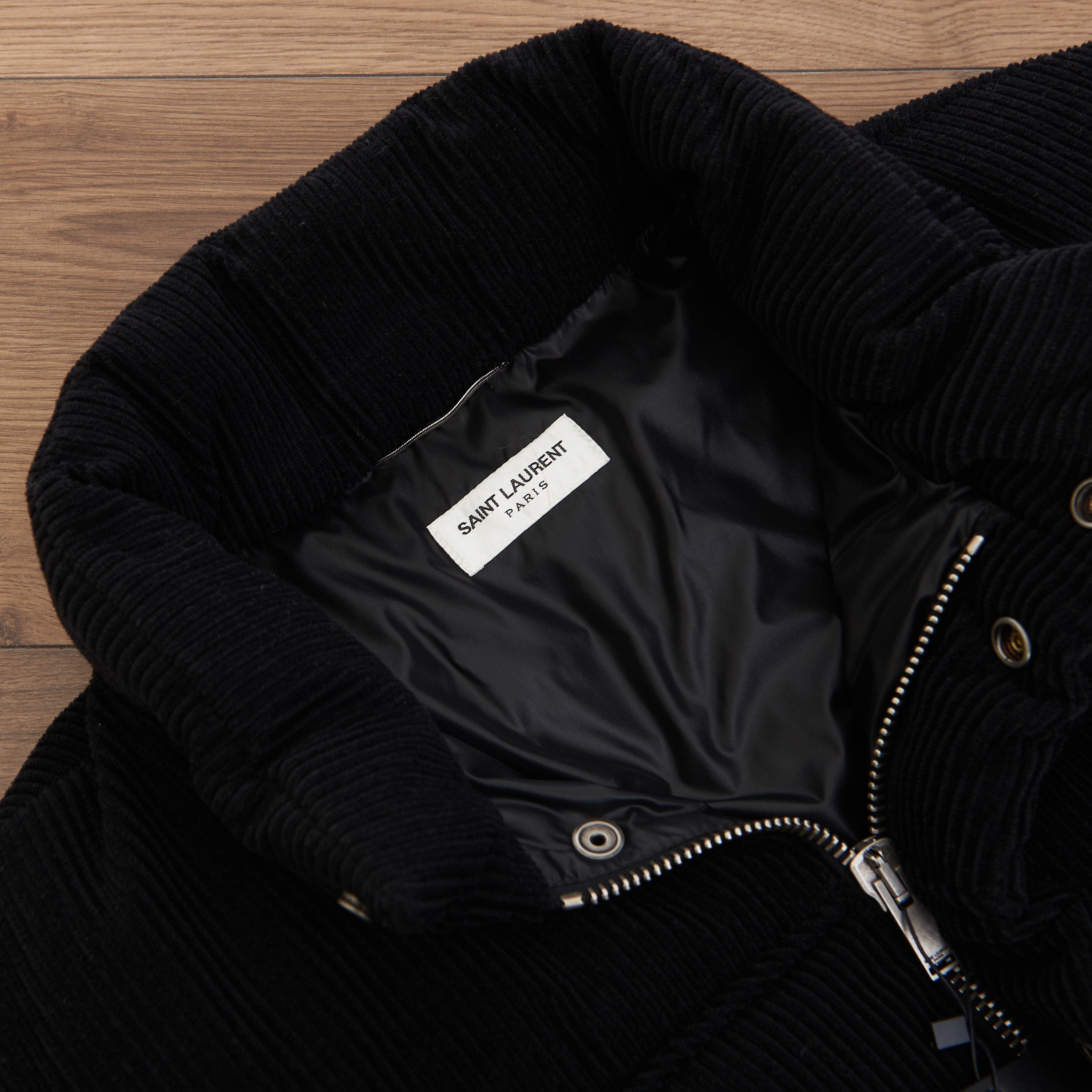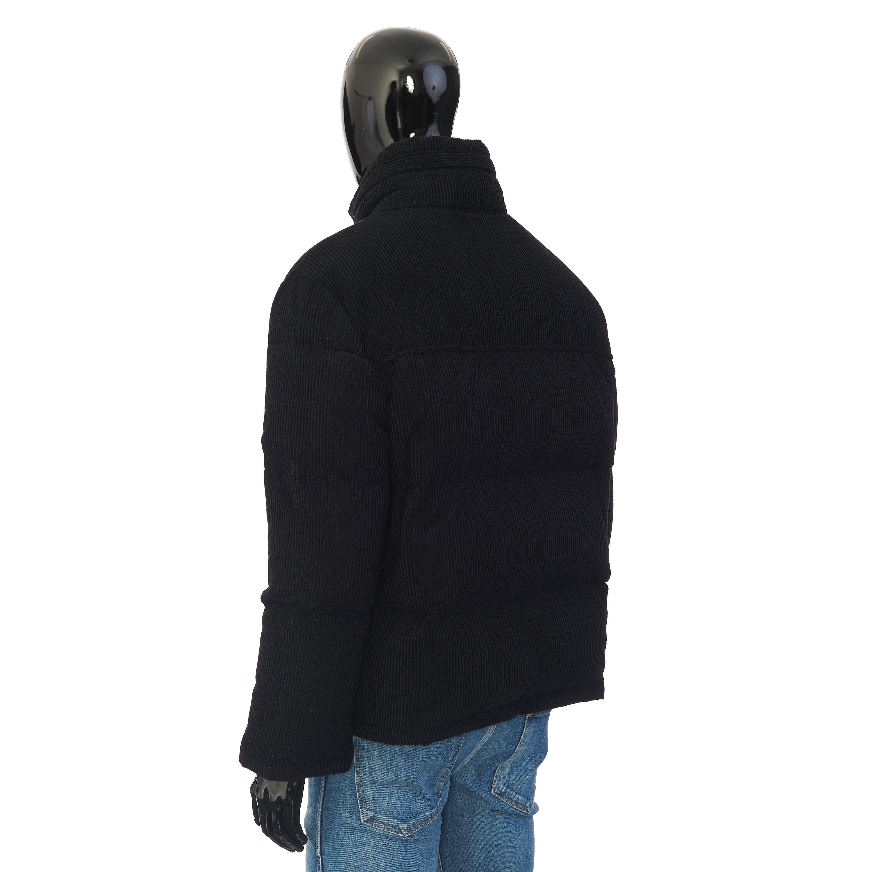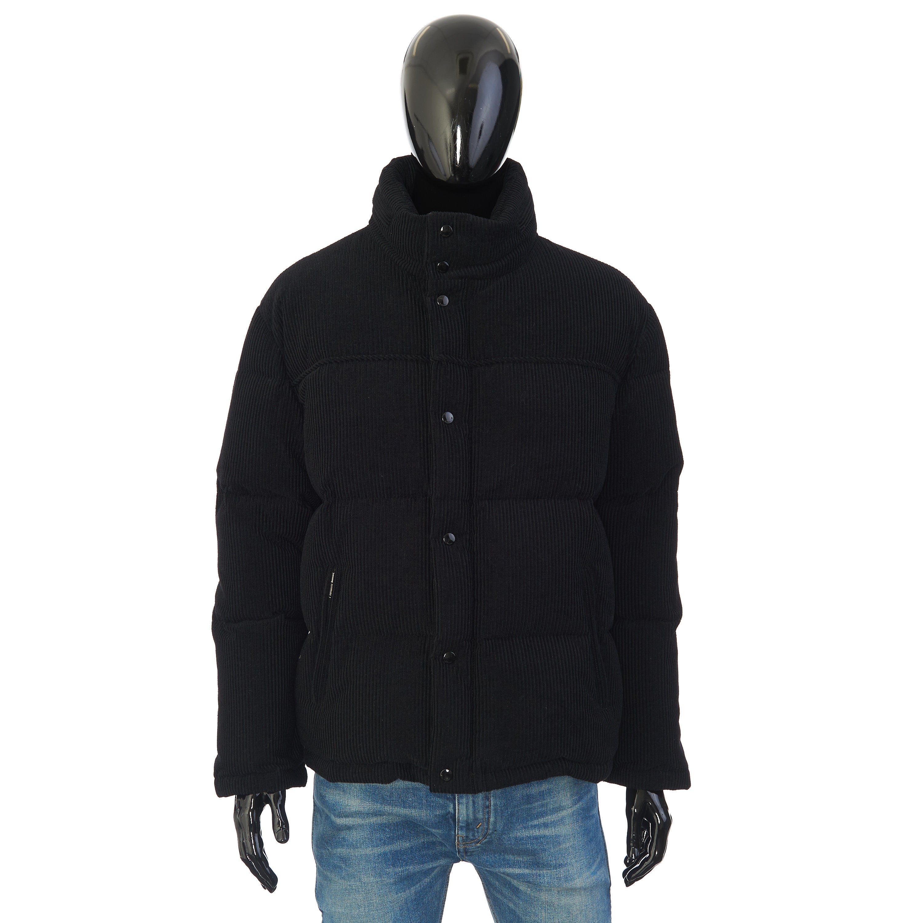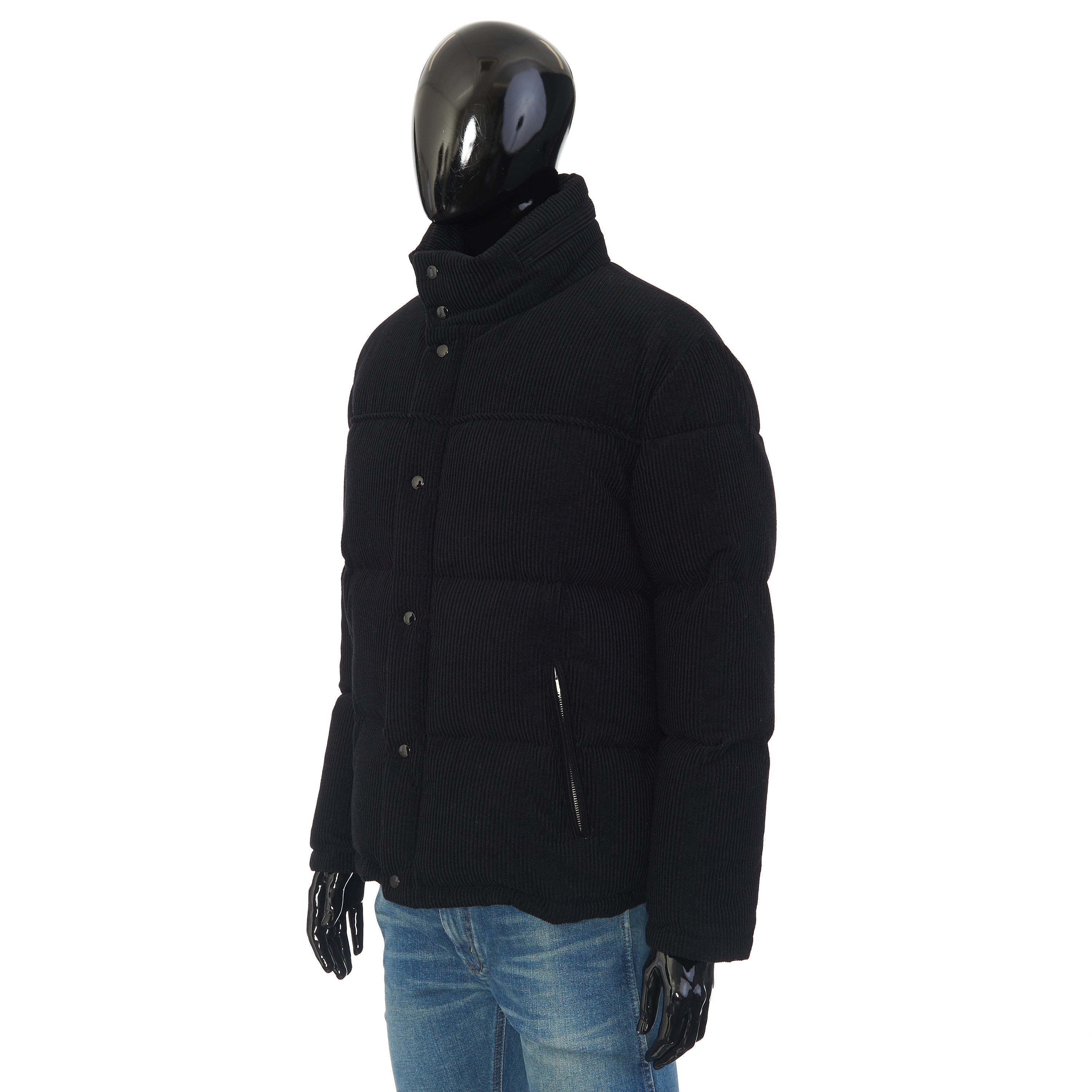 Oversized corduroy down jacket with a high neck and zip pockets.